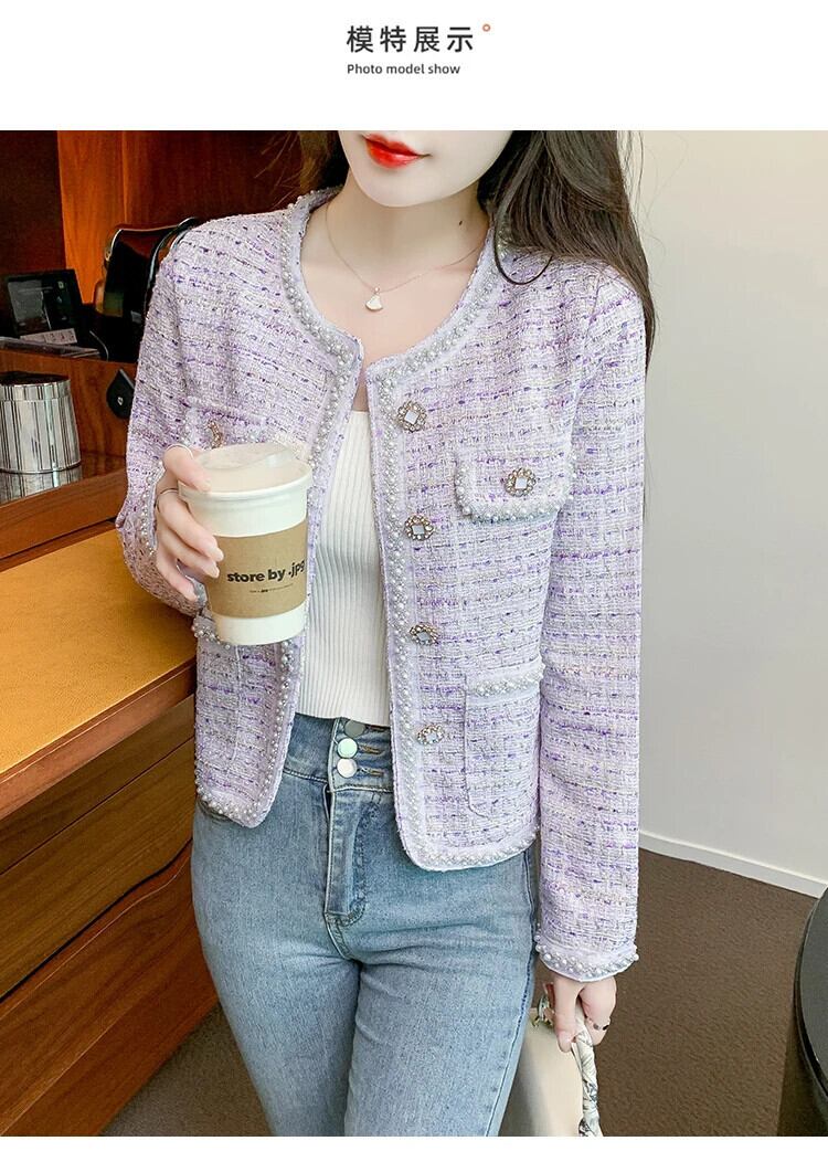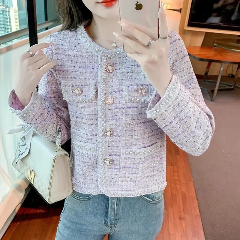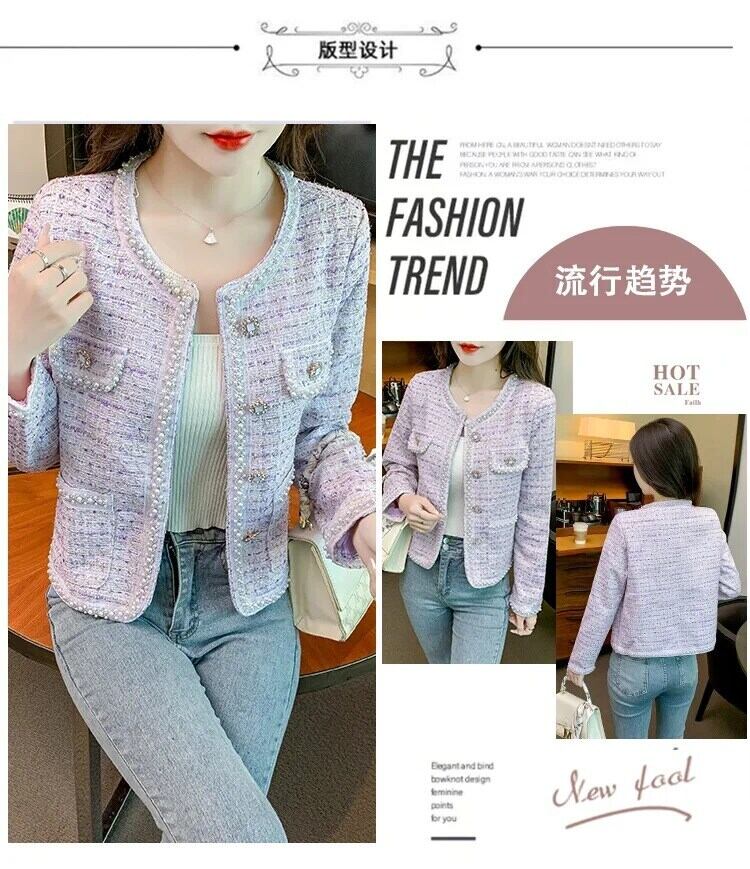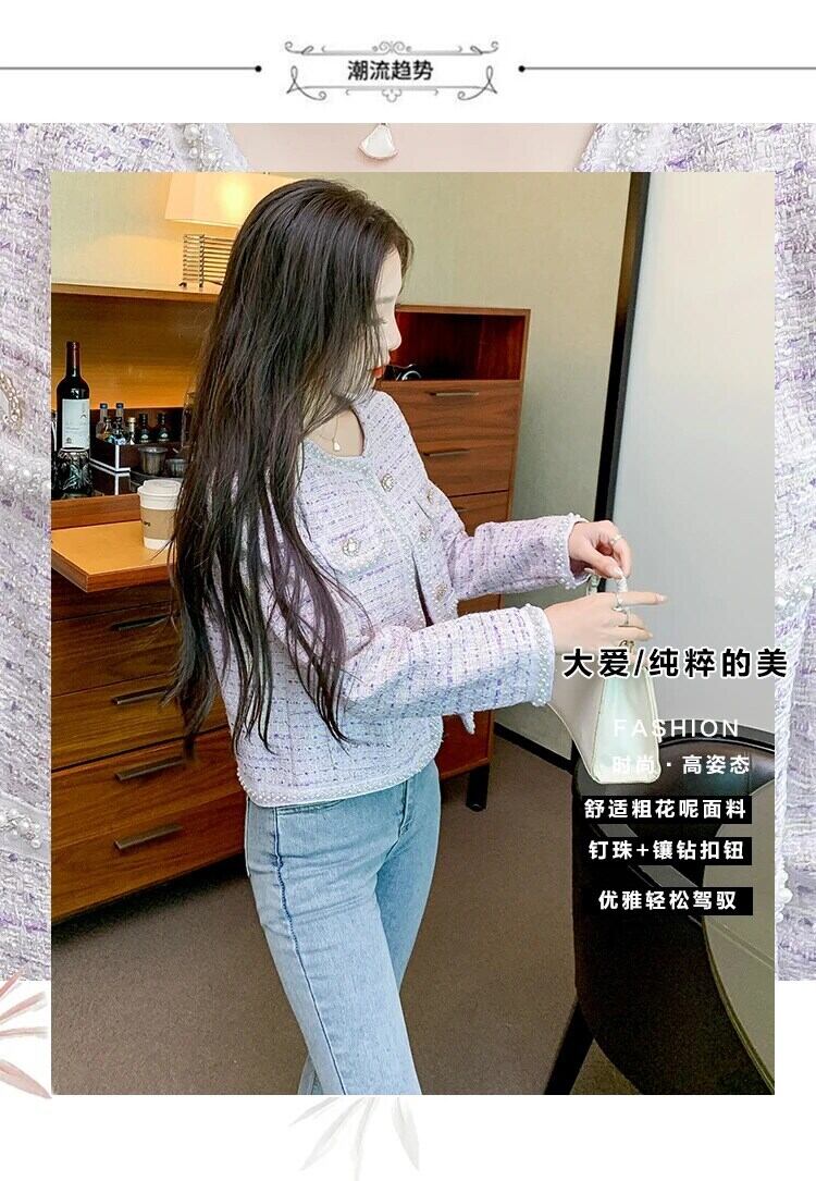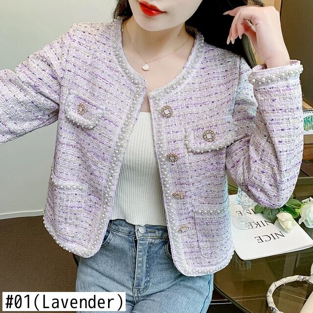 秋 3D ビーズ香りショートコートツイードジャケットアウター Chaquetas オータム 秋物