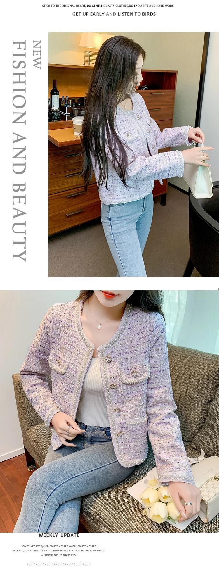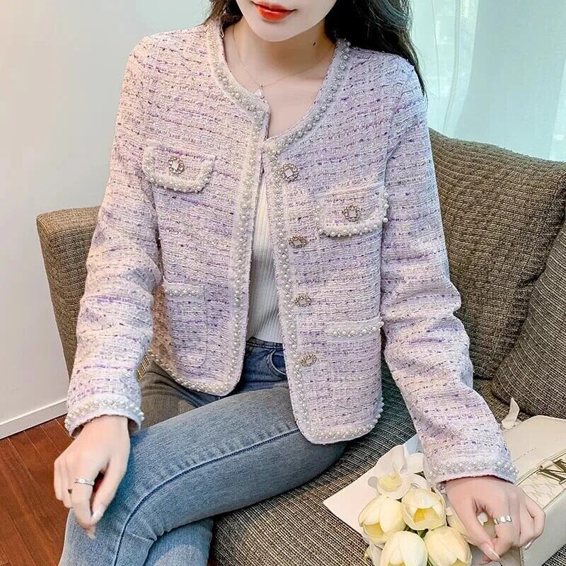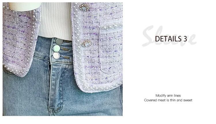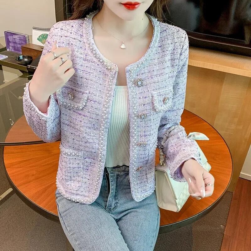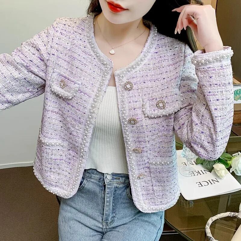 秋 3D ビーズ香りショートコートツイードジャケットアウター Chaquetas オータム 秋物