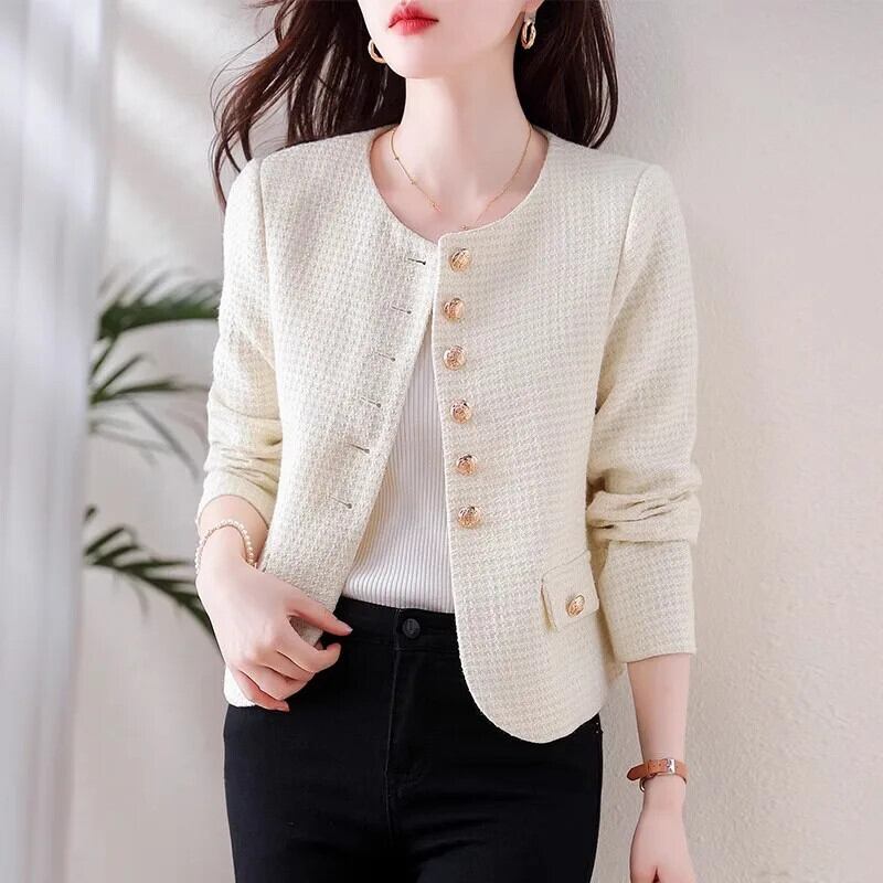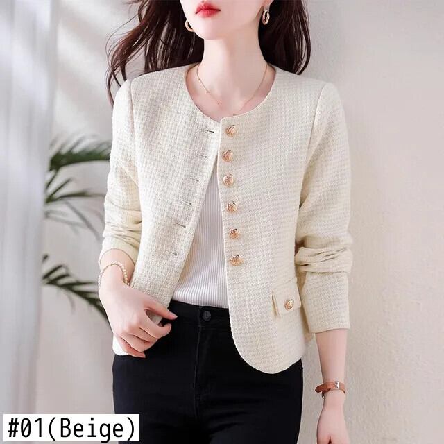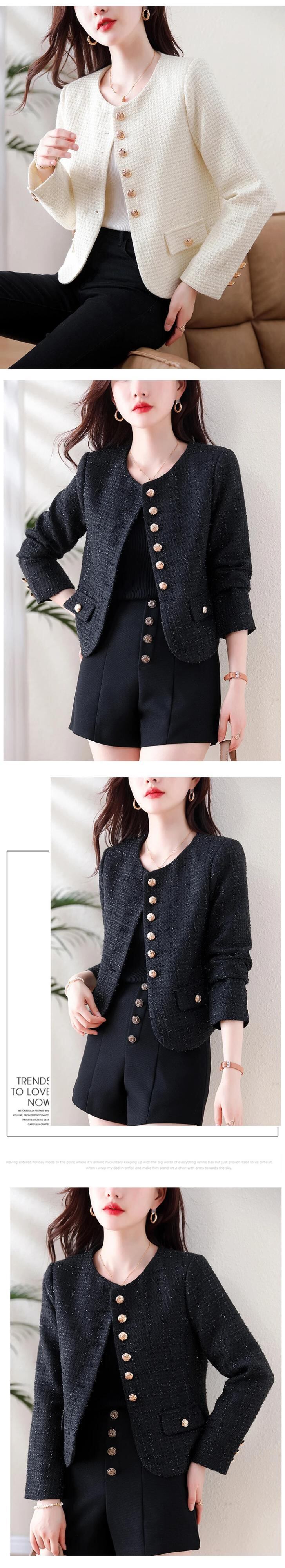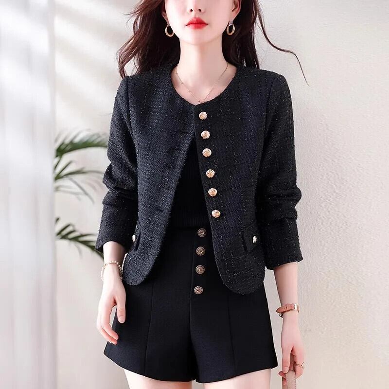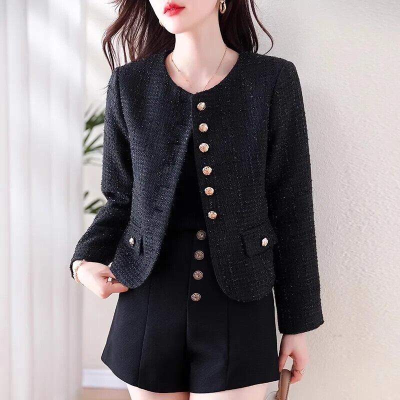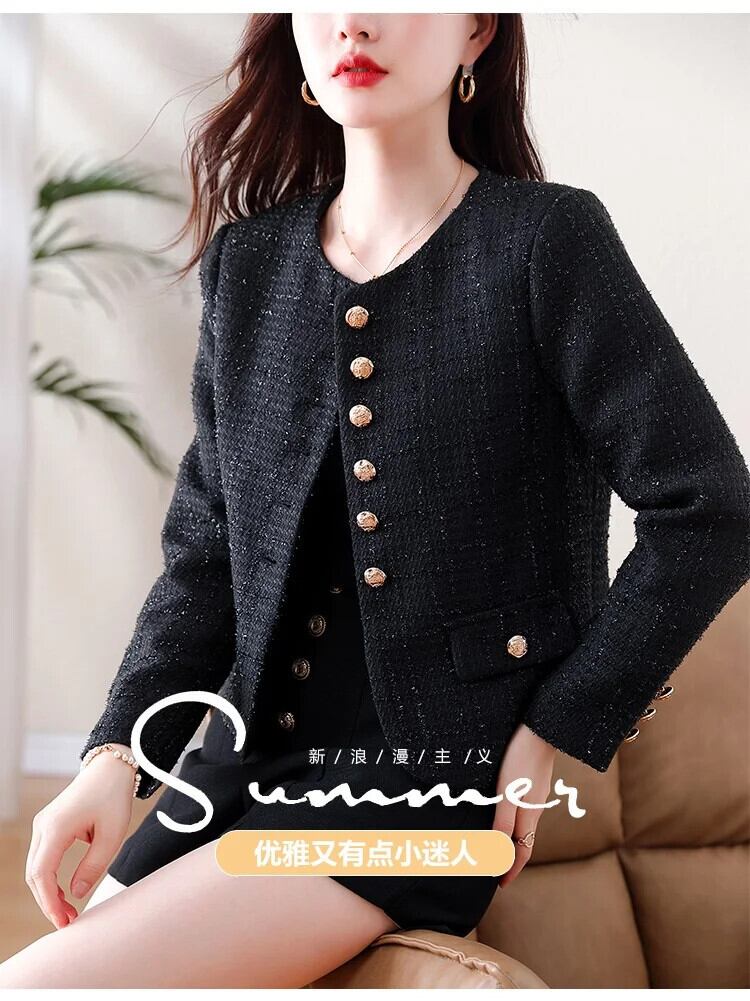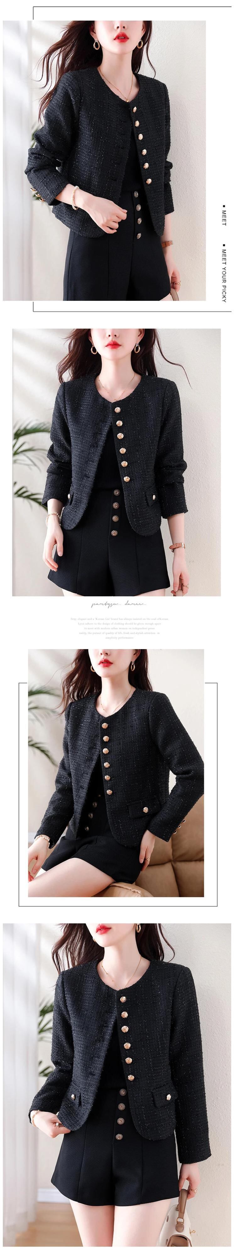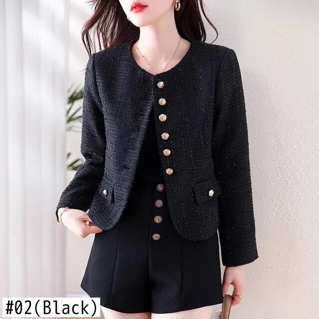Clic 秋冬ツイード香りジャケット黒コートを始める ブラック オータム 秋物 ウィンター 冬物