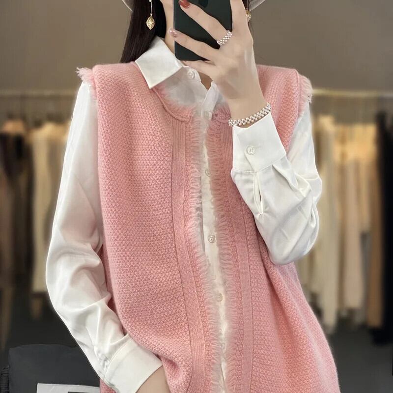 カーディガン レディース ルーズ テル ファー エッジ バックル フリー スイートハート スイートハート ベスト 大人ガーリー スウィート キュート カジュアル