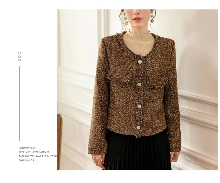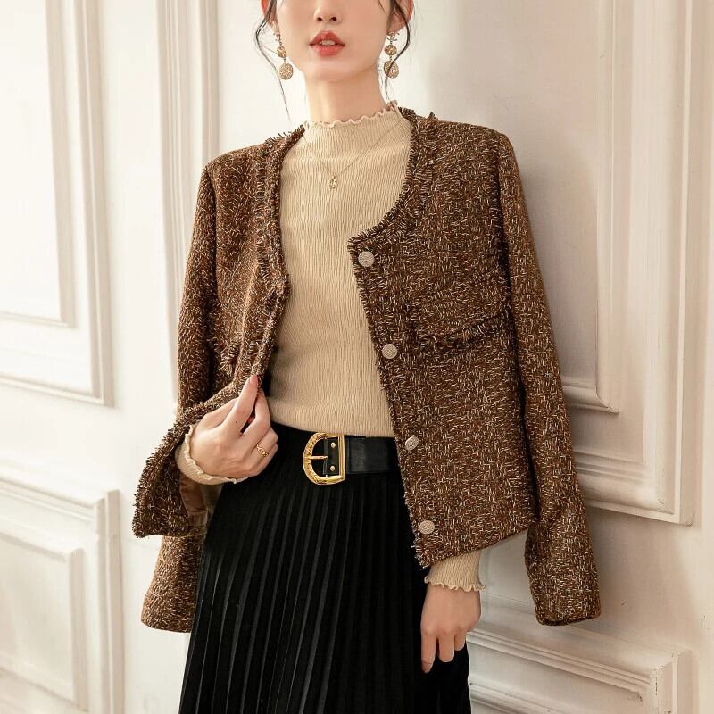 粗い香りレジャーショートウールコート生き抜く秋冬製品気質ジャケット オータム 秋物 ウィンター 冬物