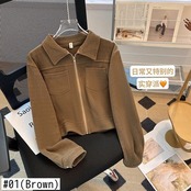 レディース秋スタイルフリップカラージッパーショートコート生き抜くジャケットコーヒー オータム 秋物