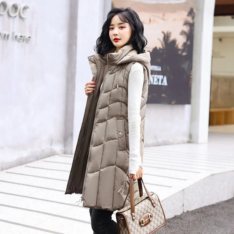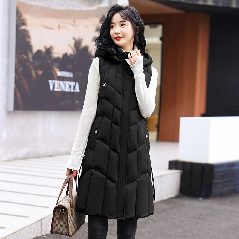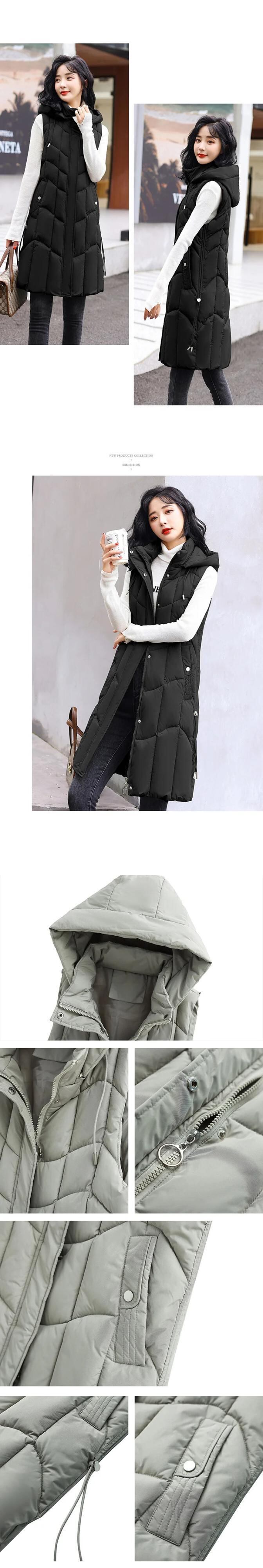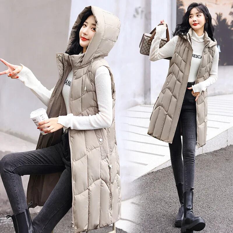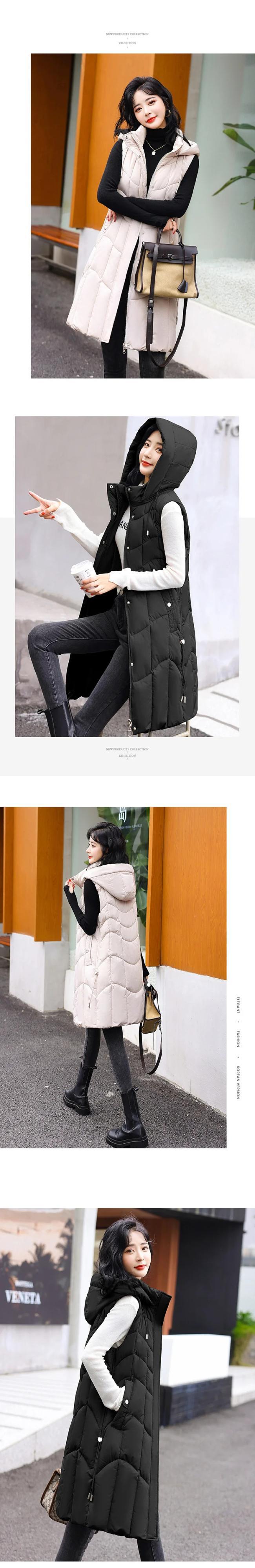 ロングベストフード付き秋冬ノースリーブ暖かいコットンダウンチョッキキルティングジャケット生き抜く オータム 秋物 ウィンター 冬物