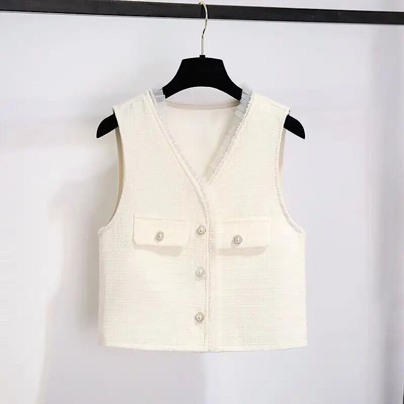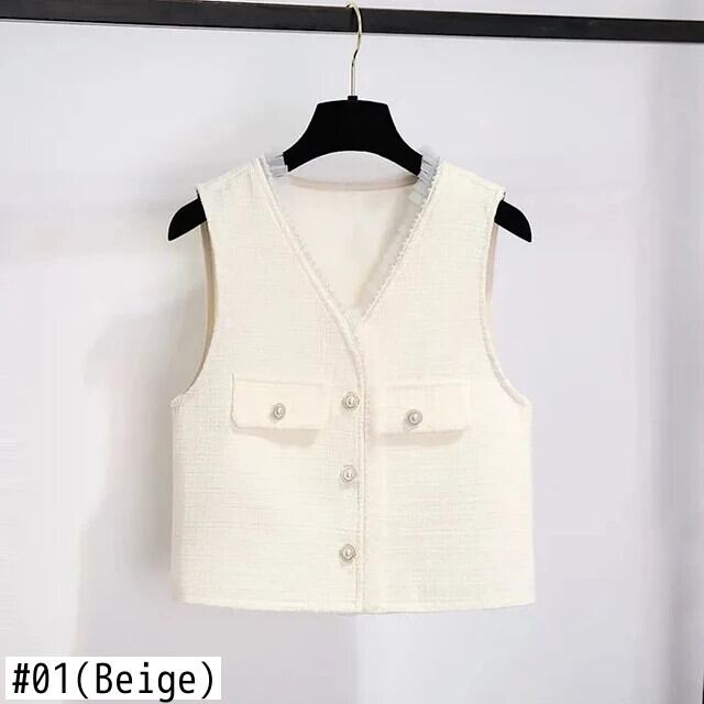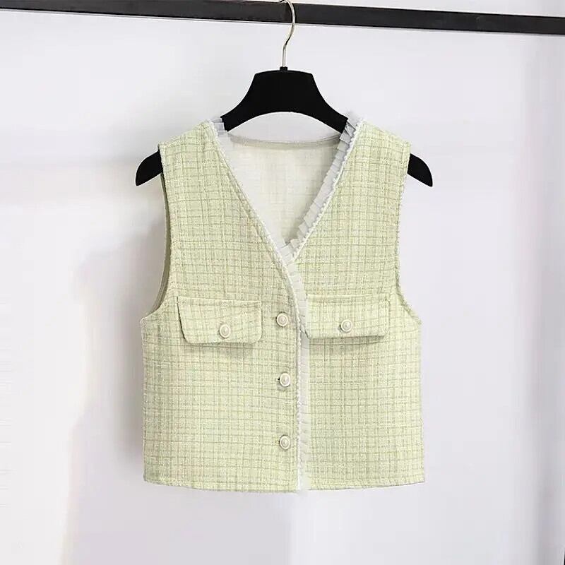 グリーンベージュショートフレグランスベストコート春秋万能チョッキ女子 スプリング 春物 オータム 秋物