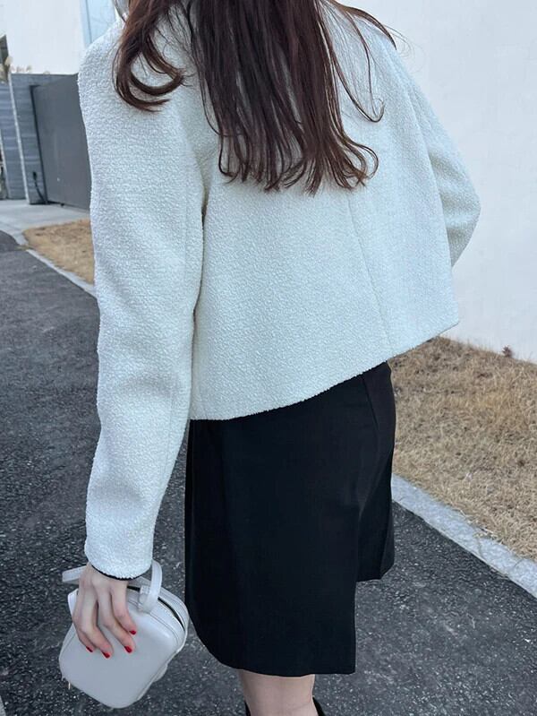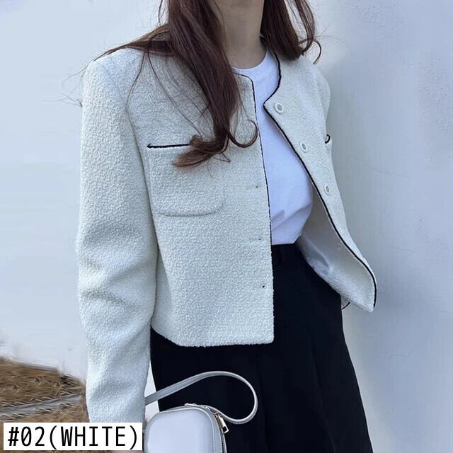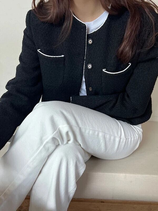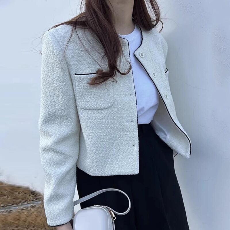 シックジャケット秋スタイルラウンドネック結合シングルブレストルーズ万能ショートコート オータム 秋物 Oネック