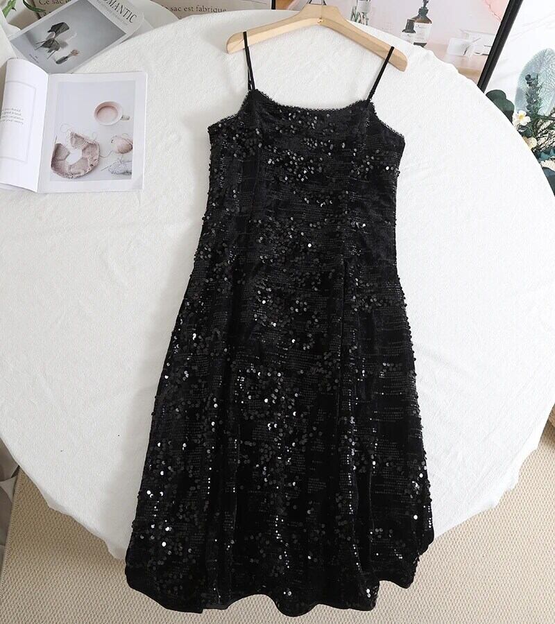 春夏気質セクシーベルベットスパンコールサスペンダードレス スプリング 春物 サマー 夏物