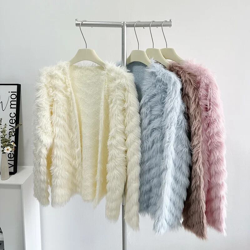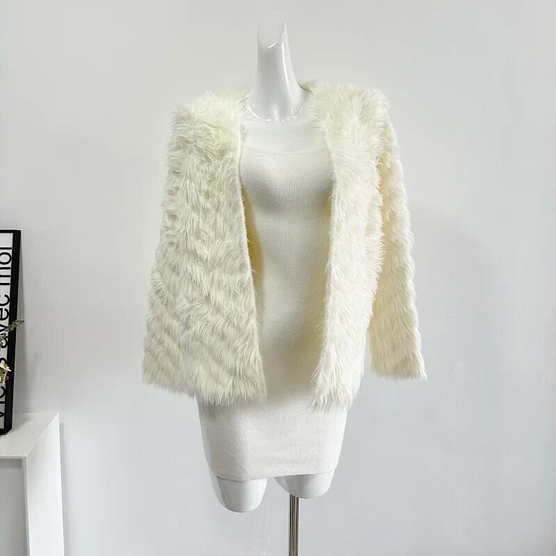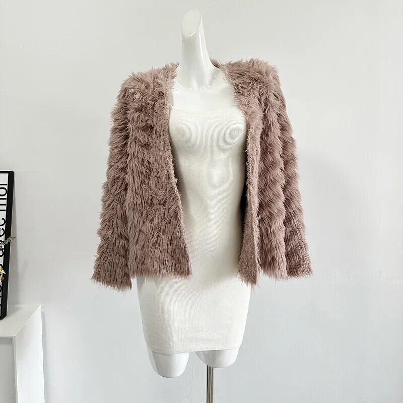 秋冬フェイクファーレディースコートイミテーションフォックスヘアーウィービングジャケット オータム 秋物 ウィンター 冬物