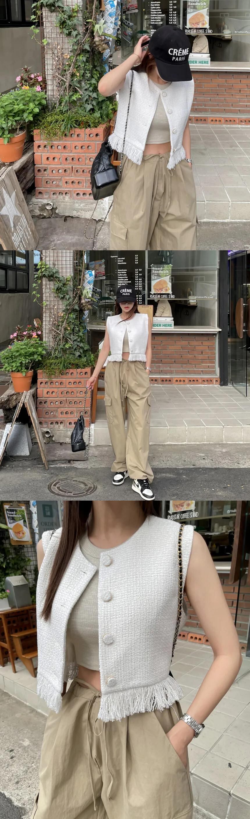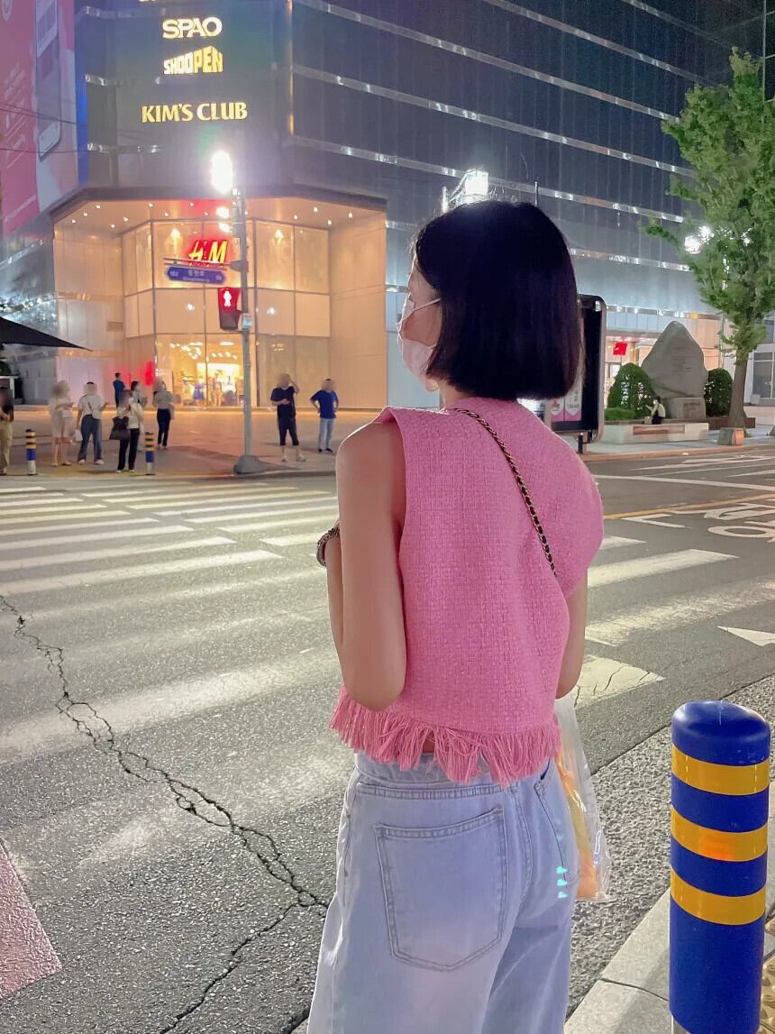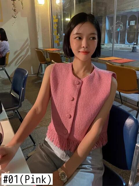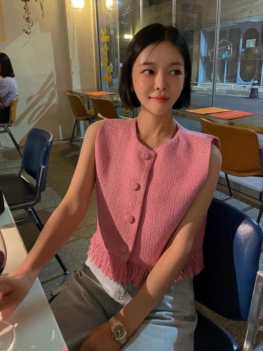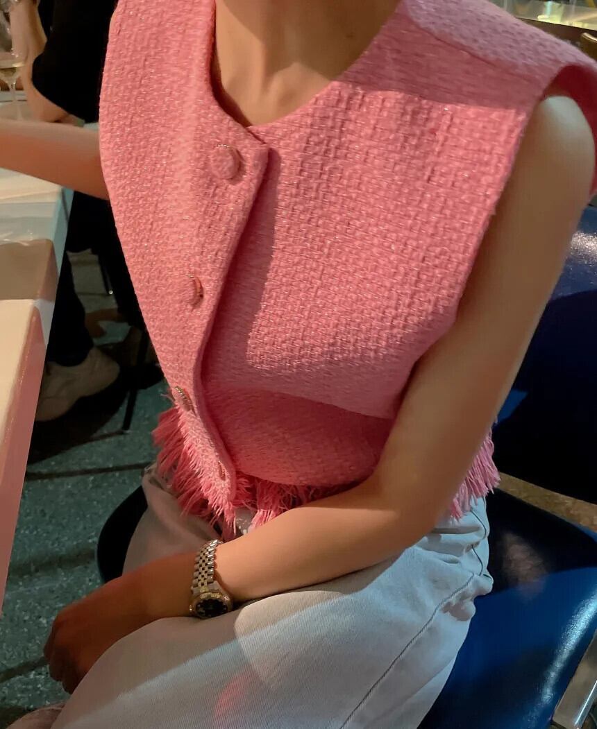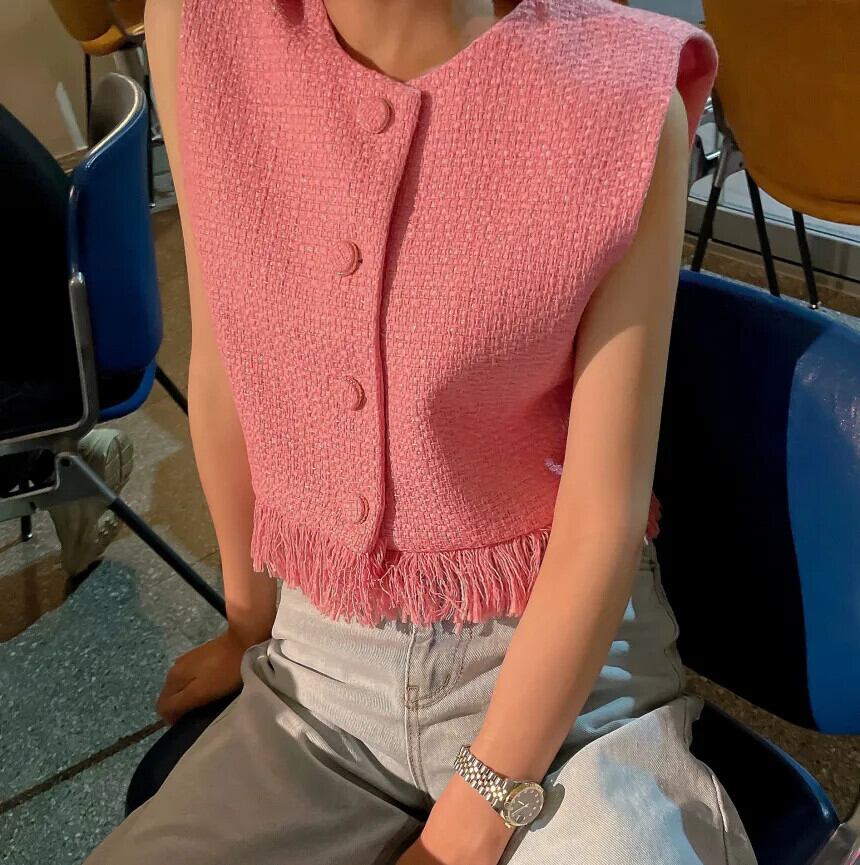 フレグラント ピンク ツイード レディース サマー パッチワーク テルズ ベスト タンク 夏物