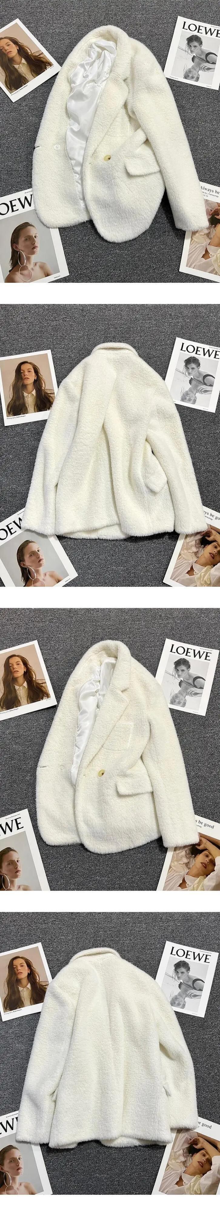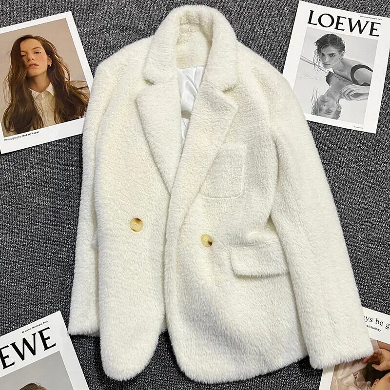 ミンク ホワイト スーツ ジャケット レディース 冬 ダブルブレスト トレンド ブレザー ウィンター 冬物