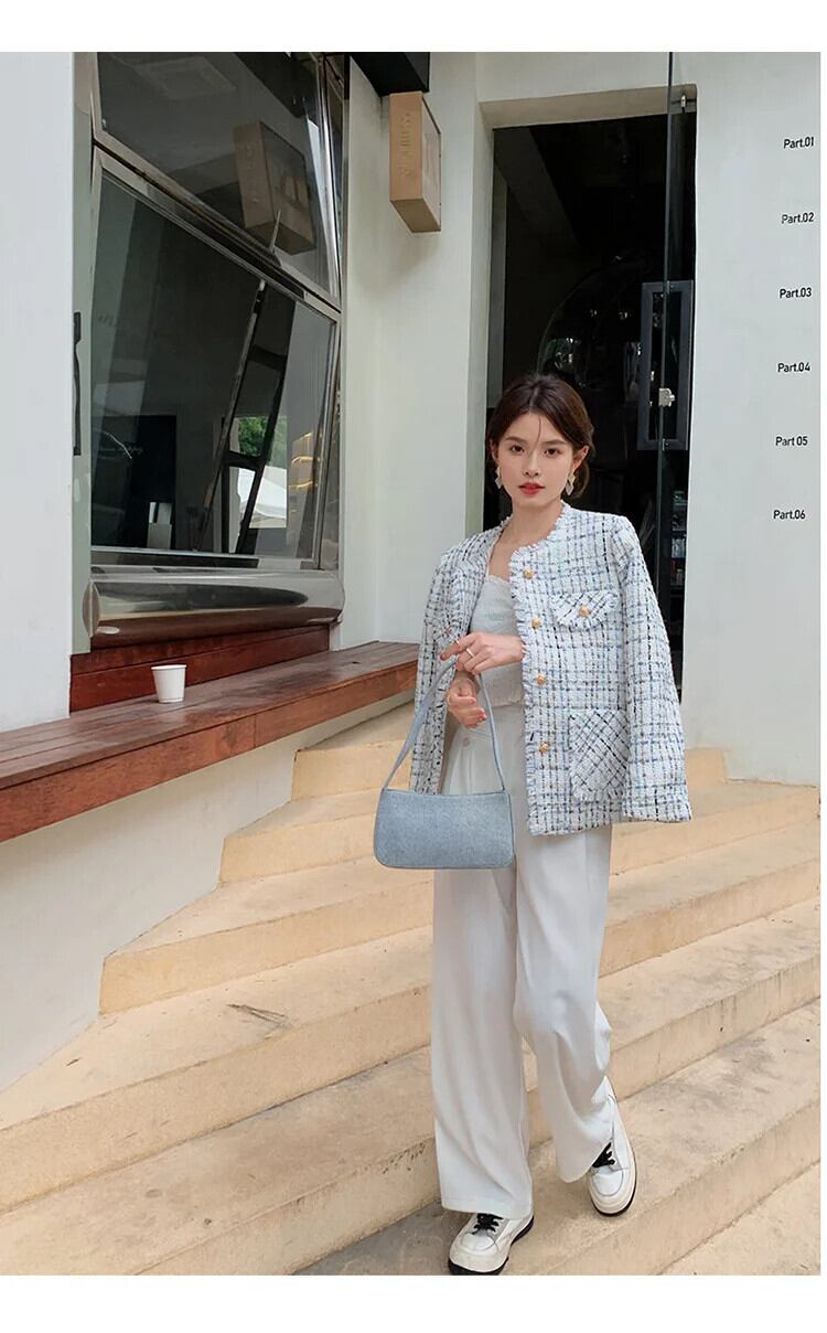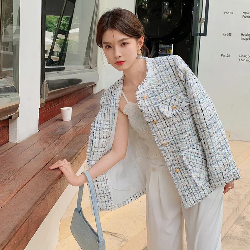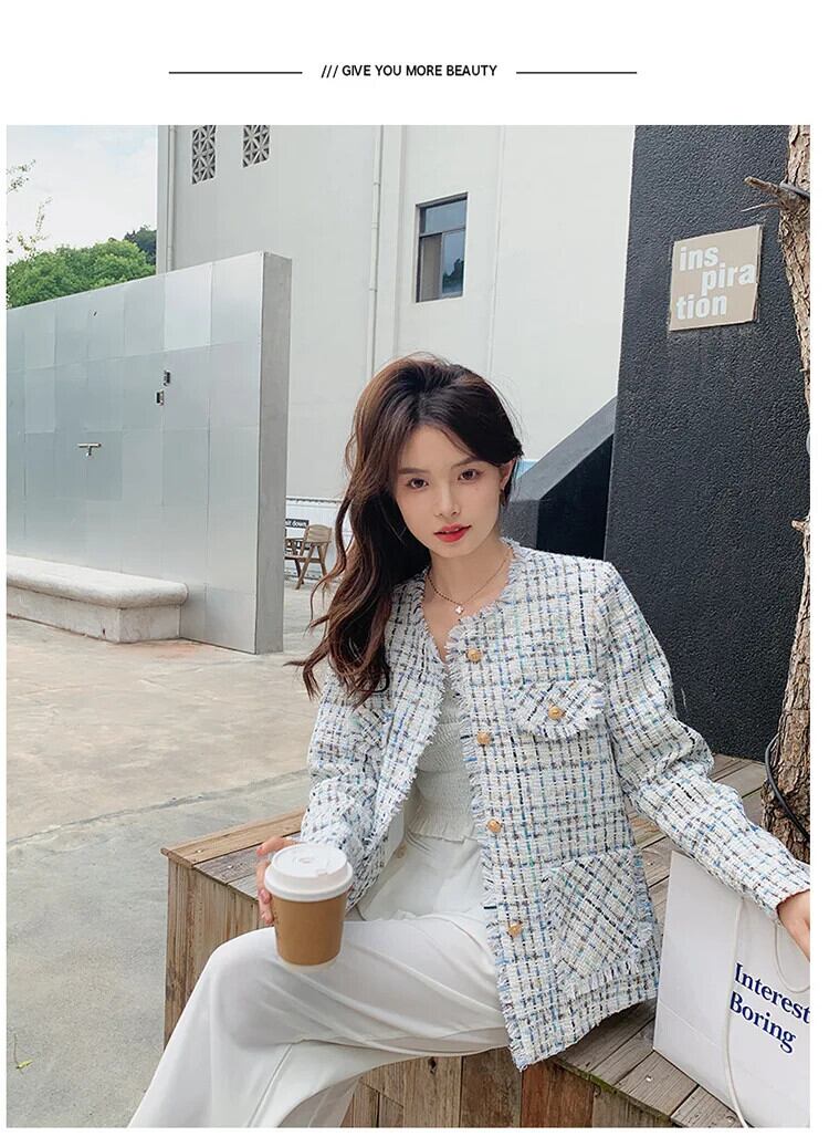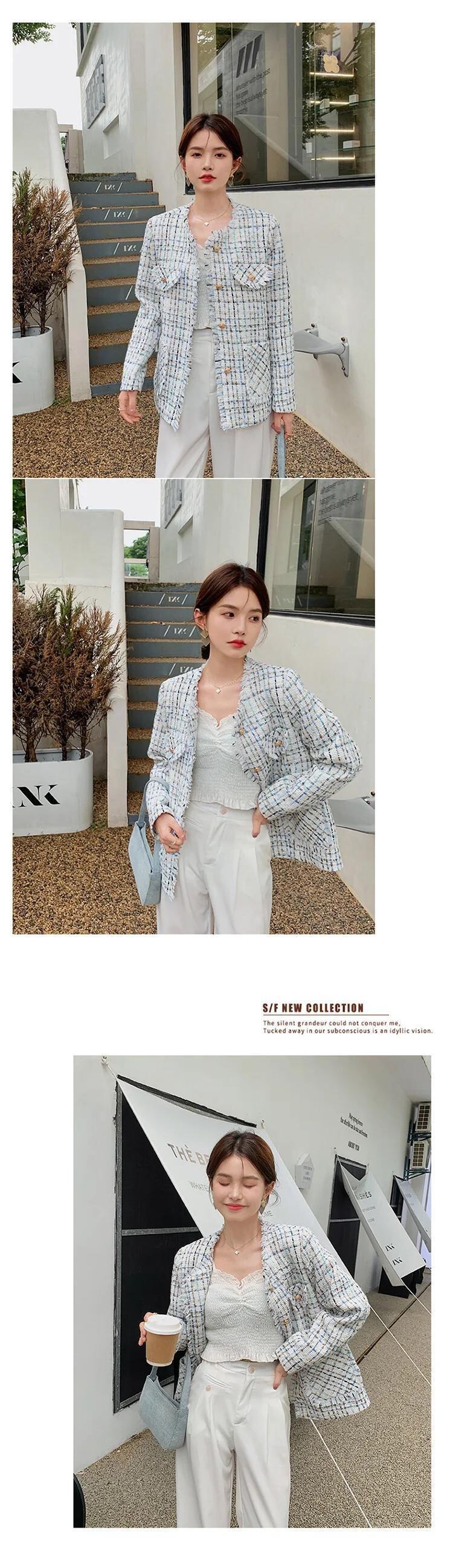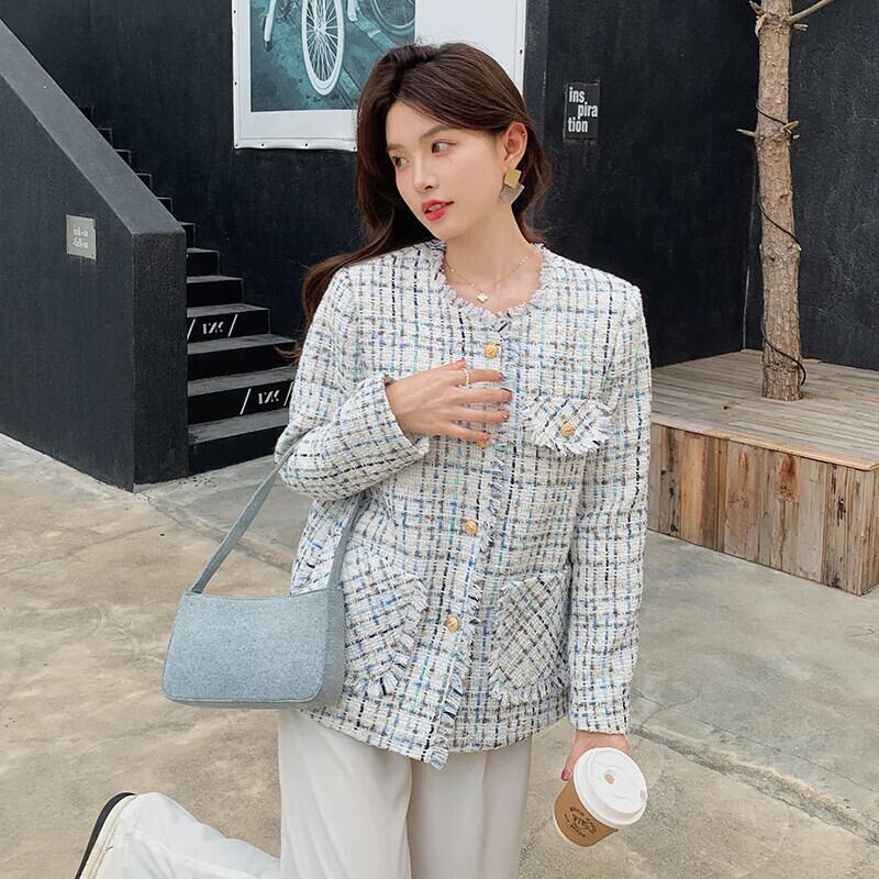 レディース スプリング テル ウール メタル ボタン ポケット ミディアム丈 ジャケット チェック柄 コート 春物