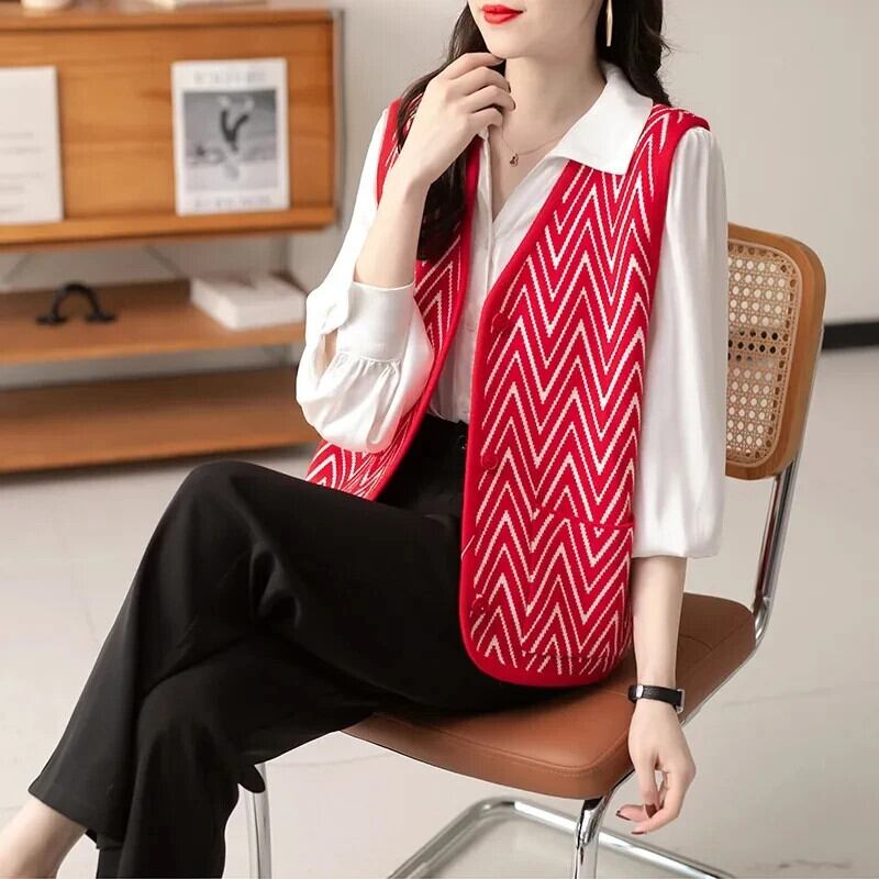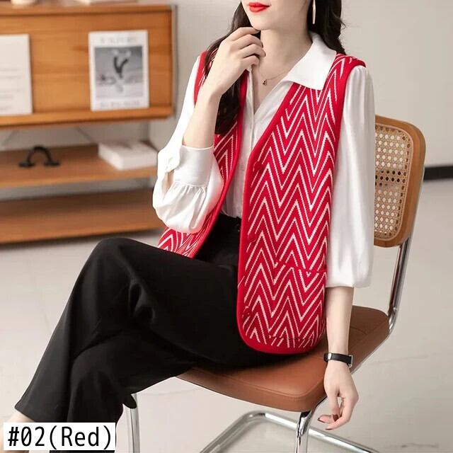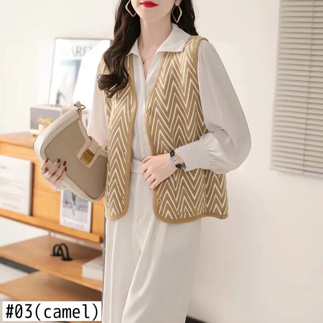 秋冬スタイルチェック柄セーターレディースニットベストコートチョッキ オータム 秋物 ウィンター 冬物