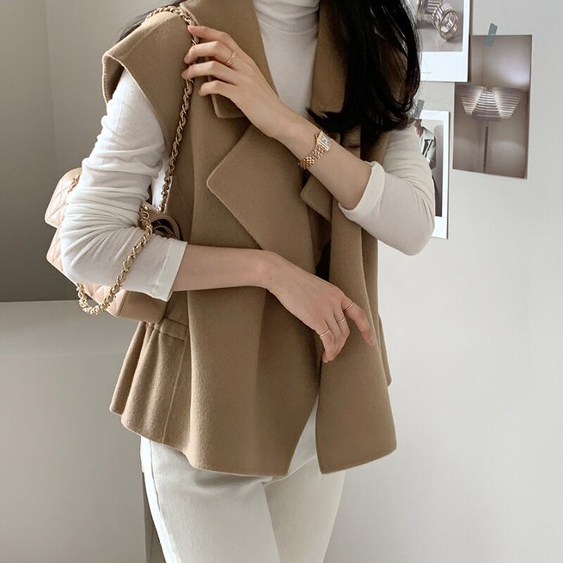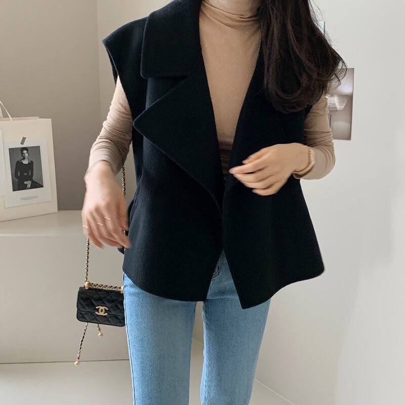 秋冬レディース両面ウールコートベストルーズチョッキ オータム 秋物 ウィンター 冬物