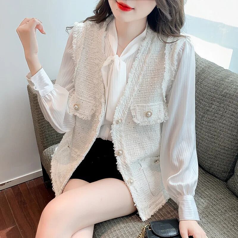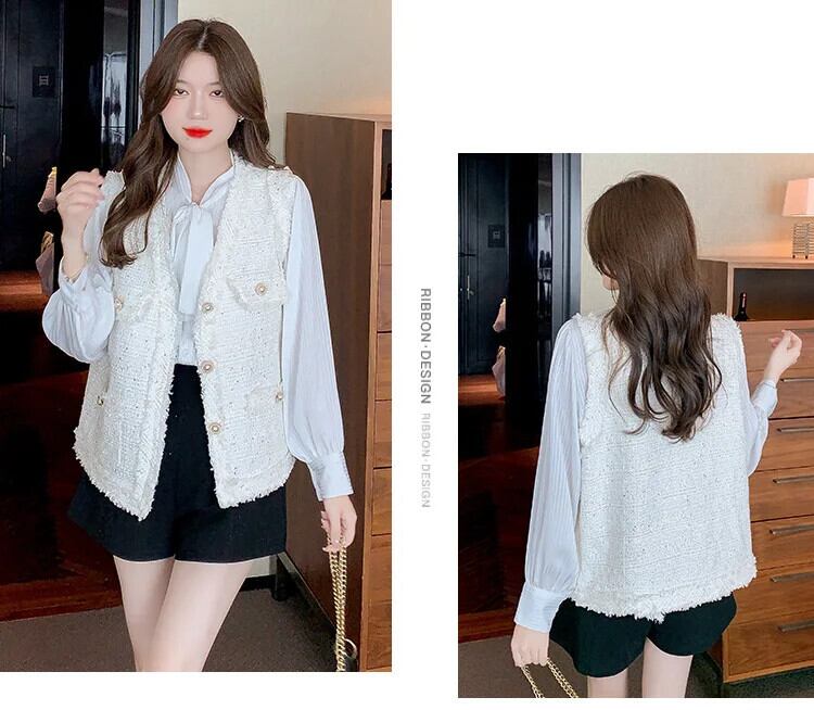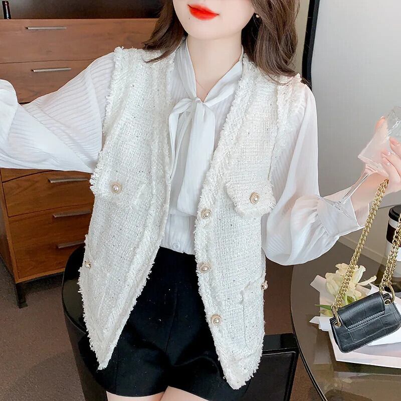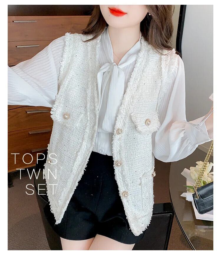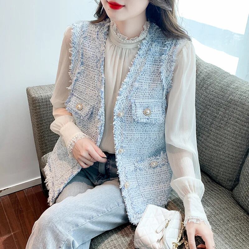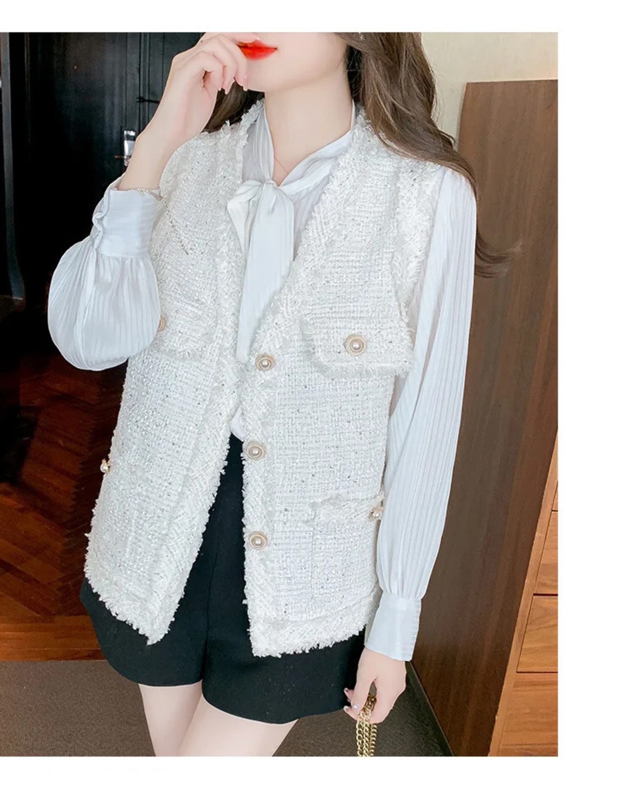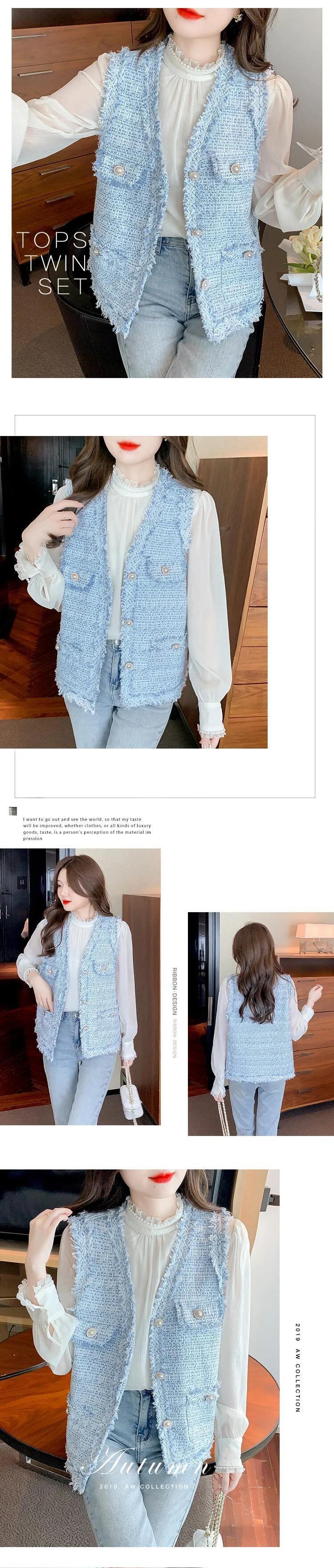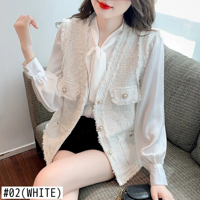 ツイード ベスト レディース 秋冬 シングルブレスト ノースリーブ ショート V ネック チョッキ オータム 秋物 ウィンター 冬物 Vネック