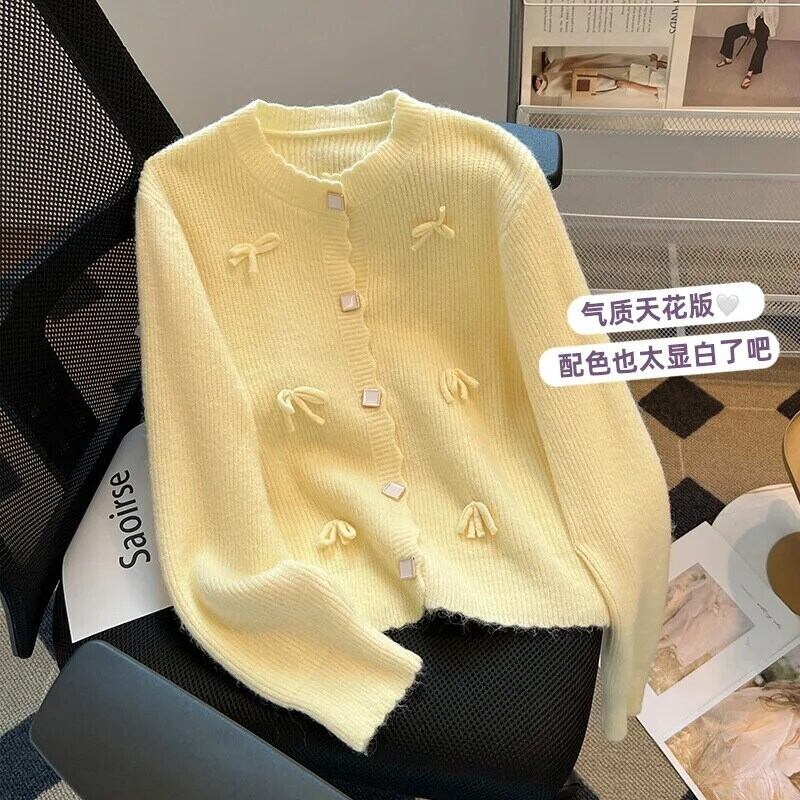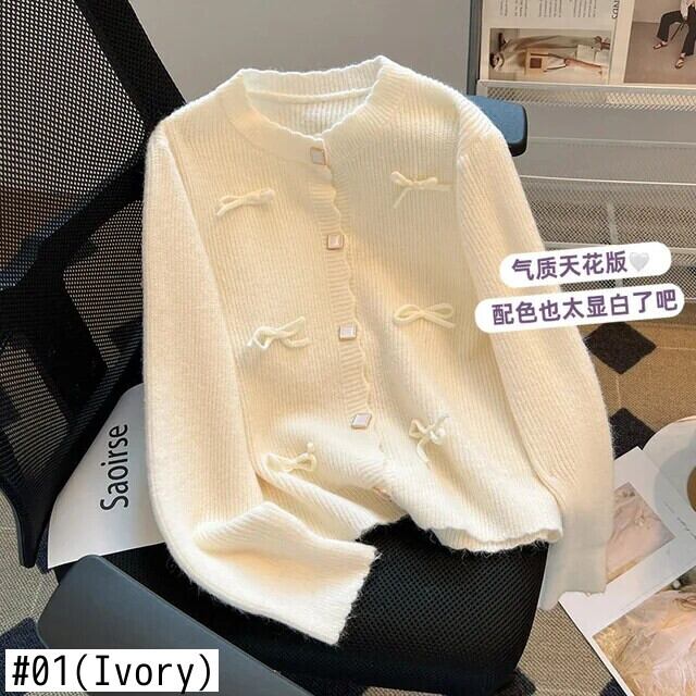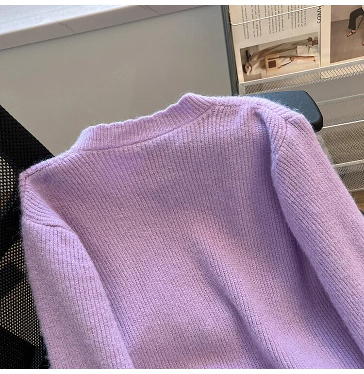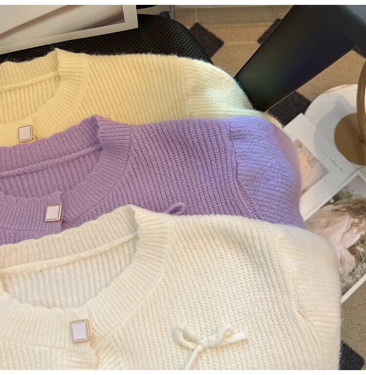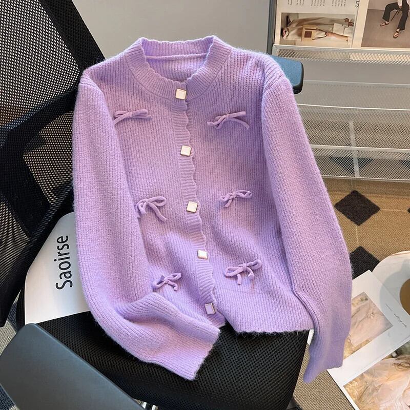 秋冬香り風紫リボンセーターカーディガン春秋ルーズニット スプリング 春物 オータム 秋物 ウィンター 冬物 パープル