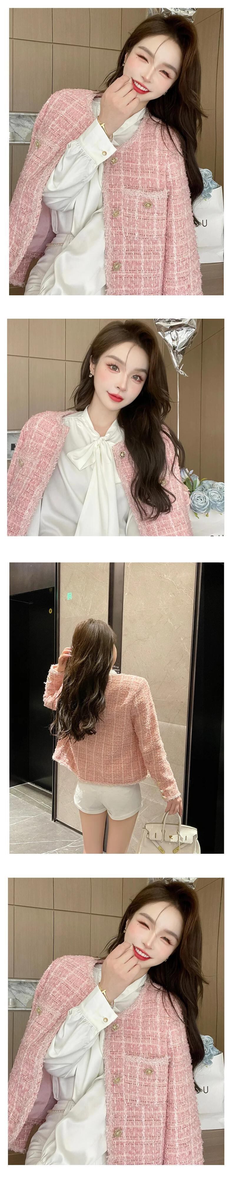 ピンク春秋香りラフツイードコートレディーススタイルジャケット スプリング 春物 オータム 秋物