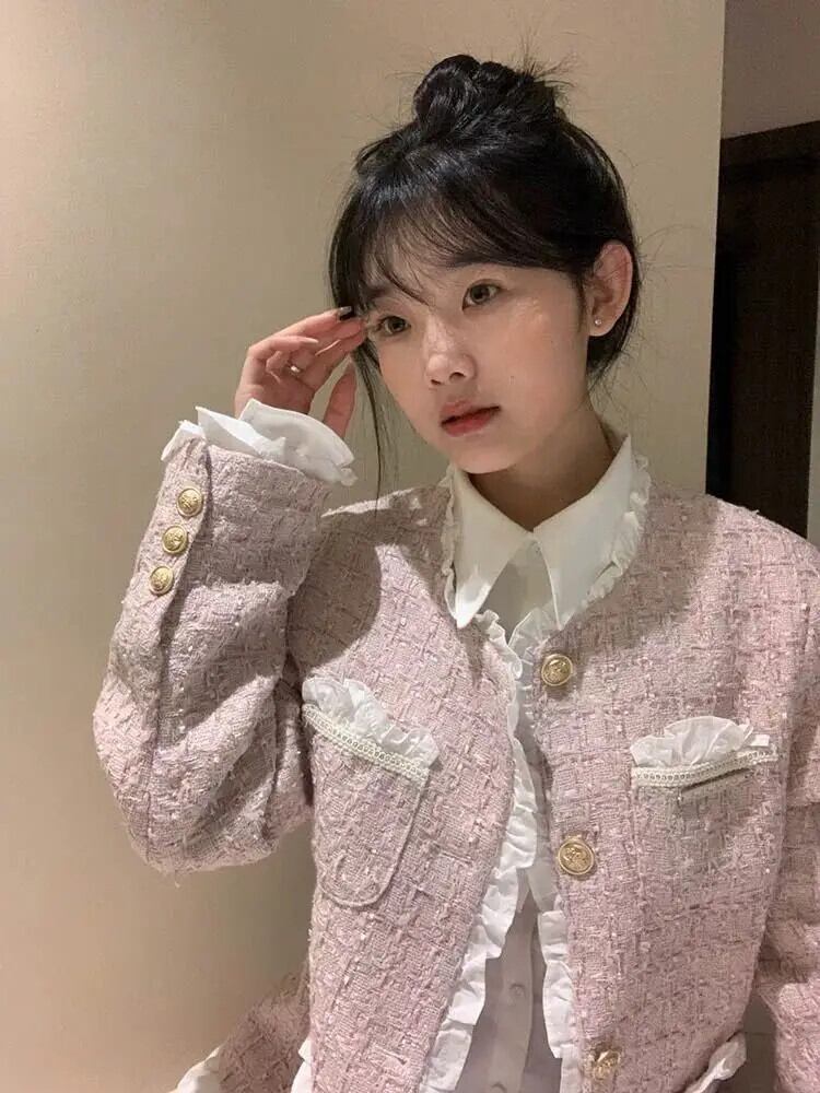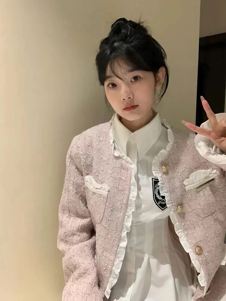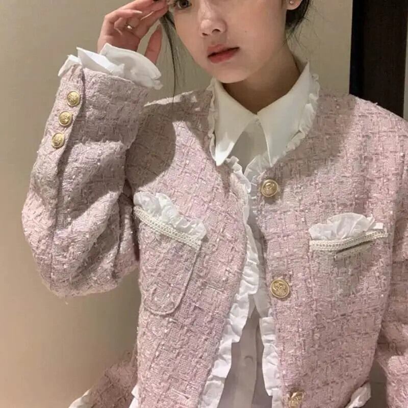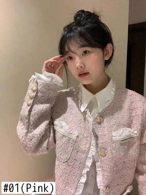ピンク香りコート春秋セレブスタイルレーススプライスショートジャケット スプリング 春物 オータム 秋物