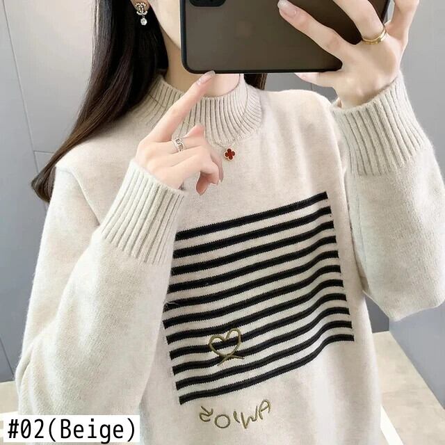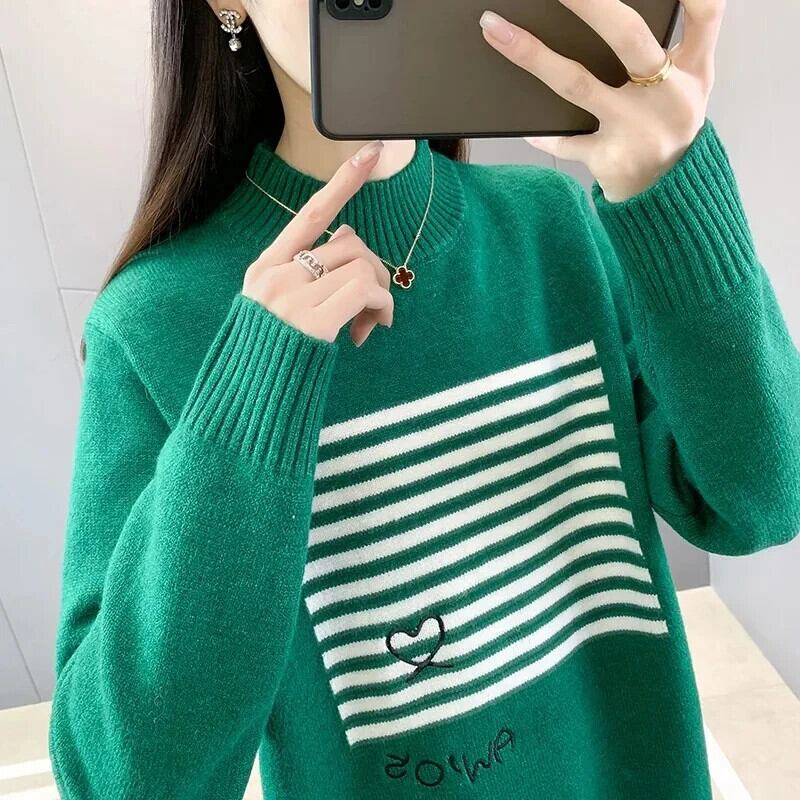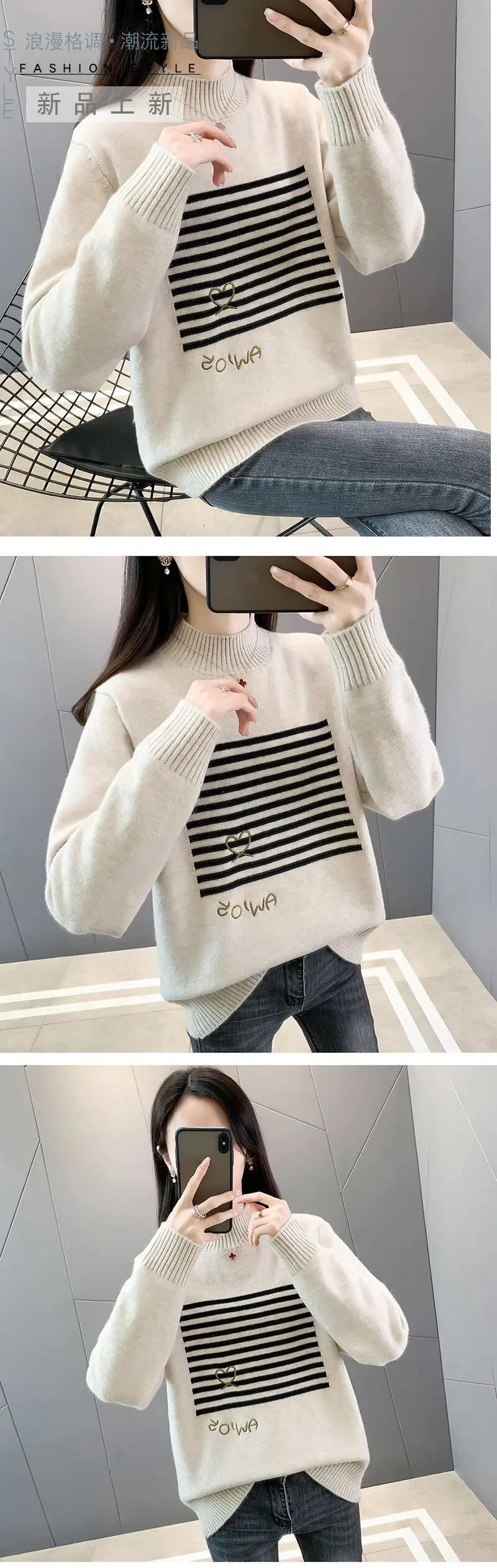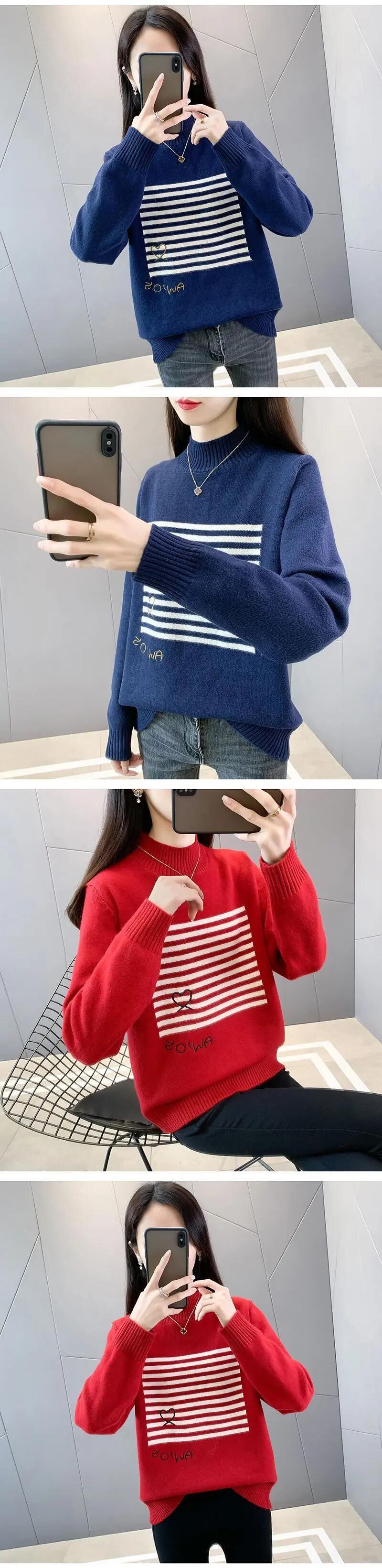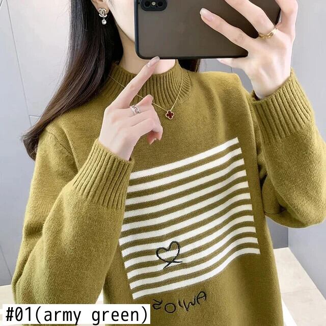 秋ルーズ O ネック長袖ストライプセーター怠惰ソフトニットジャンパーオールマッチプルオーバー ロング オータム 秋物 Oネック
