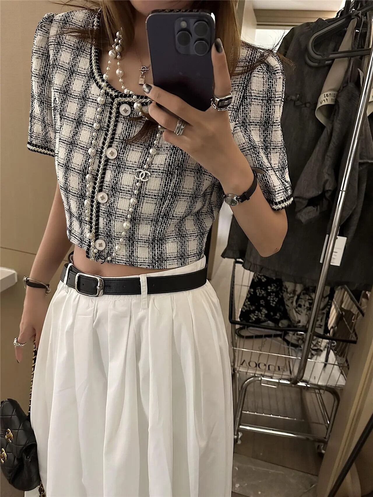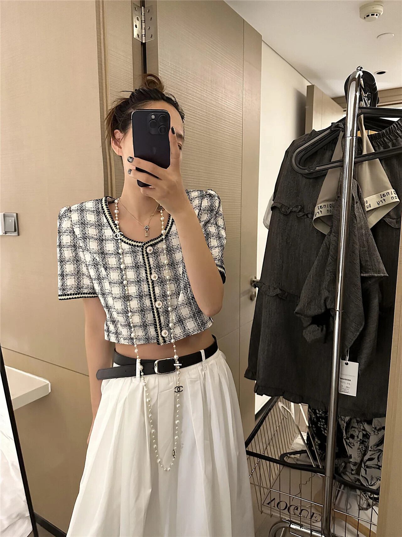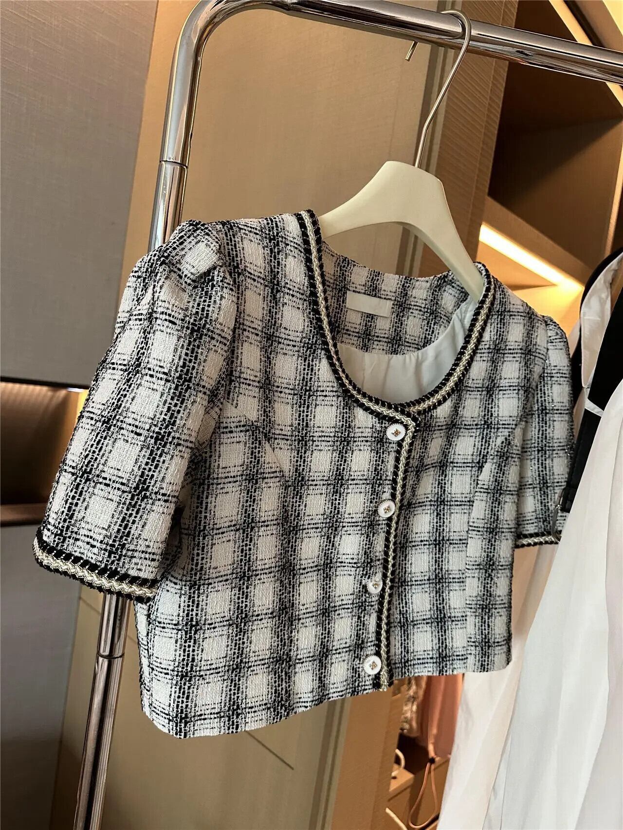 レトロ夏半袖ラウンドネックシングルブレストジャケット生き抜くコート ショート ハーフスリーブ サマー 夏物 Oネック