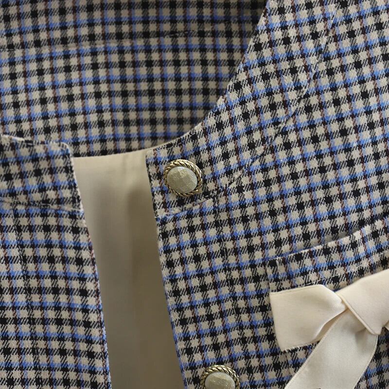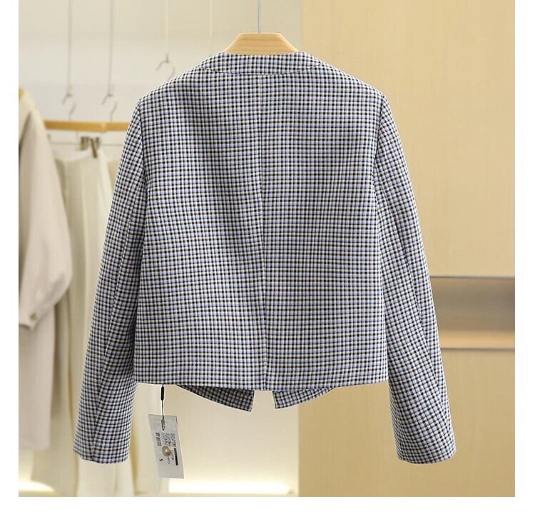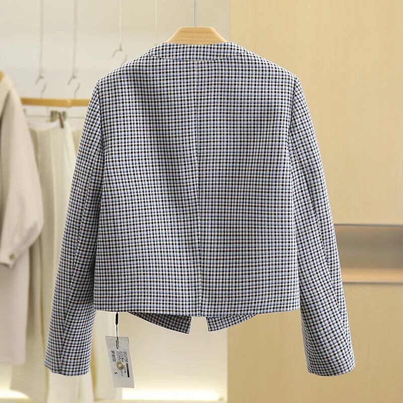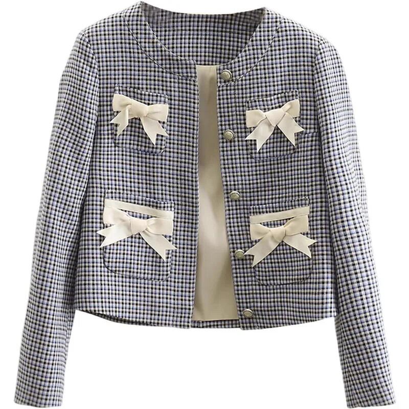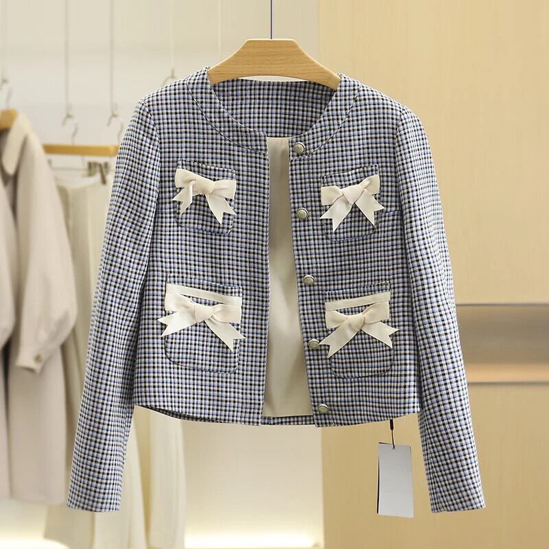 レディースチェック柄リボンショートジャケット春秋スタイルアウターコート Casaco 生き抜く スプリング 春物 オータム 秋物