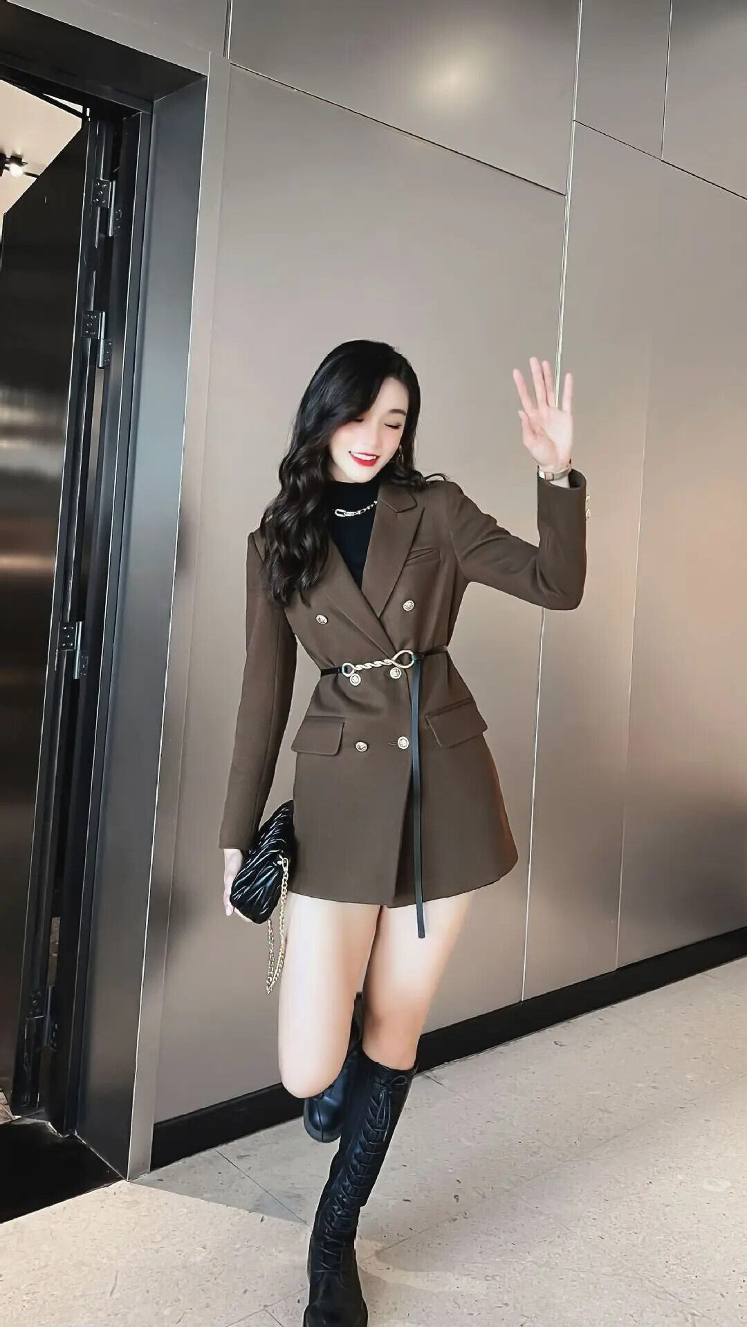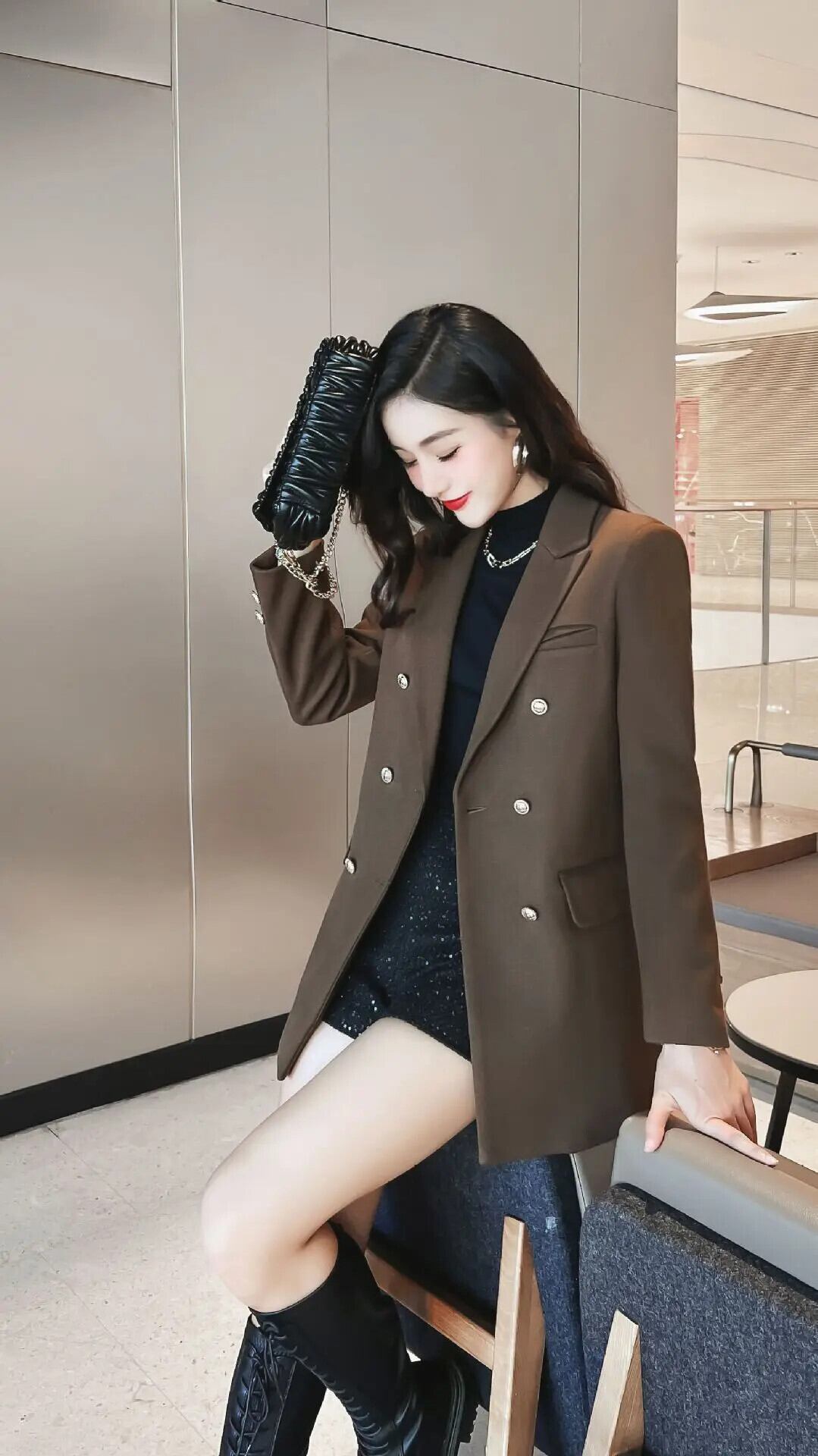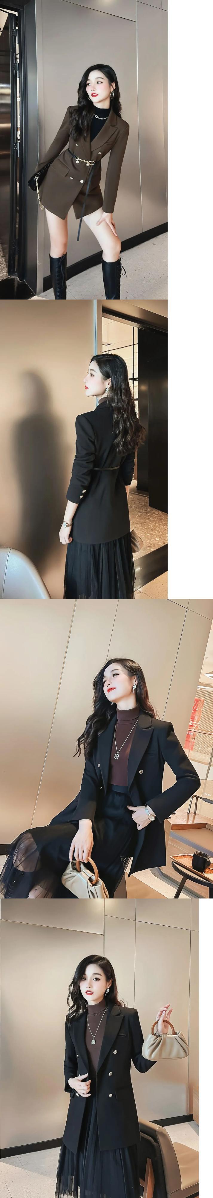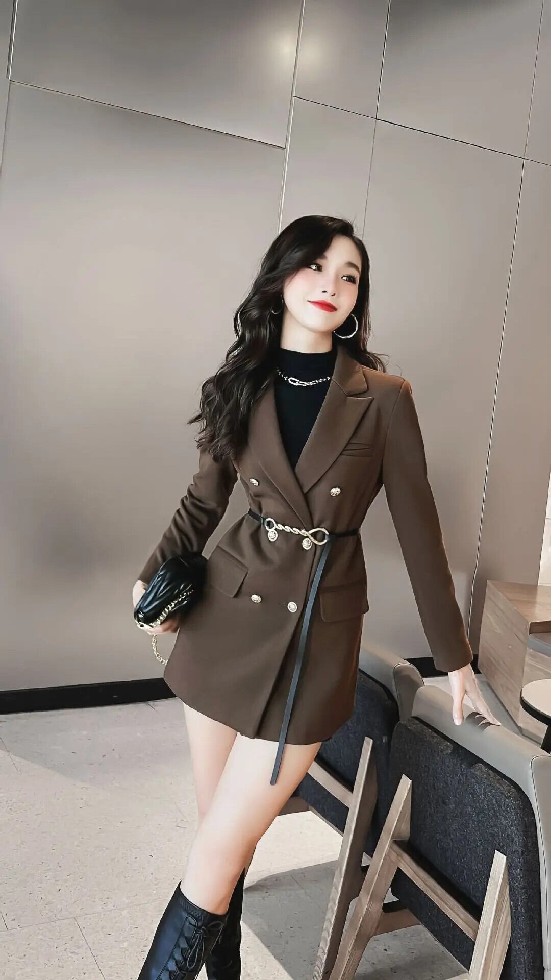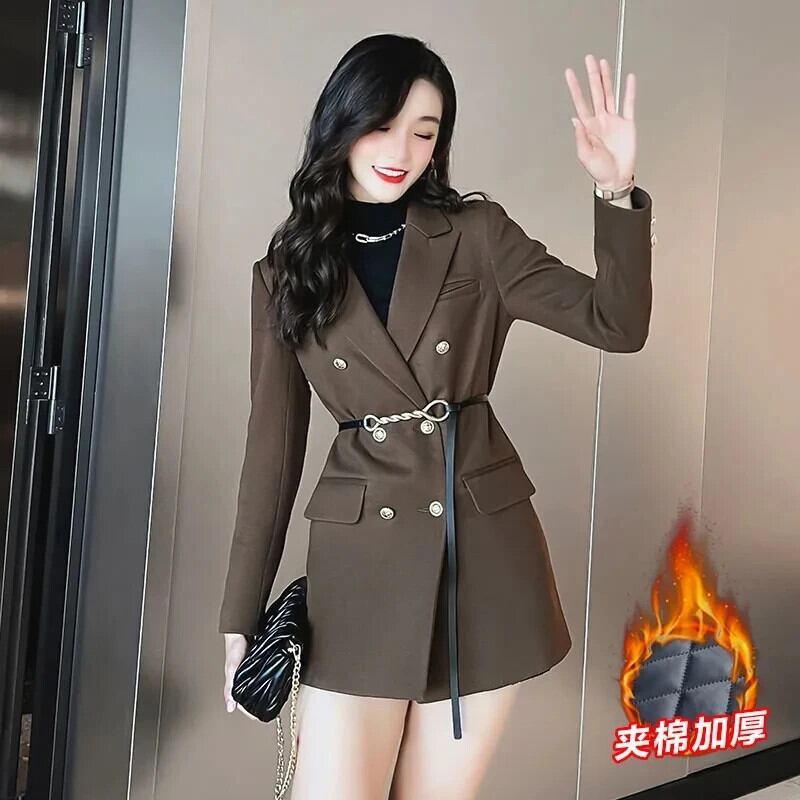 ブラウン ブラック ベルト スーツ コート レディース ミディアム ロング 冬 コットン ブレザー ウィンター 冬物 ハーネス