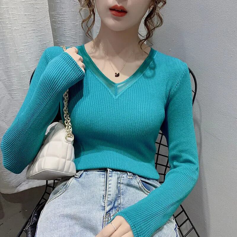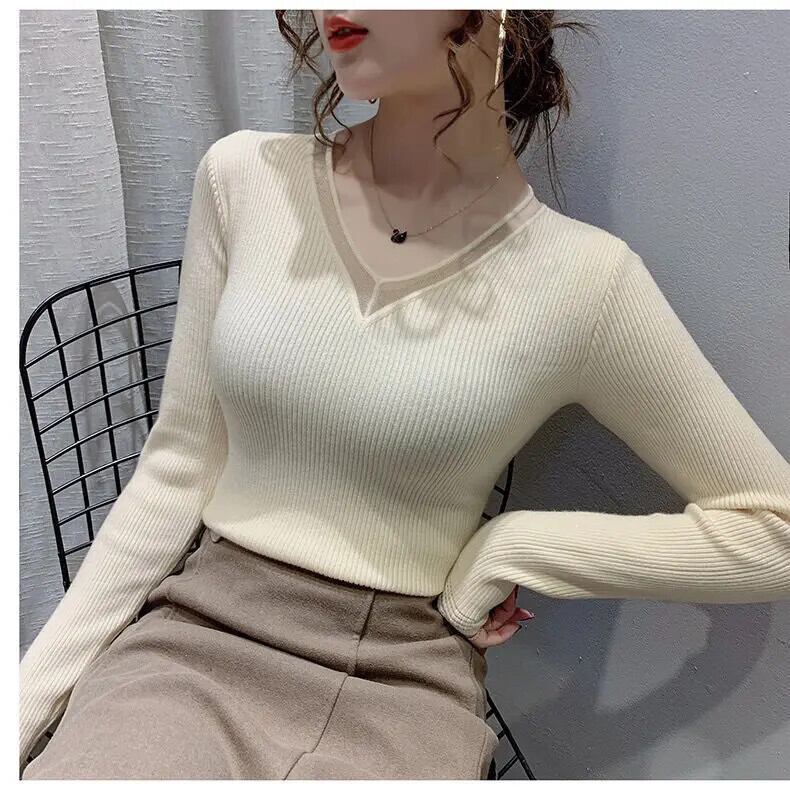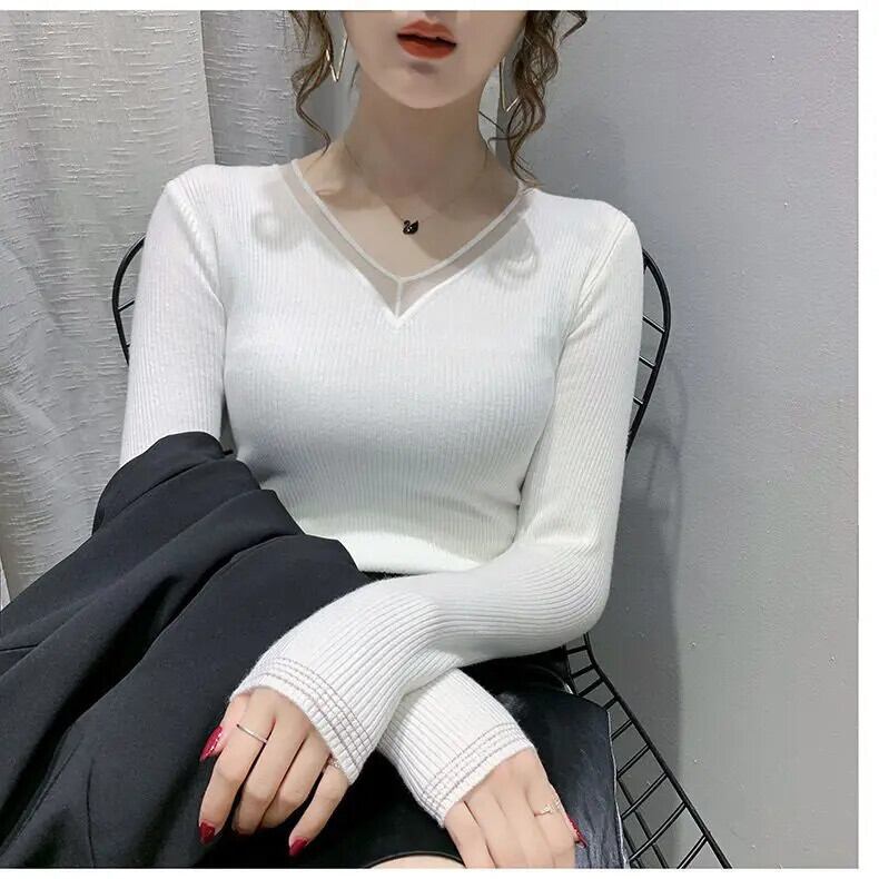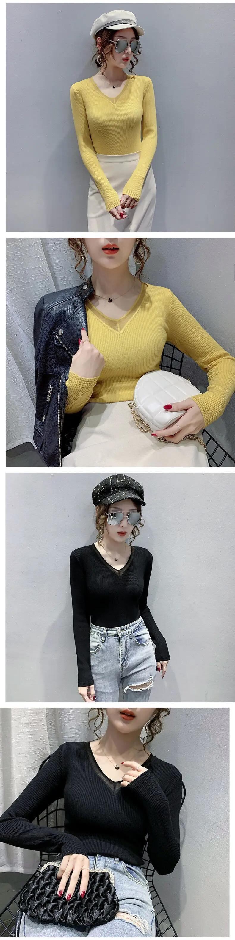 スリムフィットニットレディース長袖秋スタイル薄いタイトフィットベースセーターショート ロング オータム 秋物