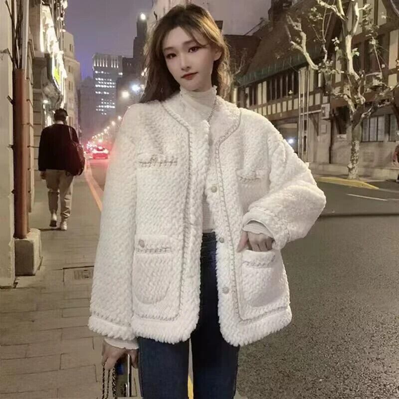 秋冬 2024 ルーズ肥厚イミテーションフェイクファージャケット統合香りよい子羊毛コート オータム 秋物 ウィンター 冬物