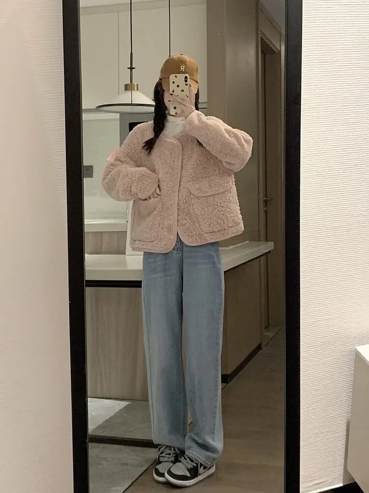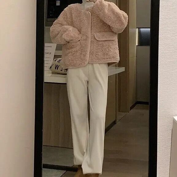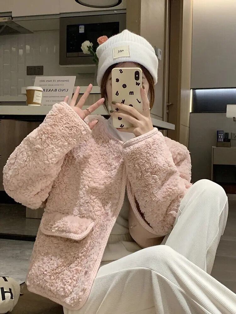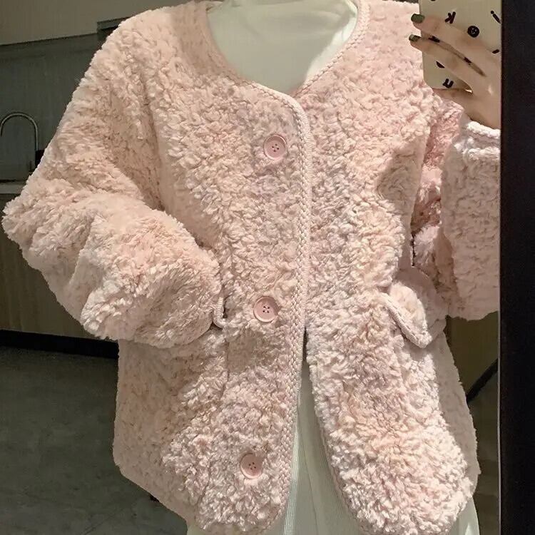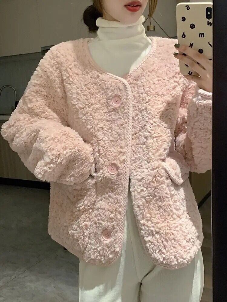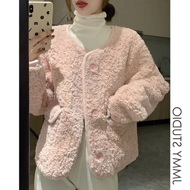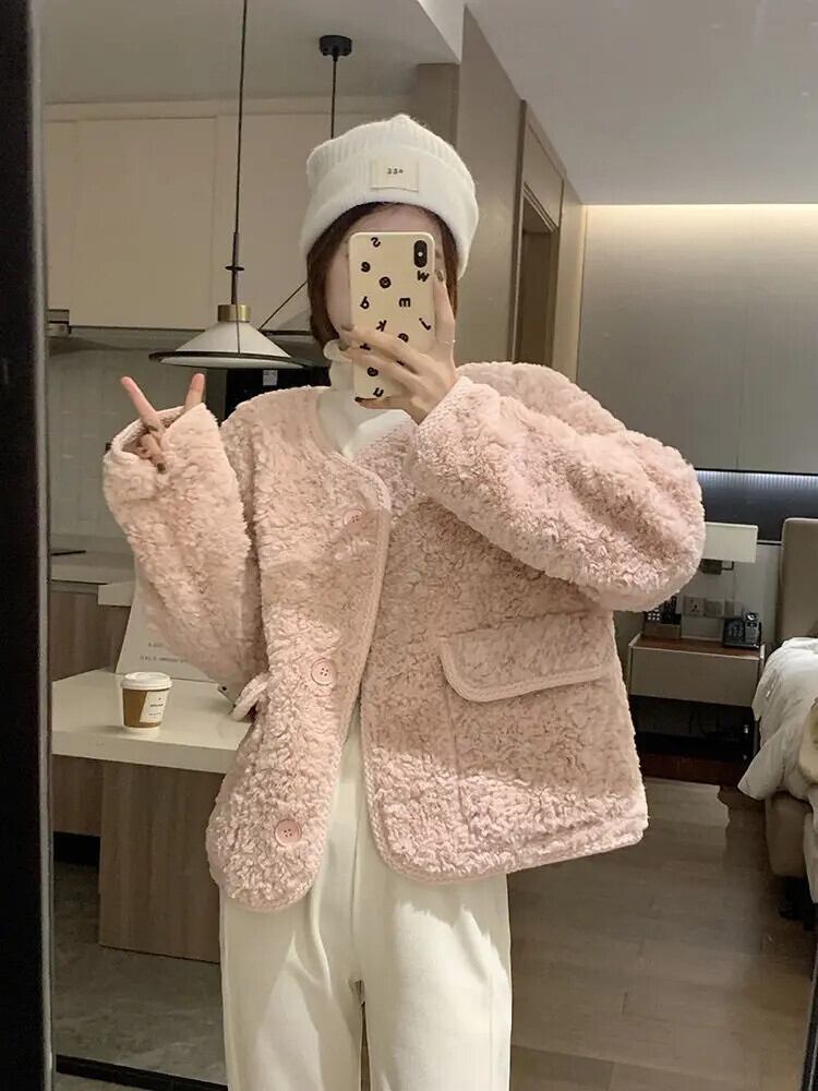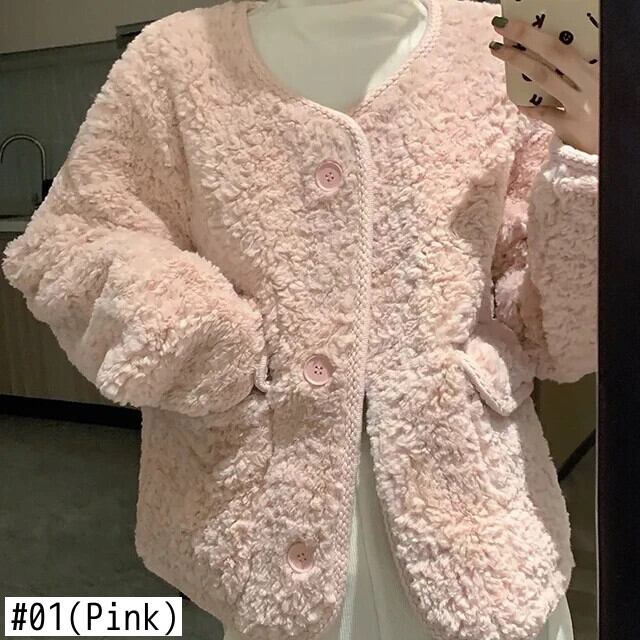 ピンク ラム ウール コート レディース 春秋 ルーズ リラックス ジャケット 甘い 大人ガーリー スウィート キュート カジュアル スプリング 春物 オータム 秋物