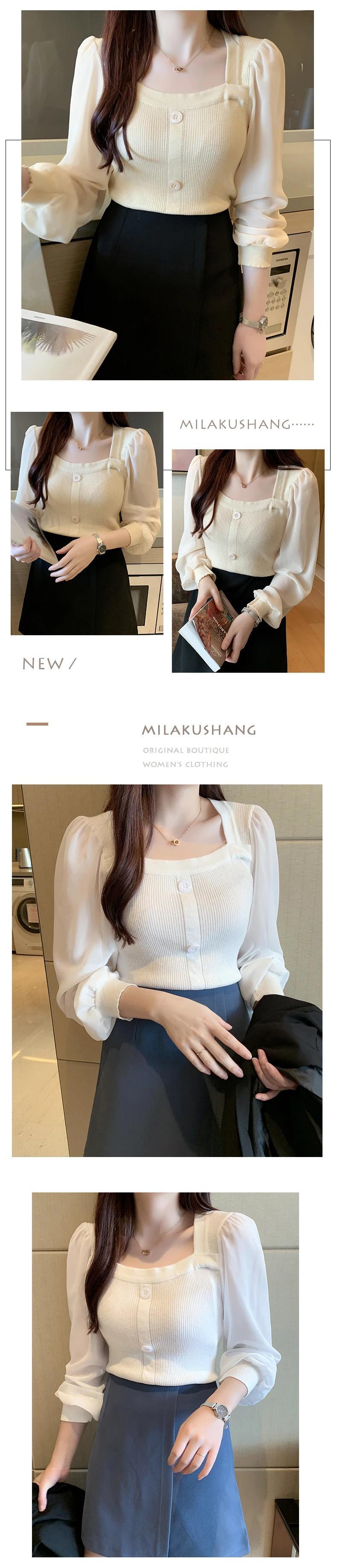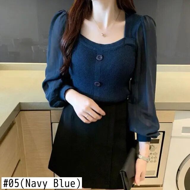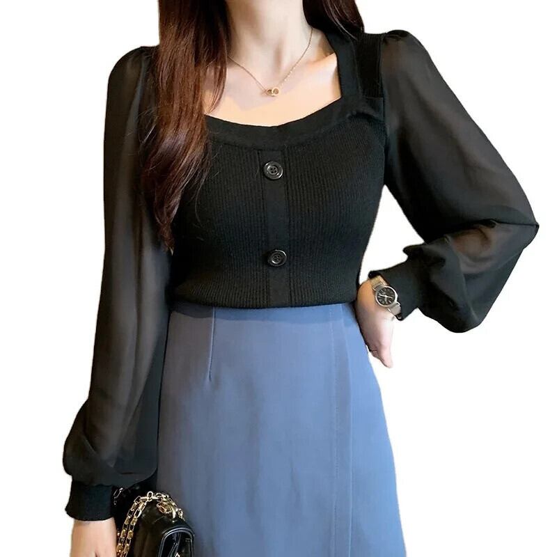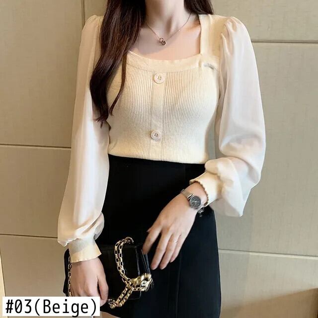 春スタイルネット糸底自己修養インナースクエアカラー長袖ショートセーター ロング スプリング 春物 スクウェア