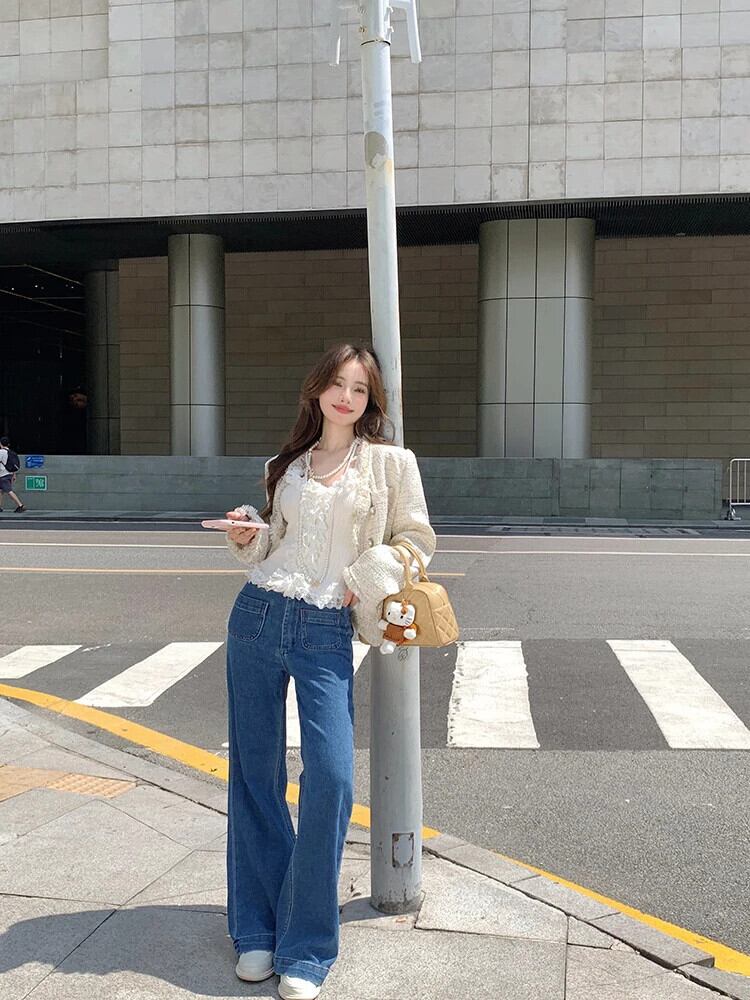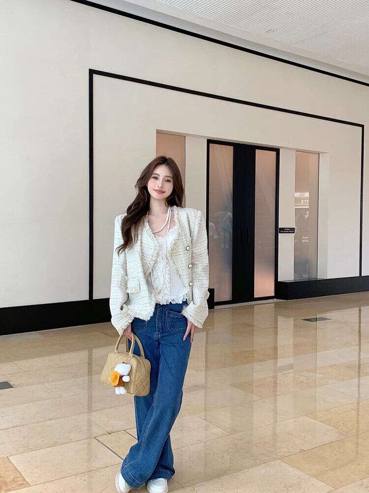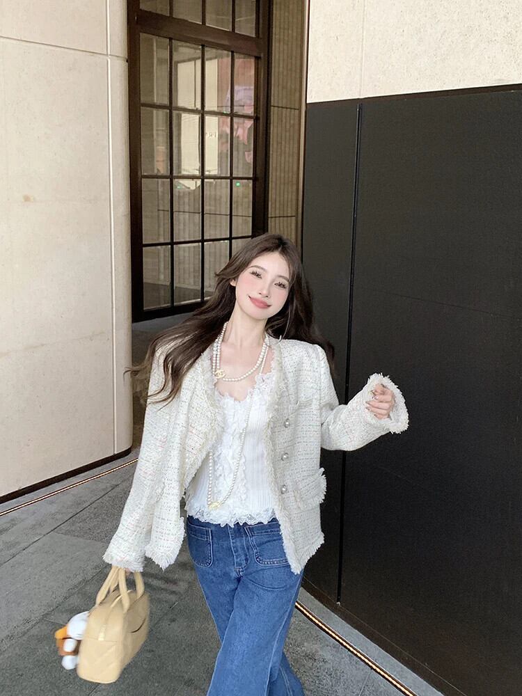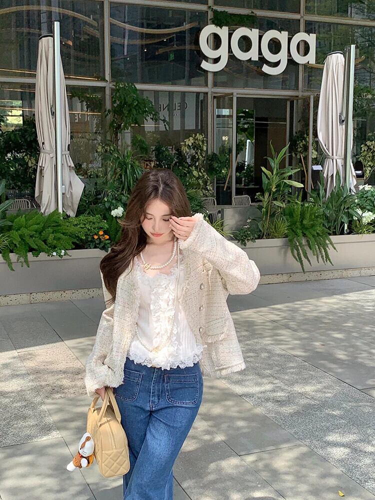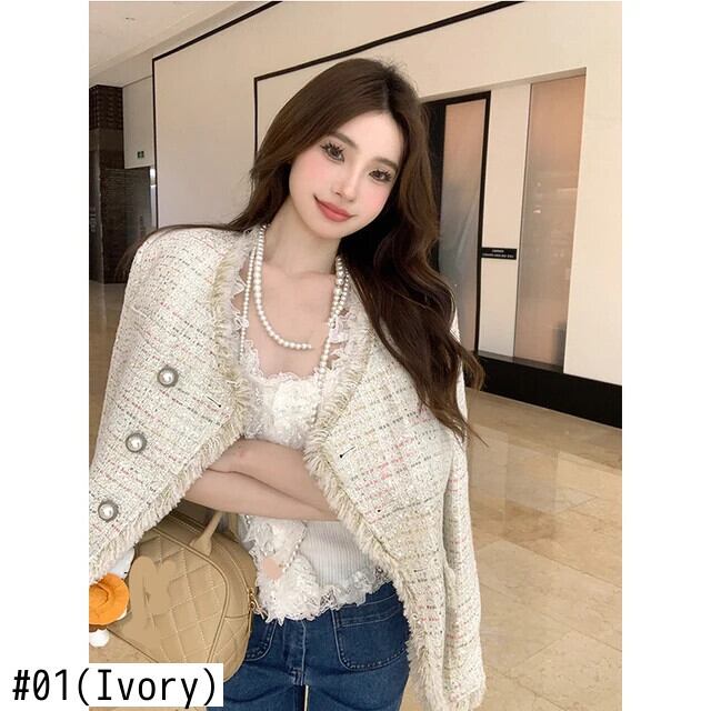 ストリートフレグランス V ネックコート秋冬スリムツイードジャケットショートアウター ウィンター 冬物 Vネック