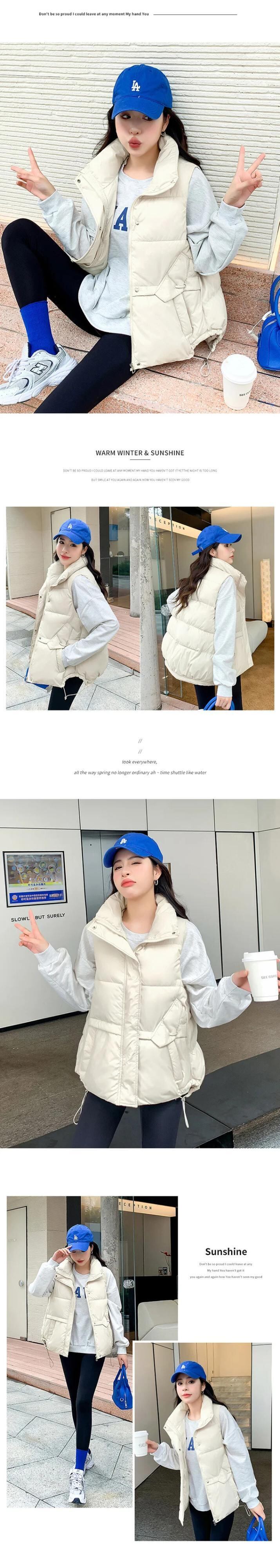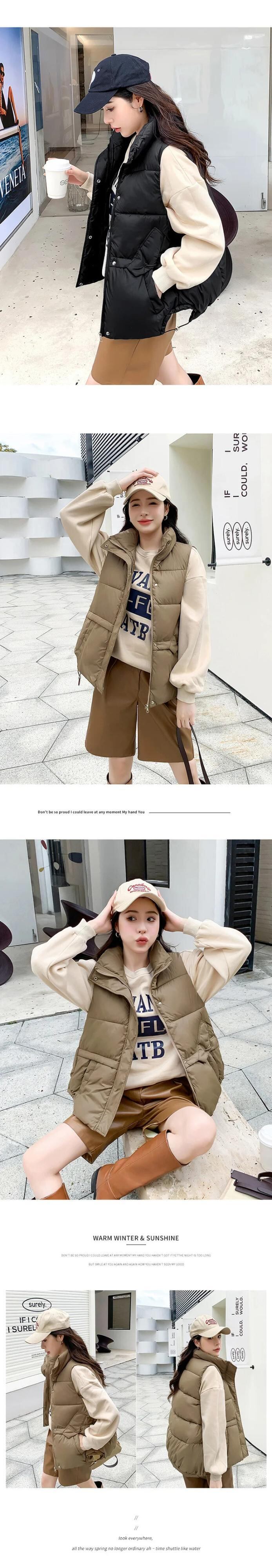 23 ベスト春秋冬立ち襟学生肥厚暖かいコートショートダウン綿タンクトップチョッキ コットン スプリング 春物 オータム 秋物 ウィンター 冬物