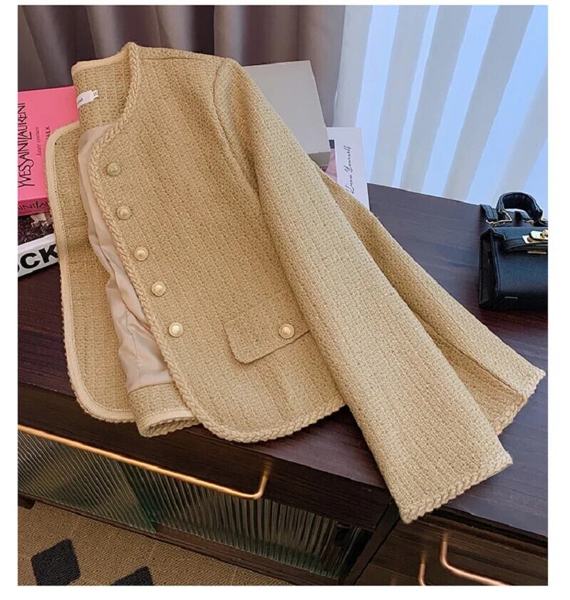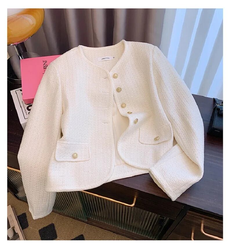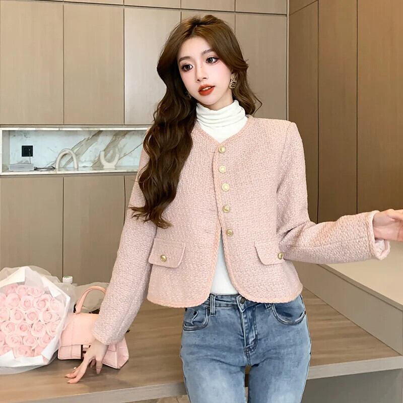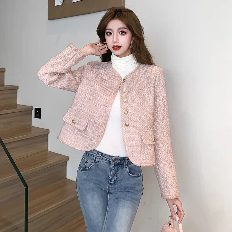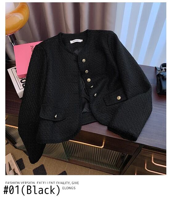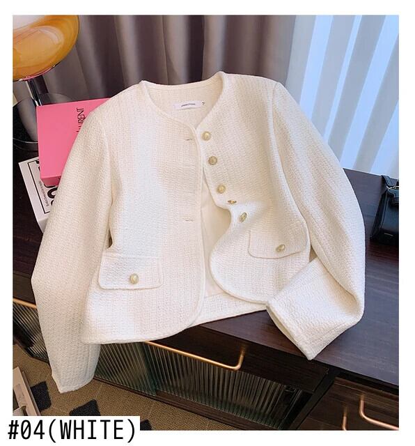 春秋香りピンクカーキブラックホワイト気質ショートコートツイードジャケット スプリング 春物 オータム 秋物
