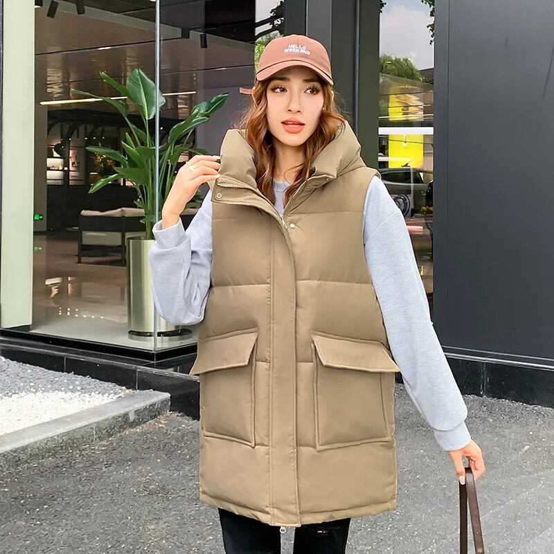 秋/冬暖かいベストミッドレングスダウンコットンワシットコート オータム 秋物 ウィンター 冬物