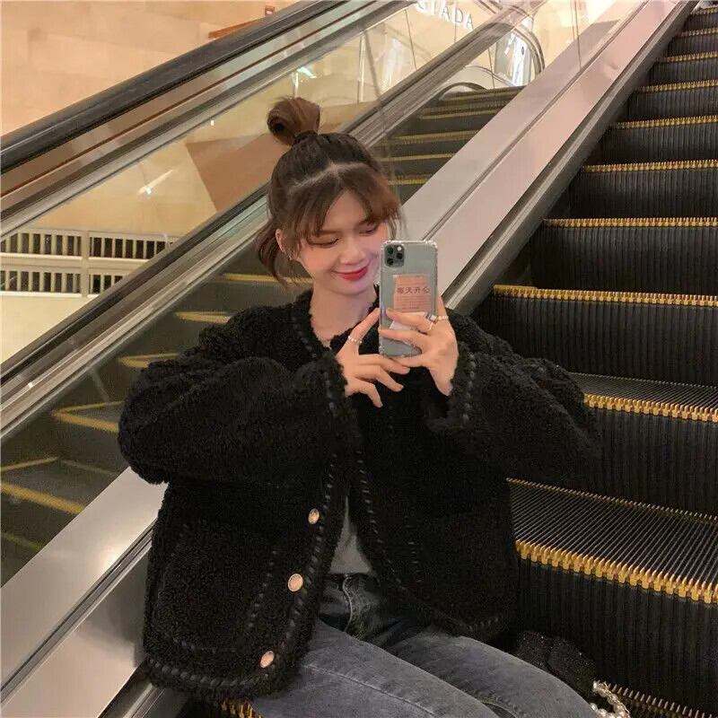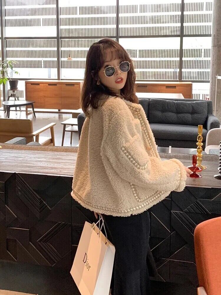 秋冬肥厚ルーズショートファー一体型香り豊かラムヘアコートジャケット オータム 秋物 ウィンター 冬物