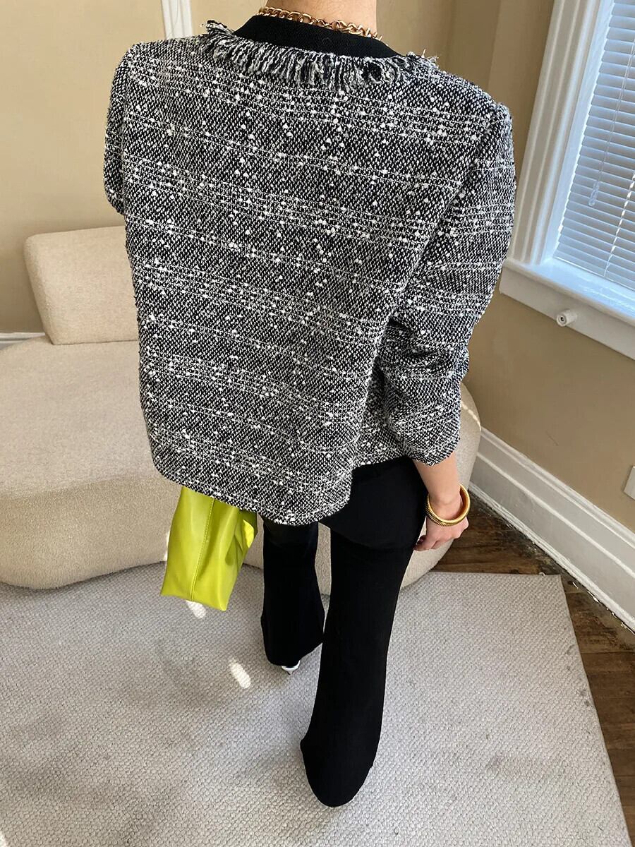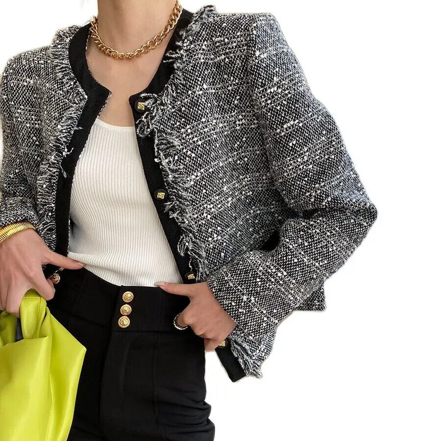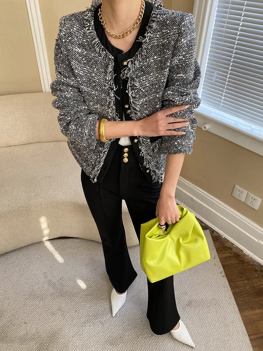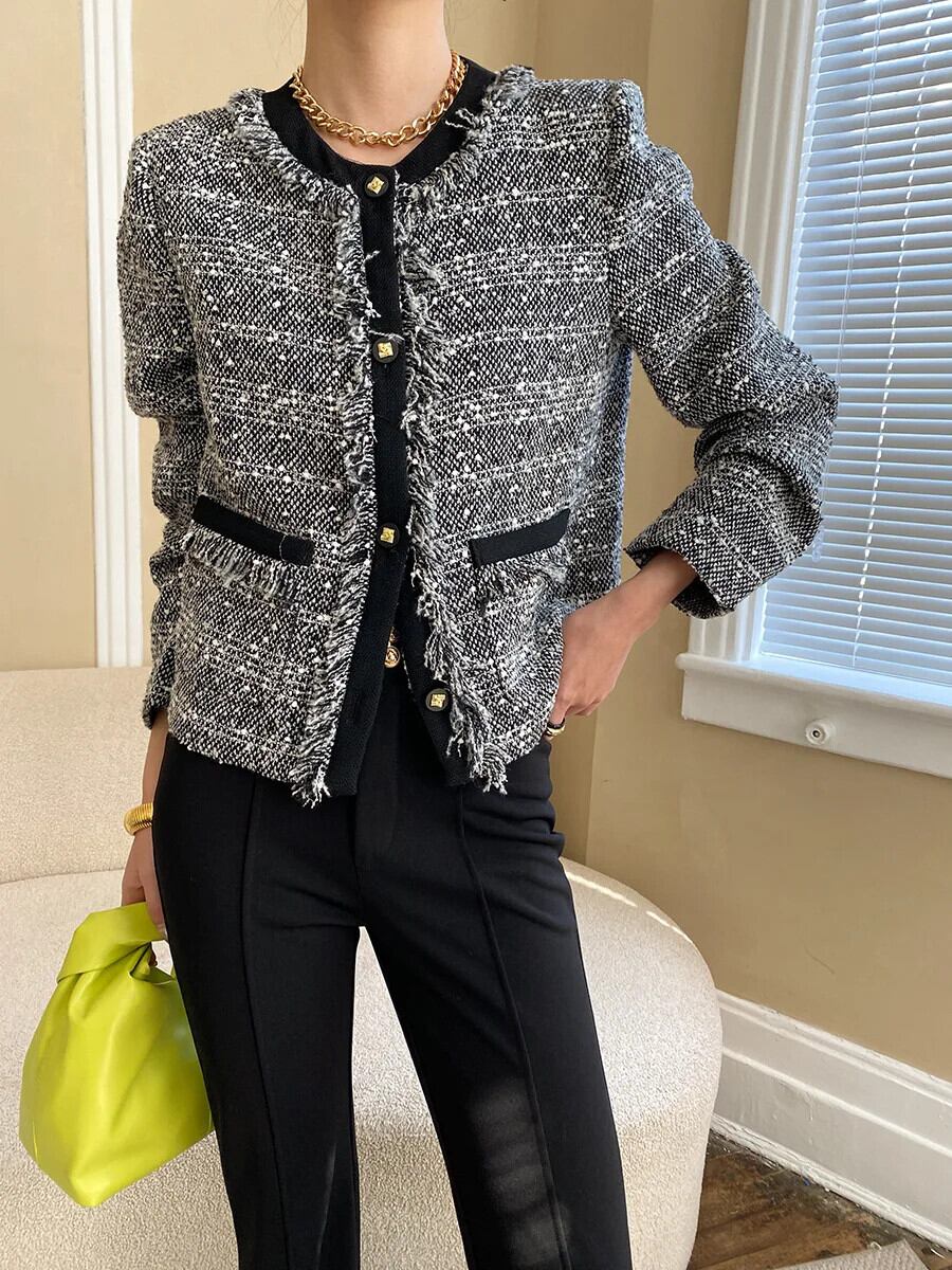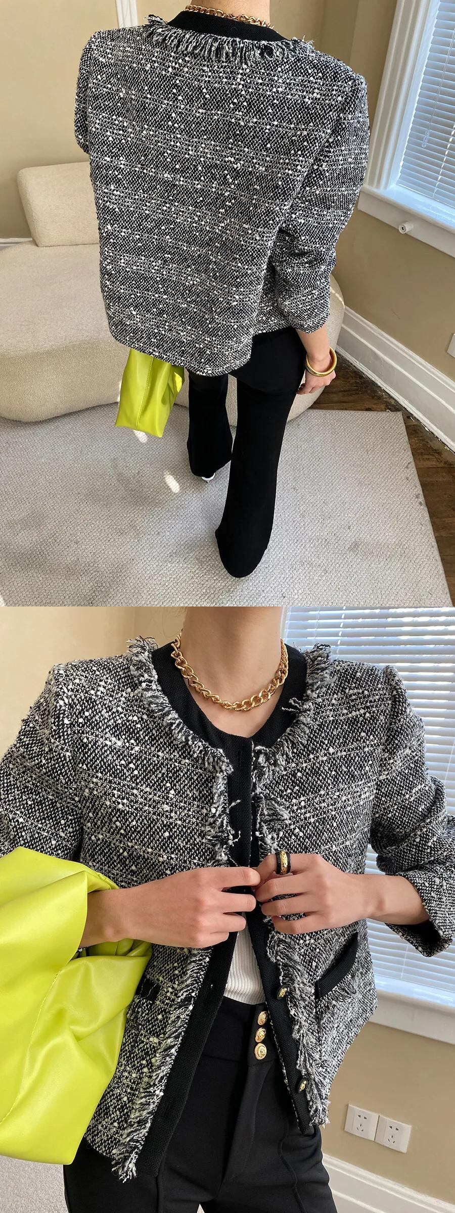 レディース春秋粒状ツイードテルハンドブラッシュコート滑走路ジャケット スプリング 春物 オータム 秋物
