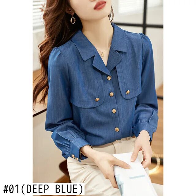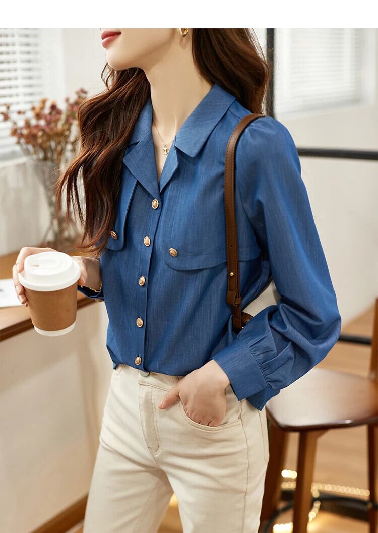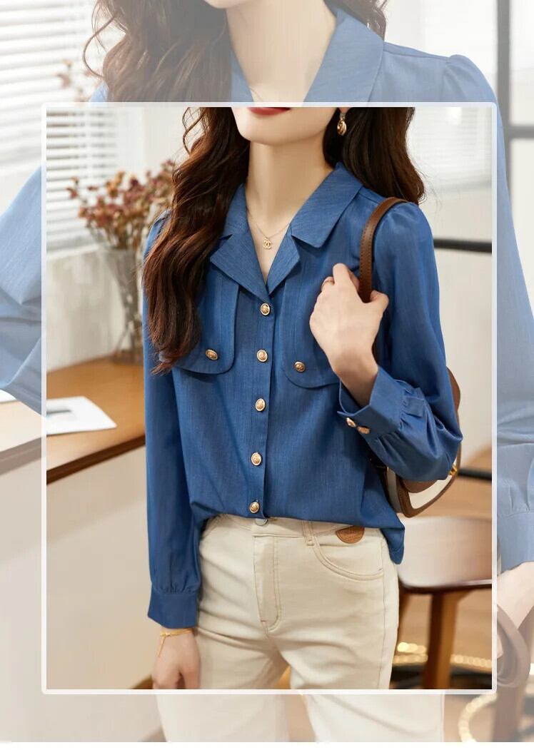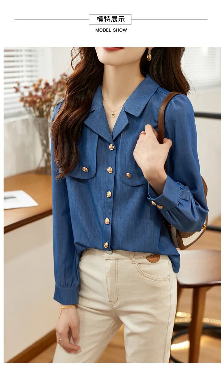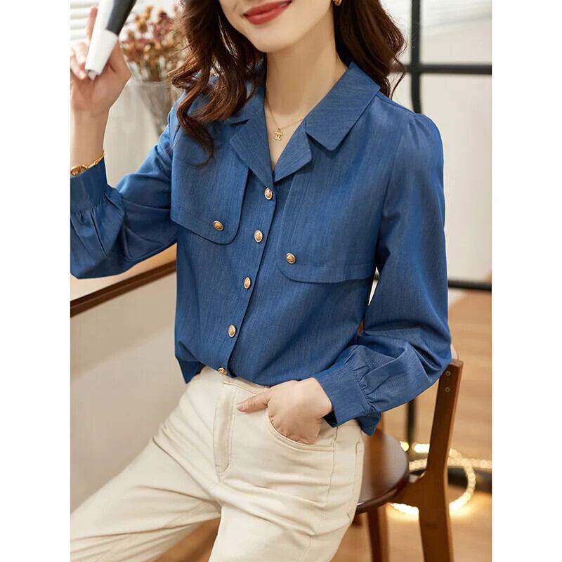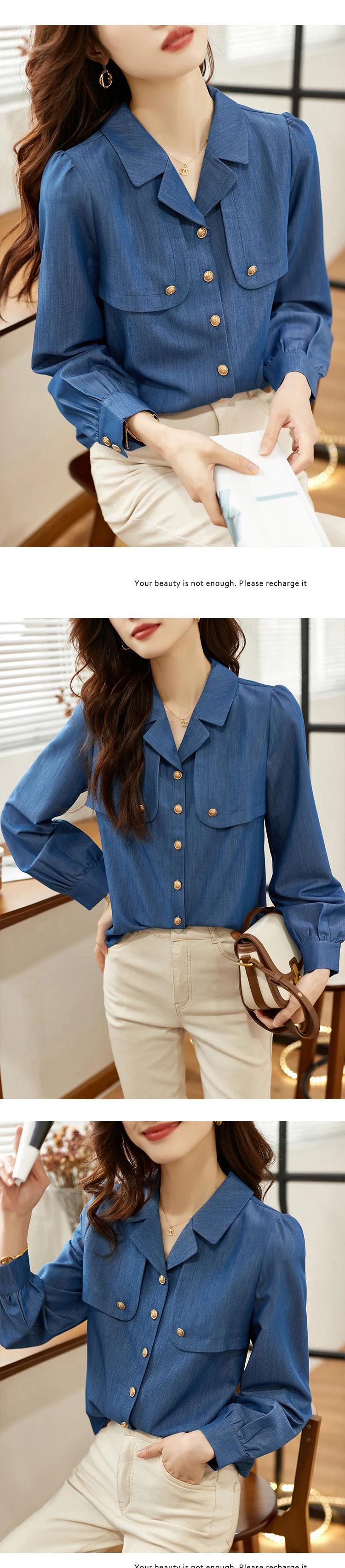 春秋レトロ宮殿スタイルユニーク長袖デニムシャツ ロング レース スプリング 春物 オータム 秋物