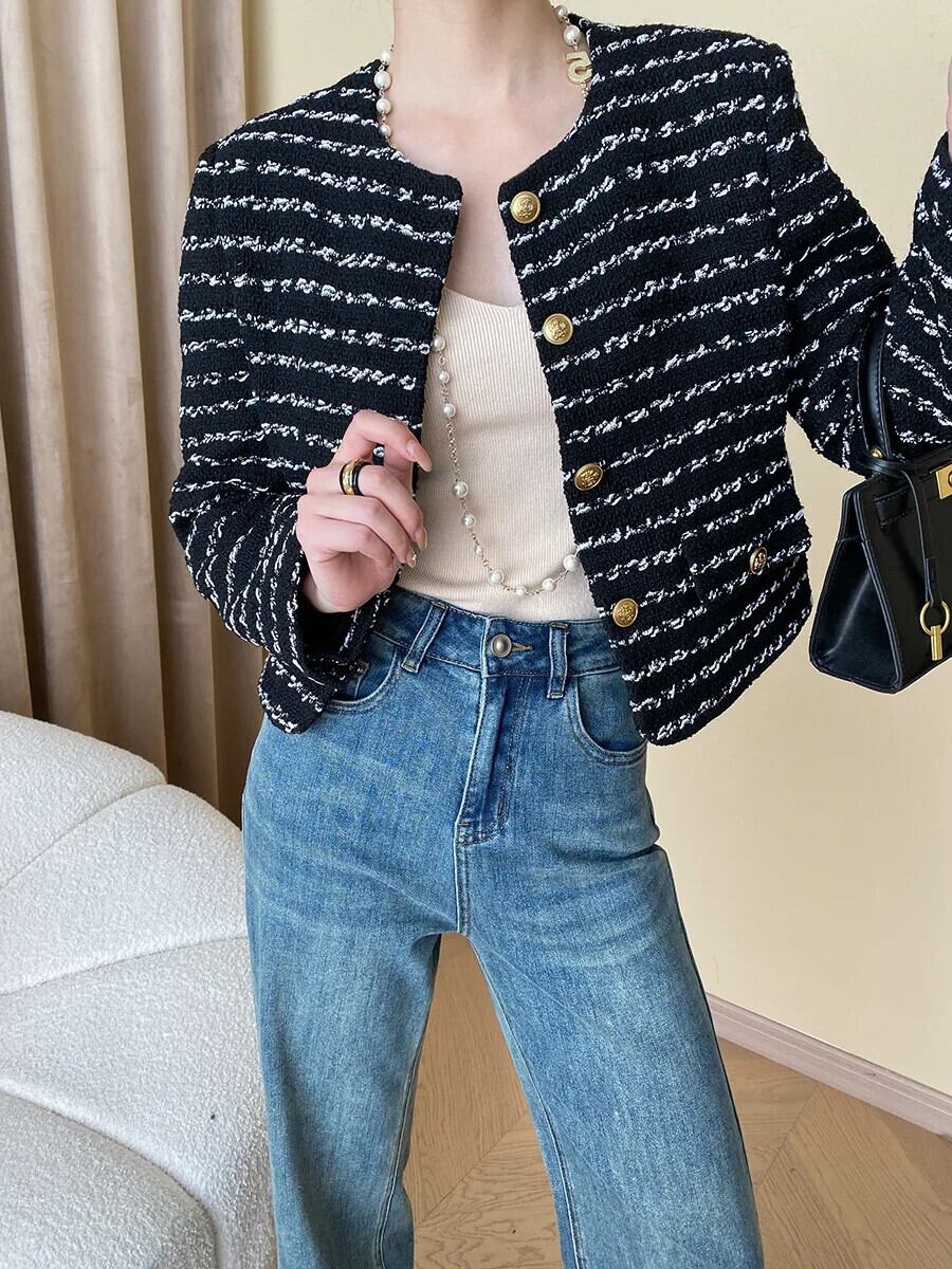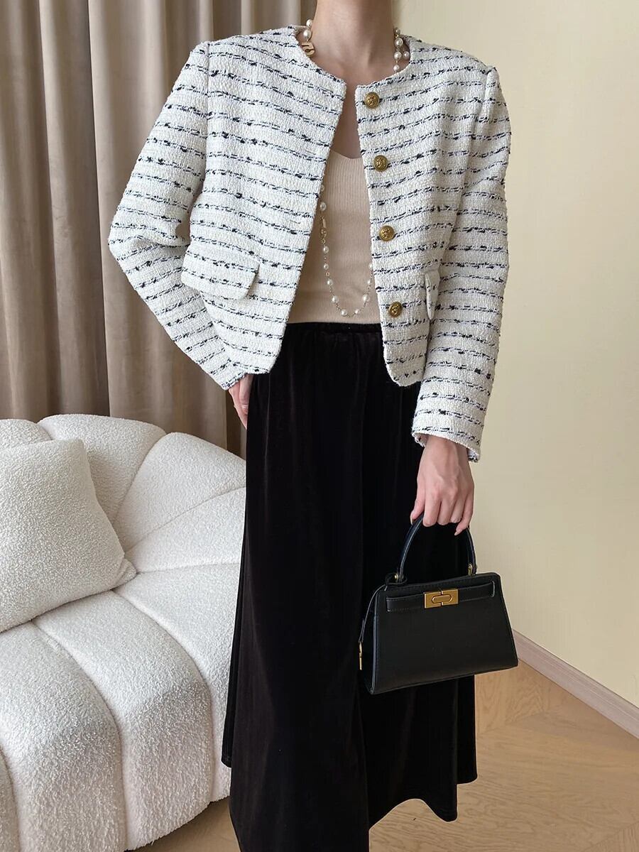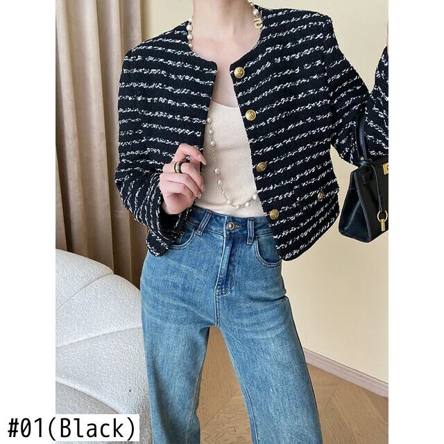 レディース ストライプ 秋 ツイード フレグランス ジャケット コート アウター Chaquetas Jaqueta Casaco オータム 秋物