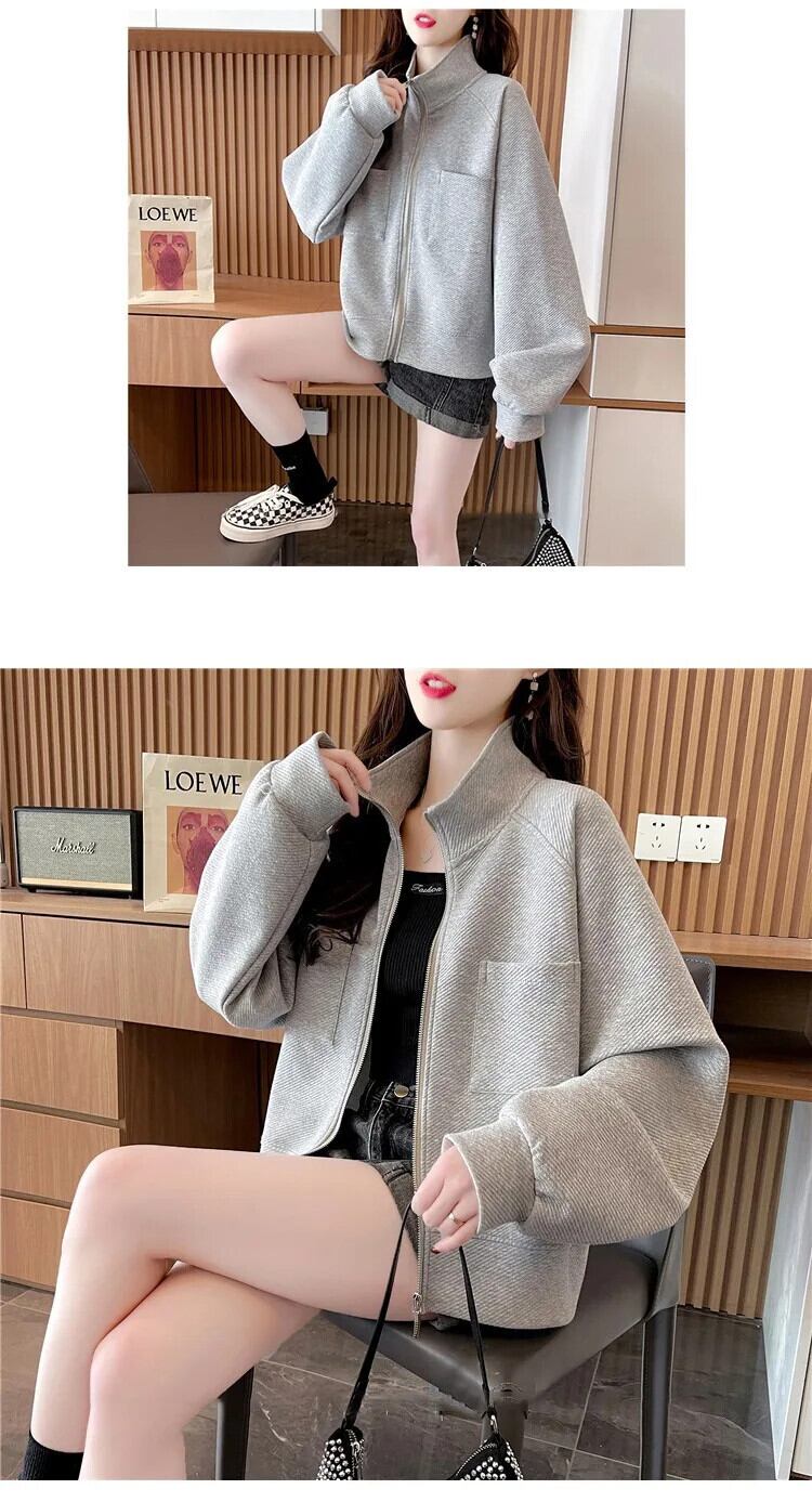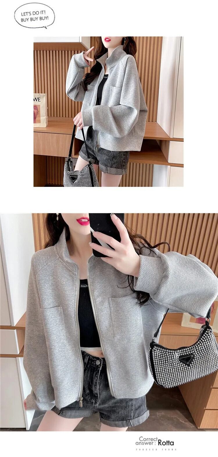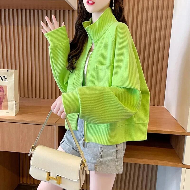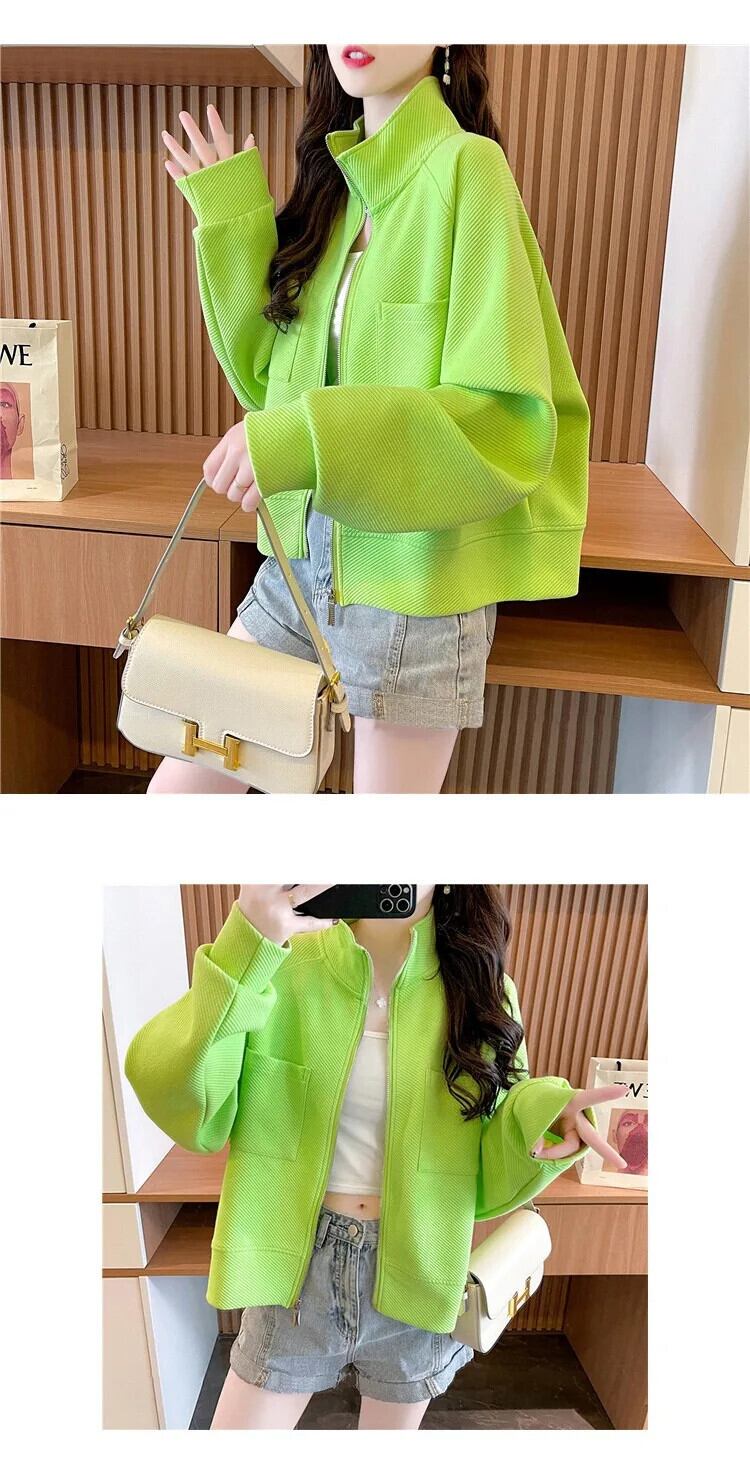 ジャケット気質立ち襟春秋薄手コート多用途ルース蛍光グリーンカーディガントップ スプリング 春物 オータム 秋物