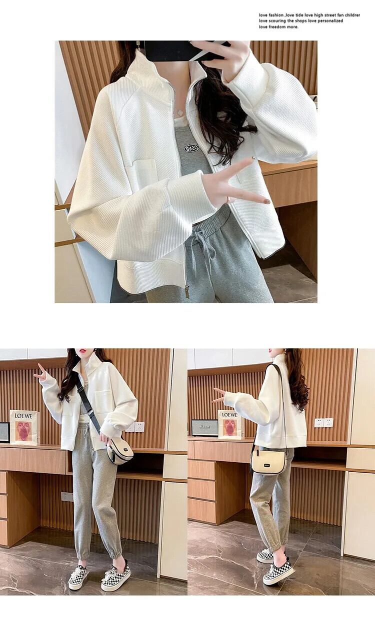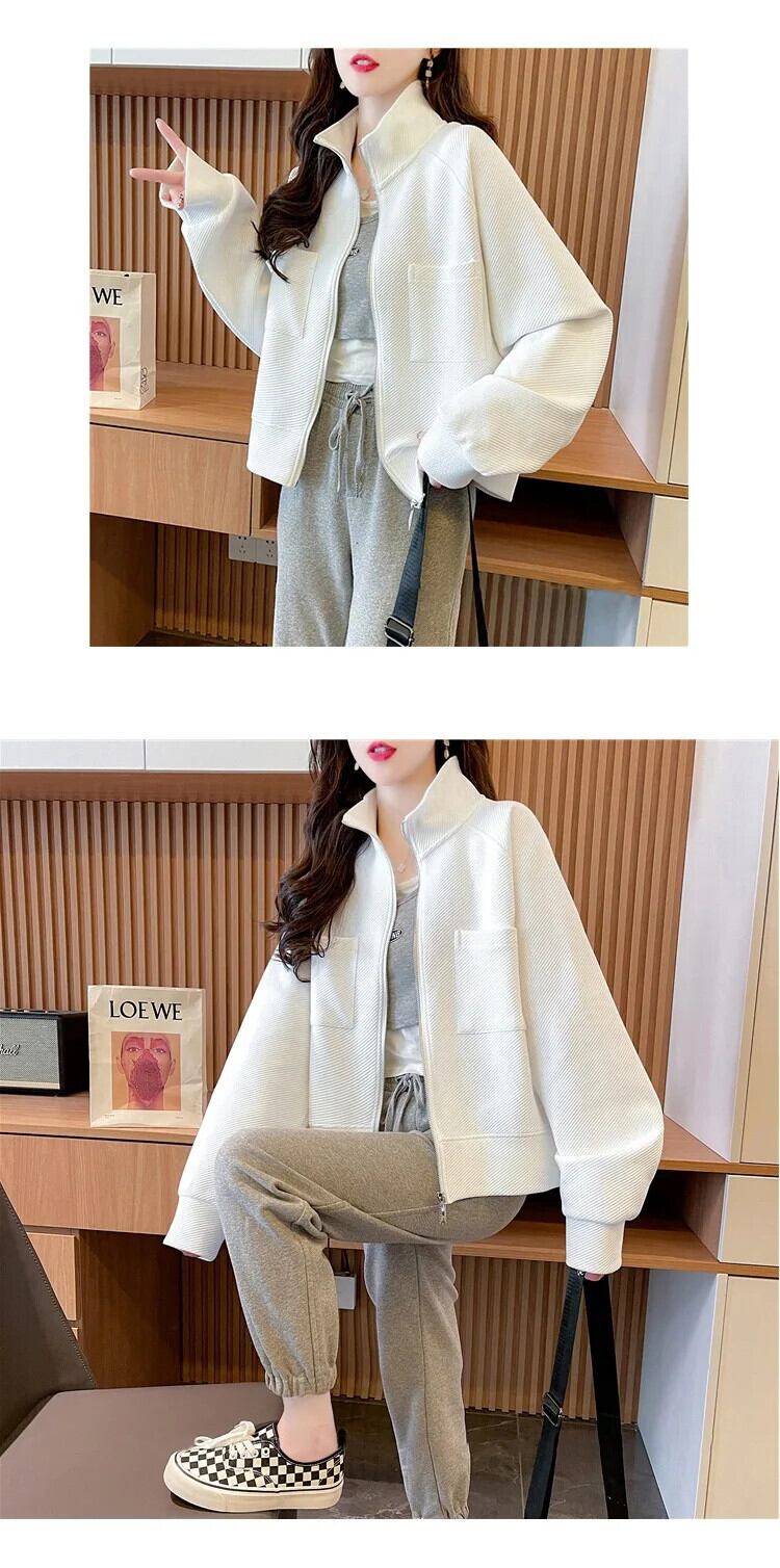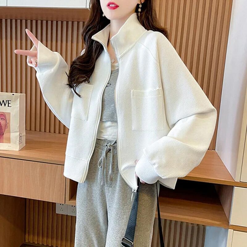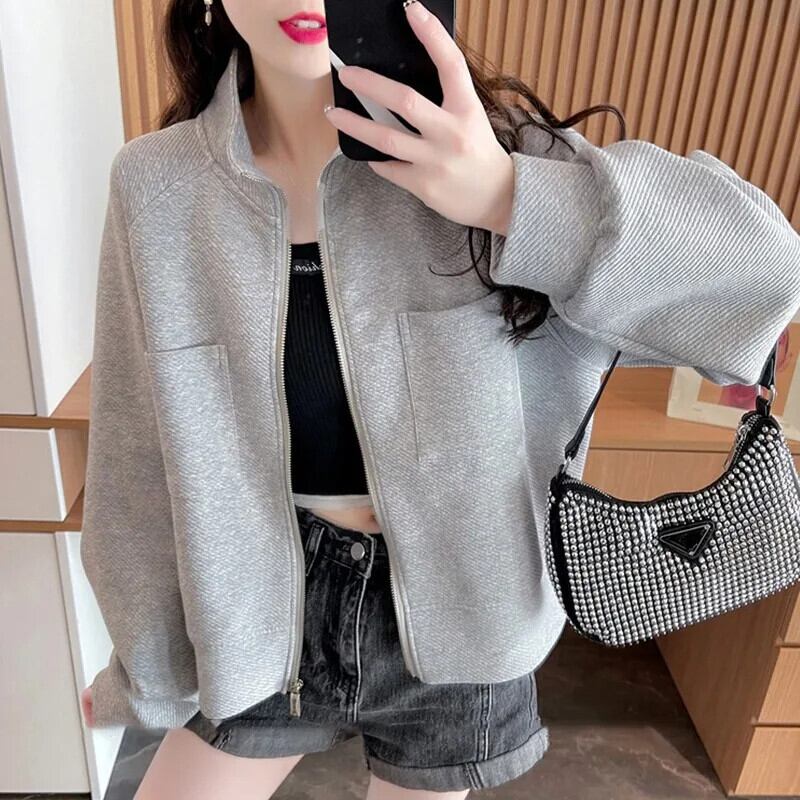 ジャケット気質立ち襟春秋薄手コート多用途ルース蛍光グリーンカーディガントップ スプリング 春物 オータム 秋物