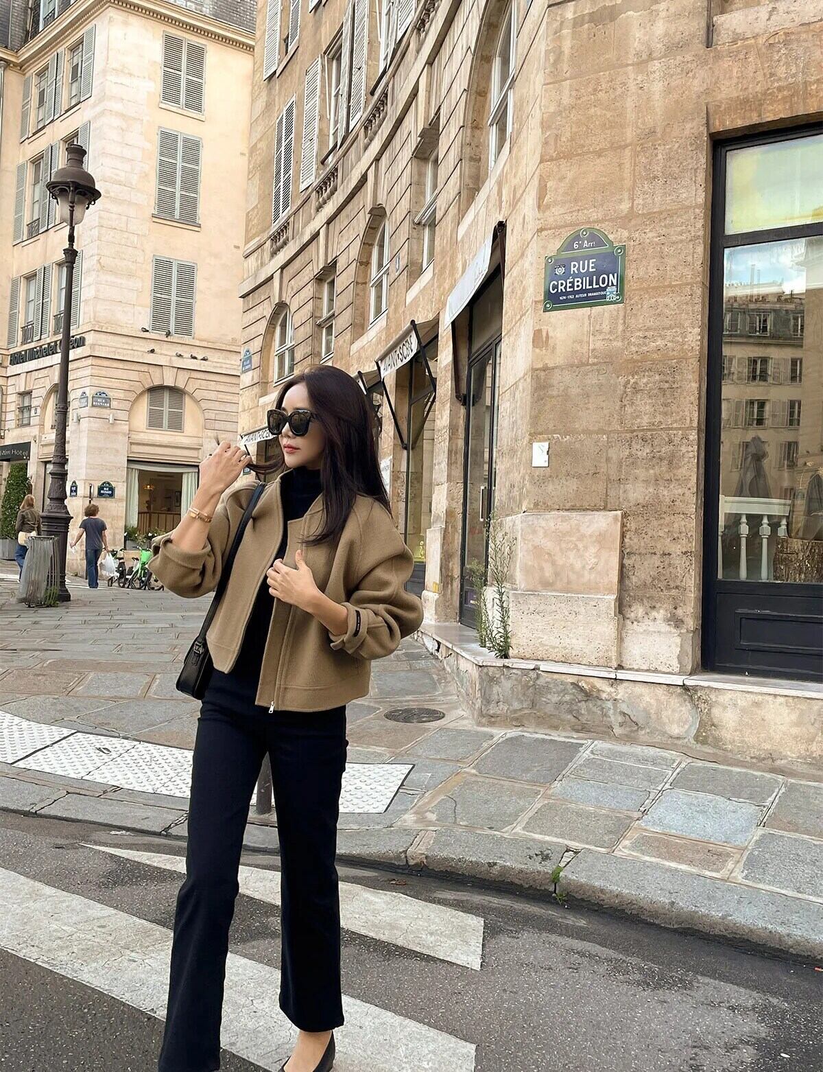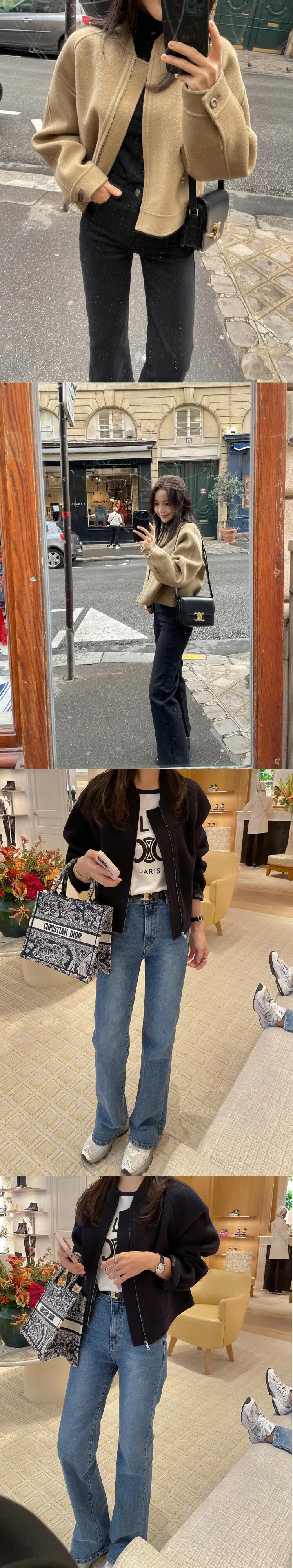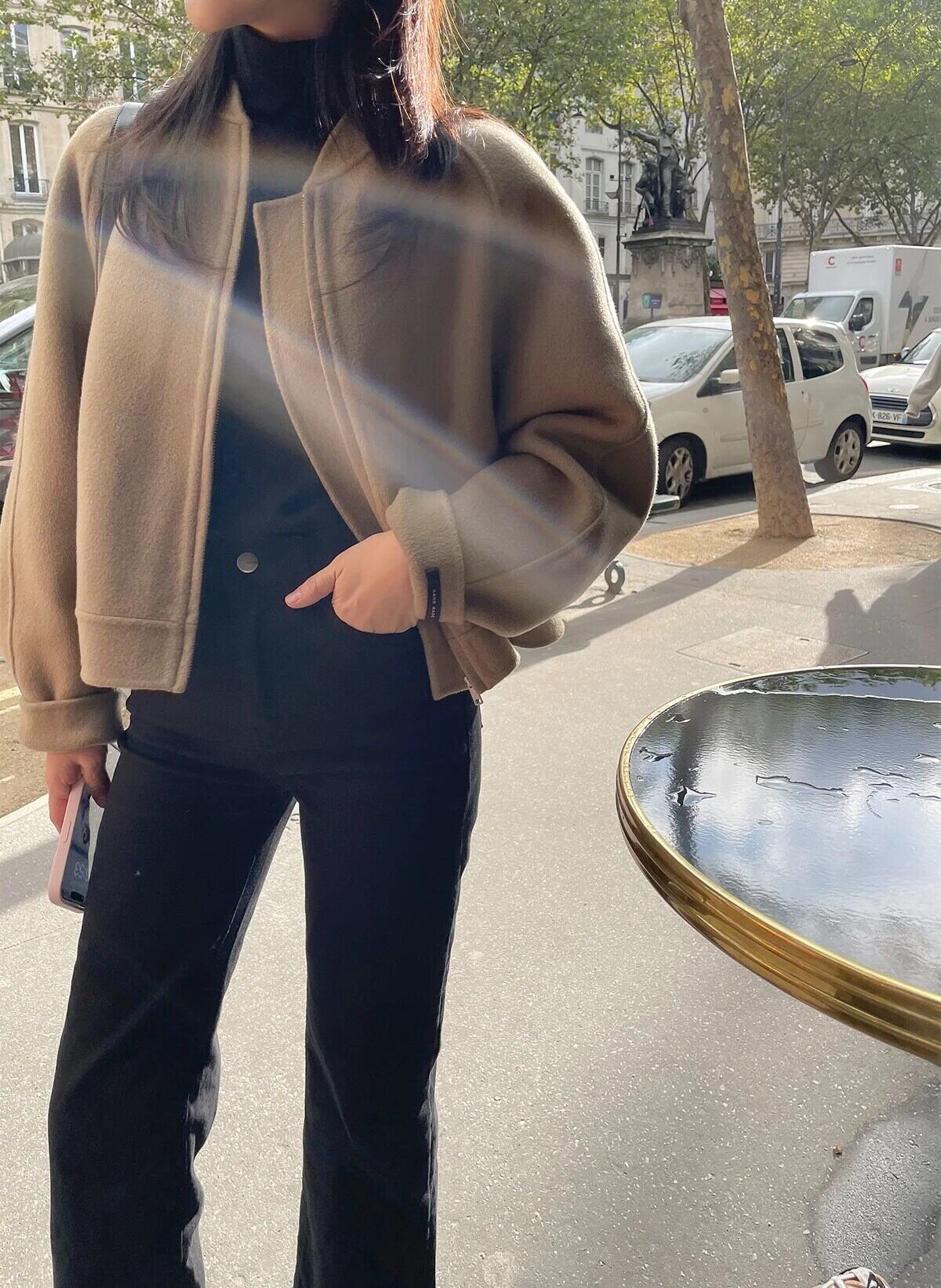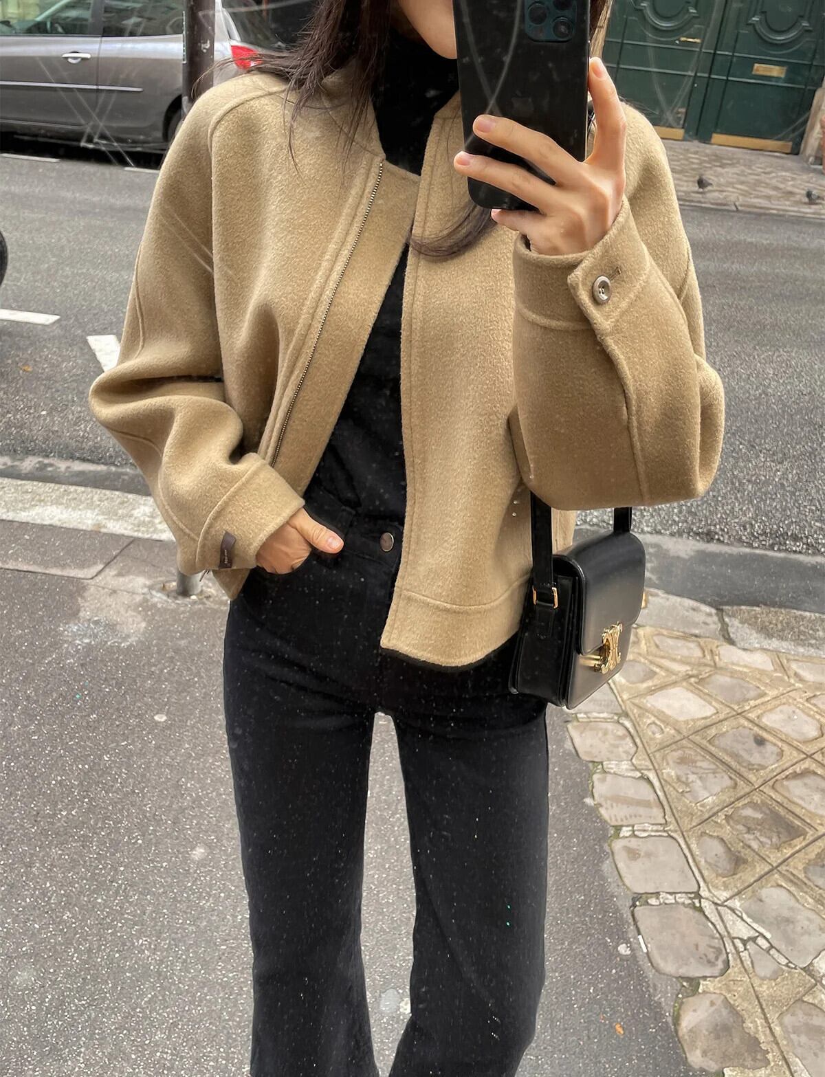 カーキブラック秋冬ウールジャケット気質ジッパーウールショートコート オータム 秋物 ウィンター 冬物