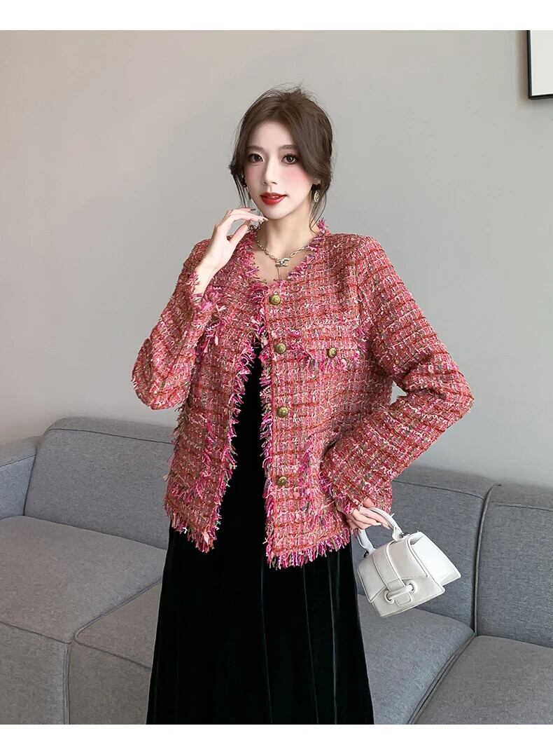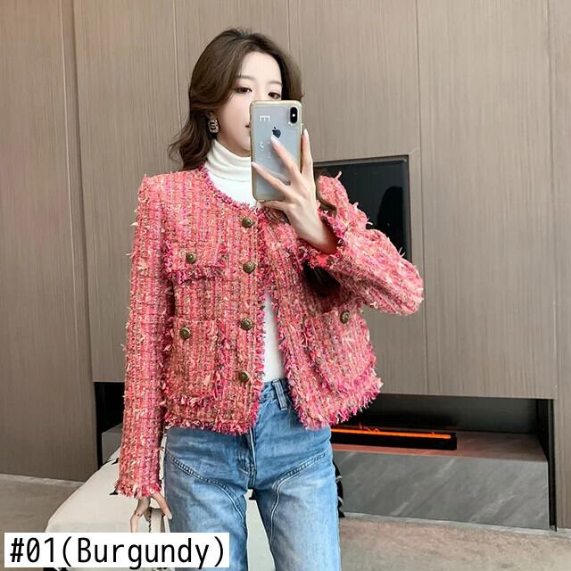 フレグランス コート レディース 秋冬 長袖 ツイード テルス ジャケット ロング オータム 秋物 ウィンター 冬物
