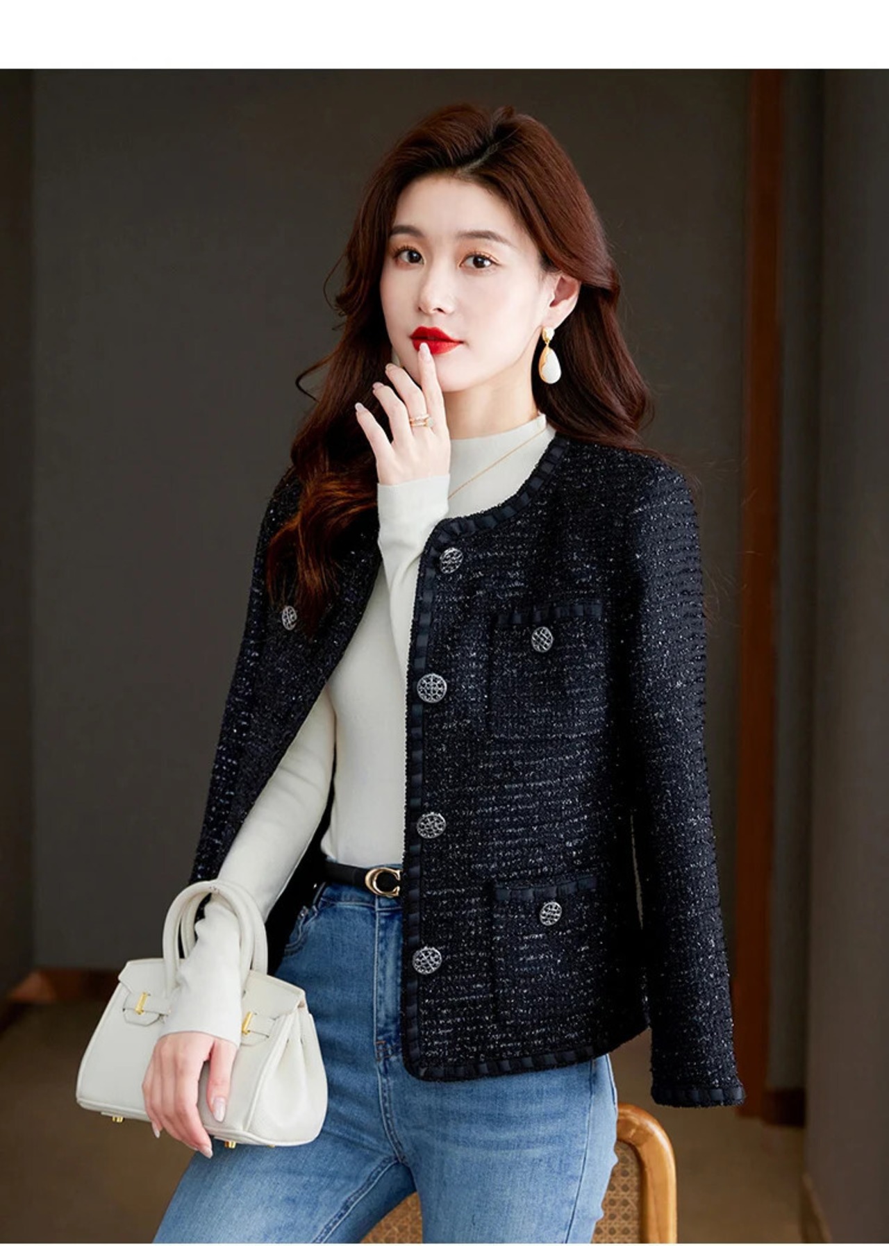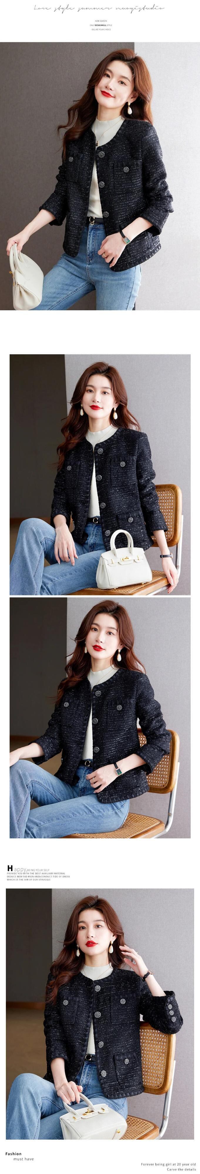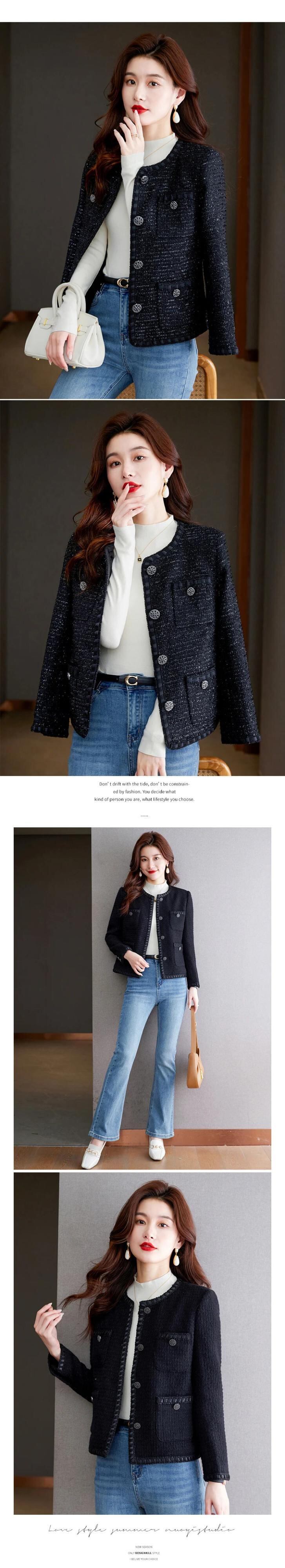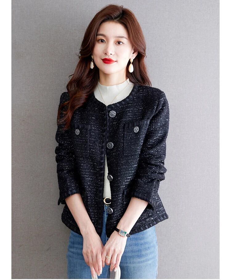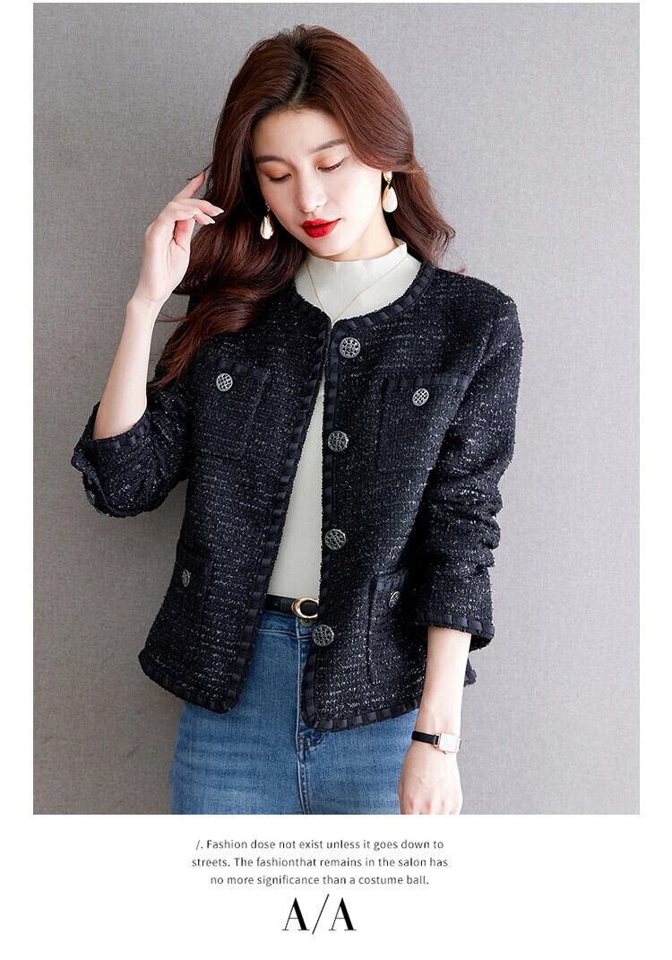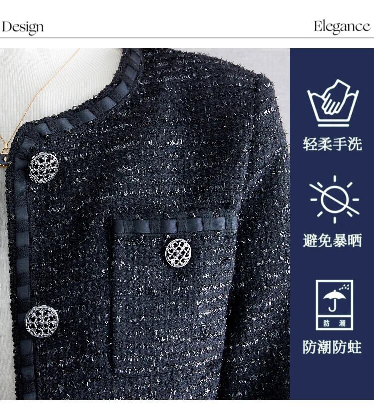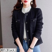 秋冬レディースフレンチツイードフレグランスコートブラックアウタージャケット オータム 秋物 ウィンター 冬物
