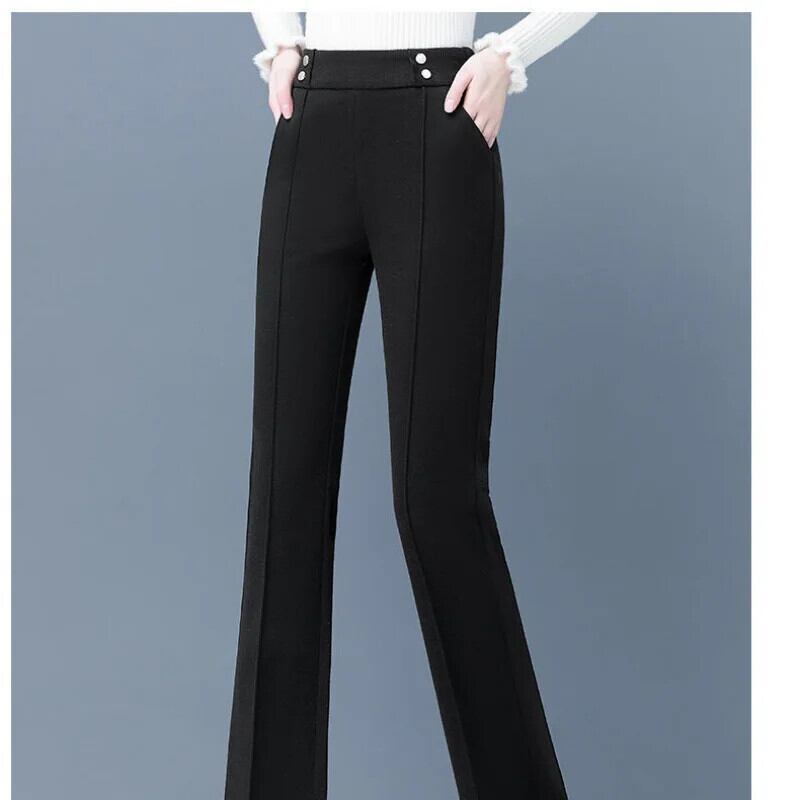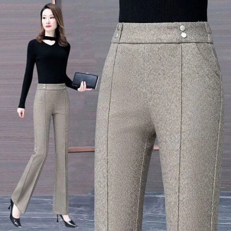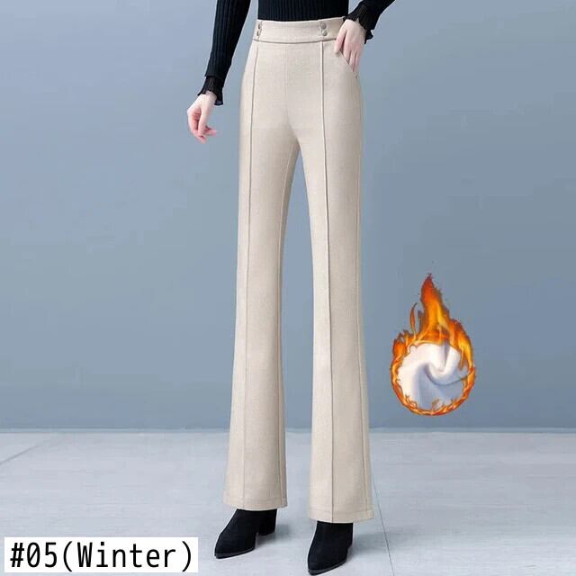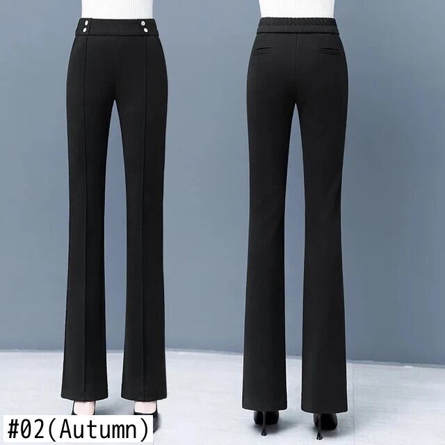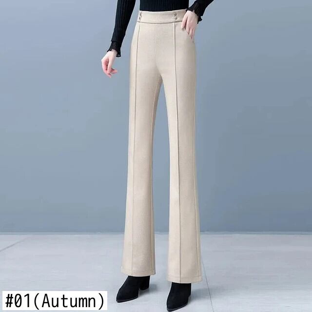 ベルベット厚手ウールフレアパンツ秋冬ウエストドレープルーズパンツ レッド オータム 秋物