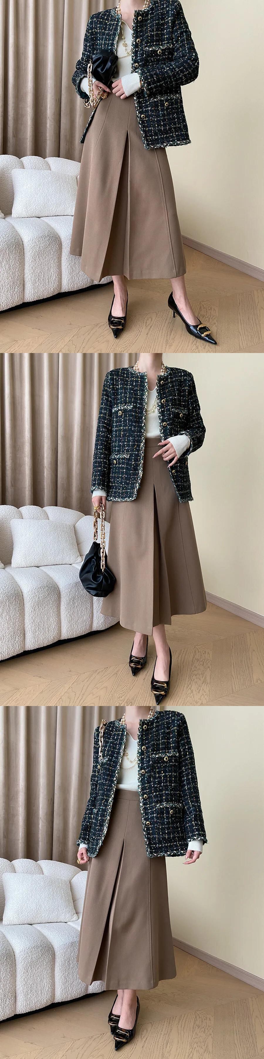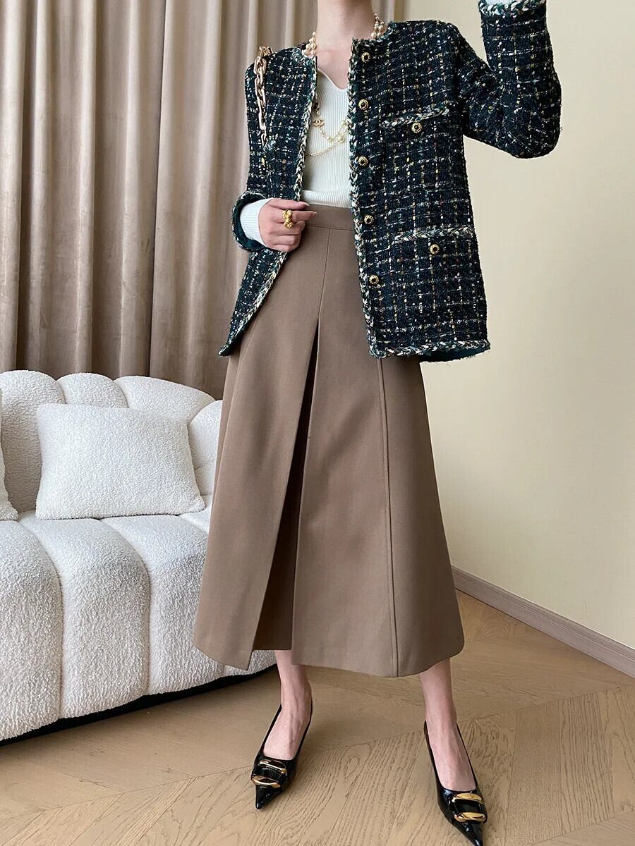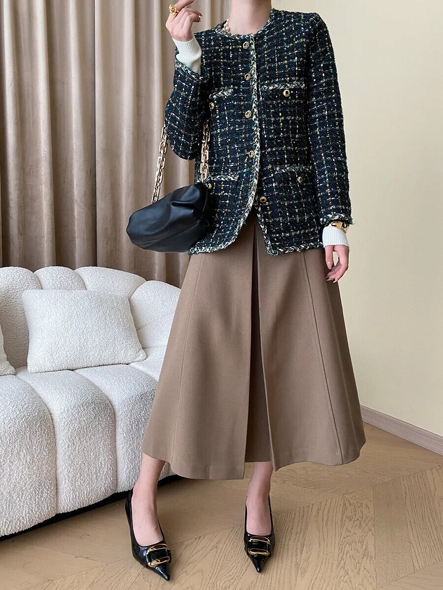 秋/冬ミッドレングスルーズフィットグリーンツイードフレグランスコートウールジャケットアウターチャケータ オータム 秋物 ウィンター 冬物