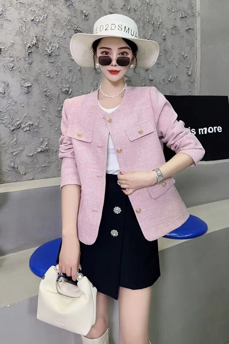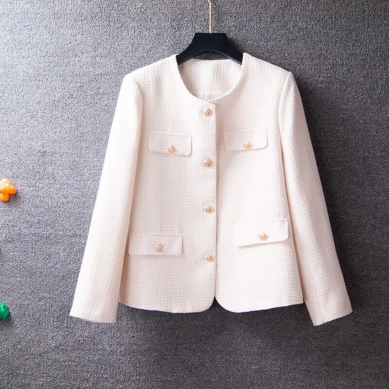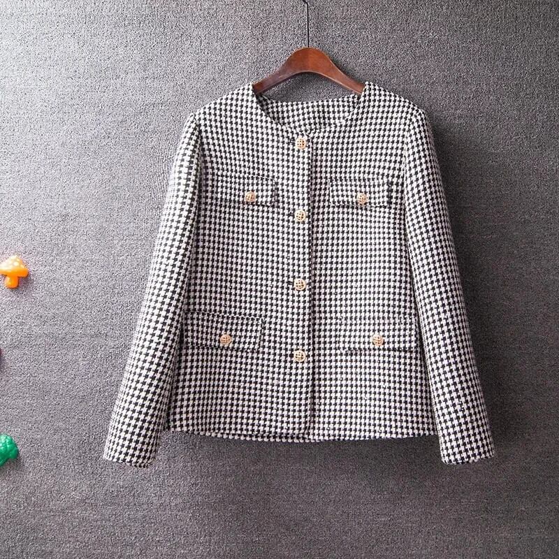 春秋柄ショートラウンドネックジャケットコート Casaco Feminino Chaquetas Para es Jaqueta Abrigo スプリング 春物 オータム 秋物 Oネック