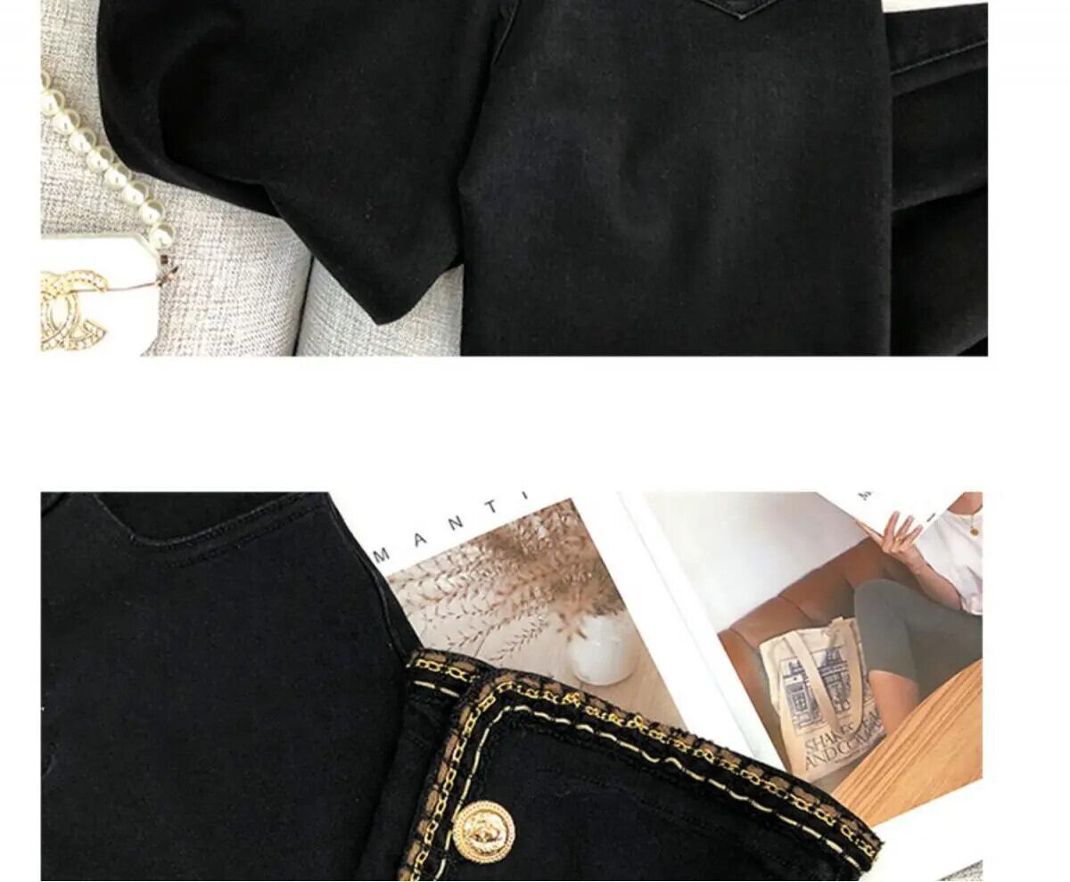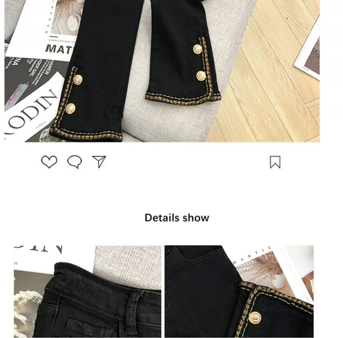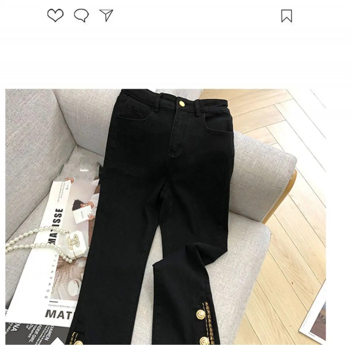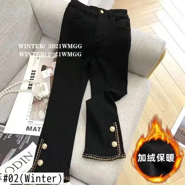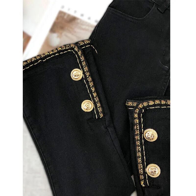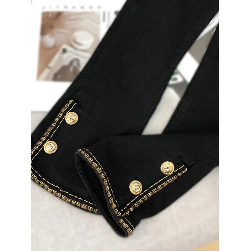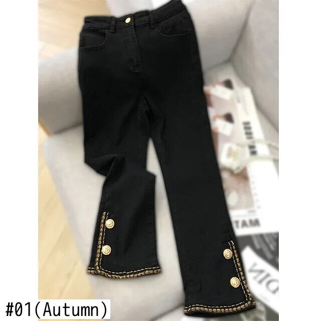 レディース トレンド - ウエスト 9 スプリット マイクロ フレア ホーン ブラック ジーンズ パンツ
