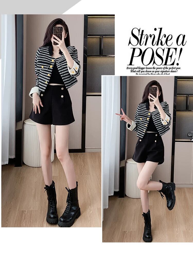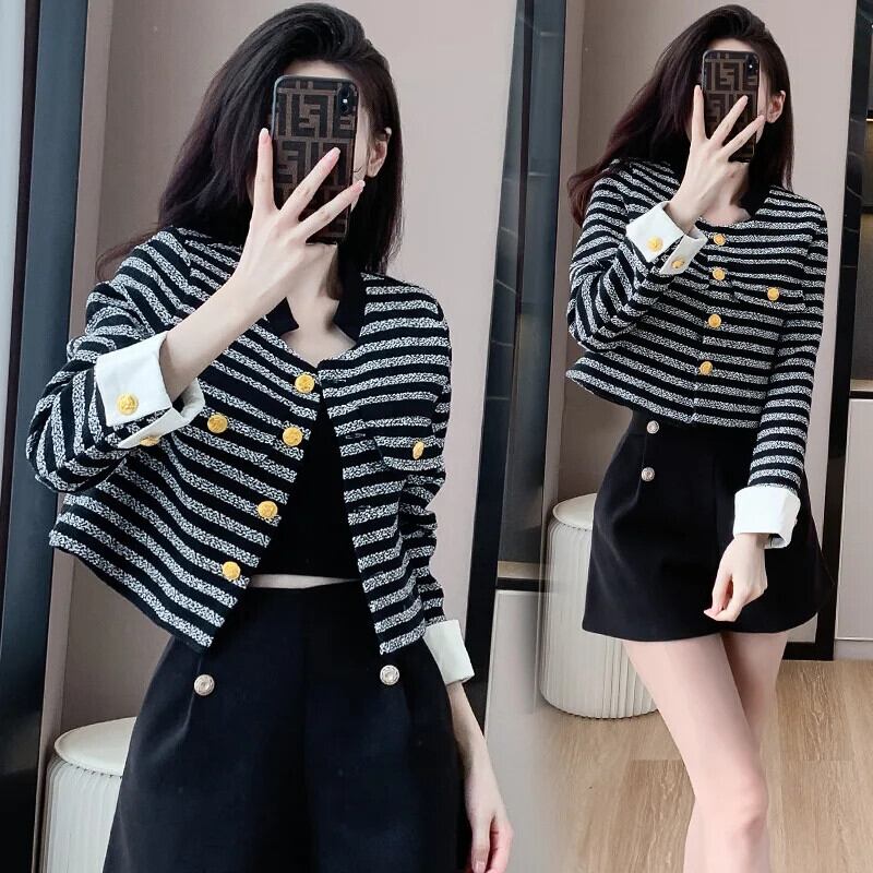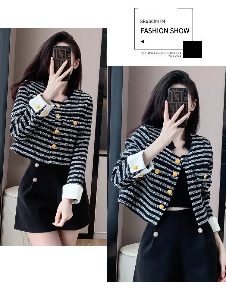 秋ツイード花柄パッチワークショートジャケットストライプスタンドカラーコート生き抜くチャケータ オータム 秋物