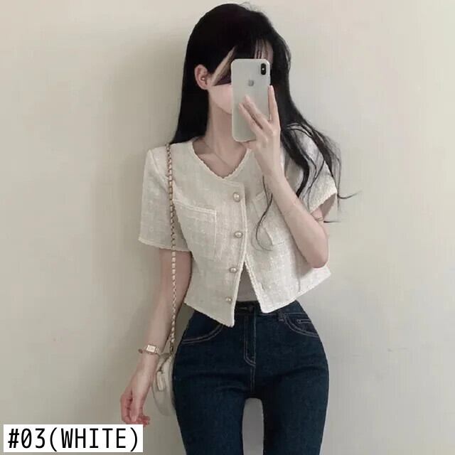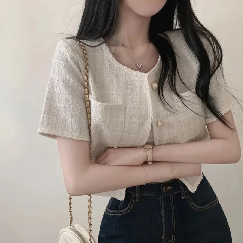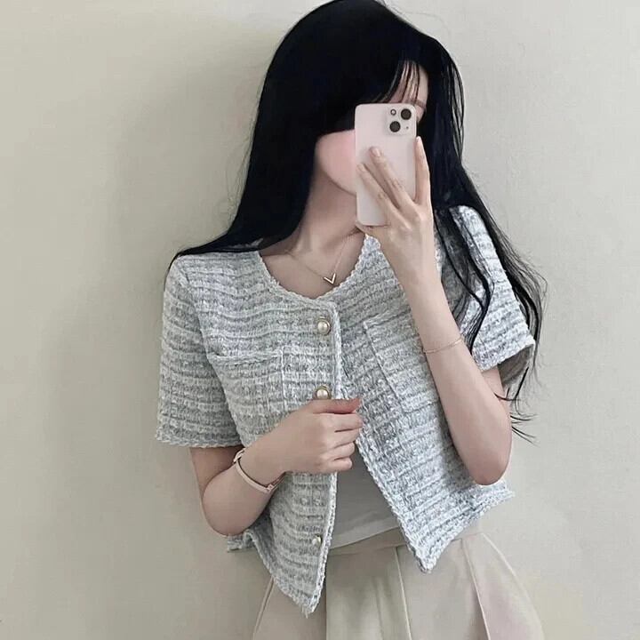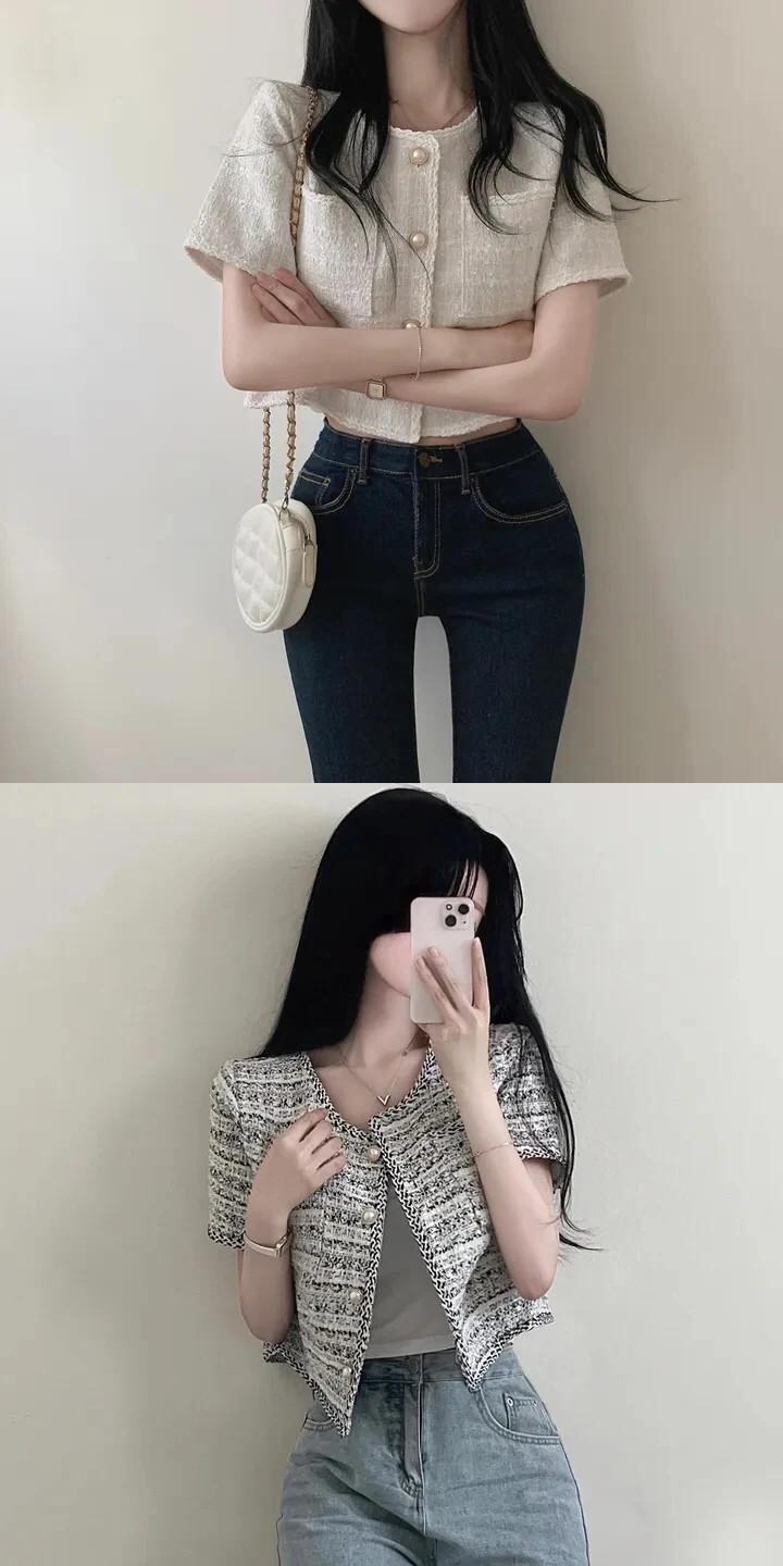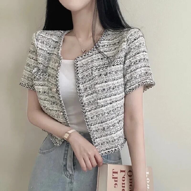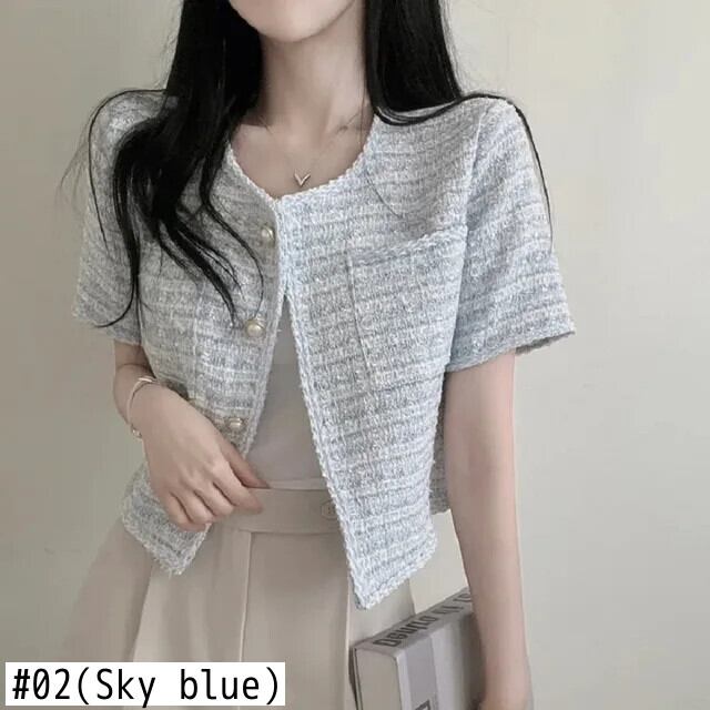 シック夏レトロ気質混合色エッジングラフスパンショートジャケットコート サマー 夏物