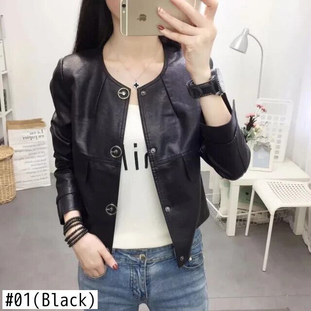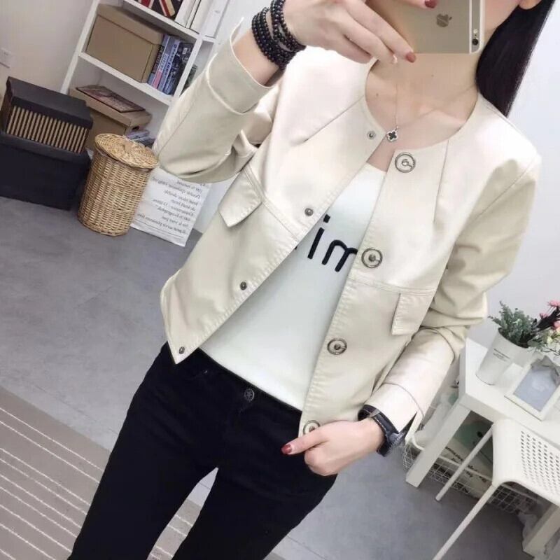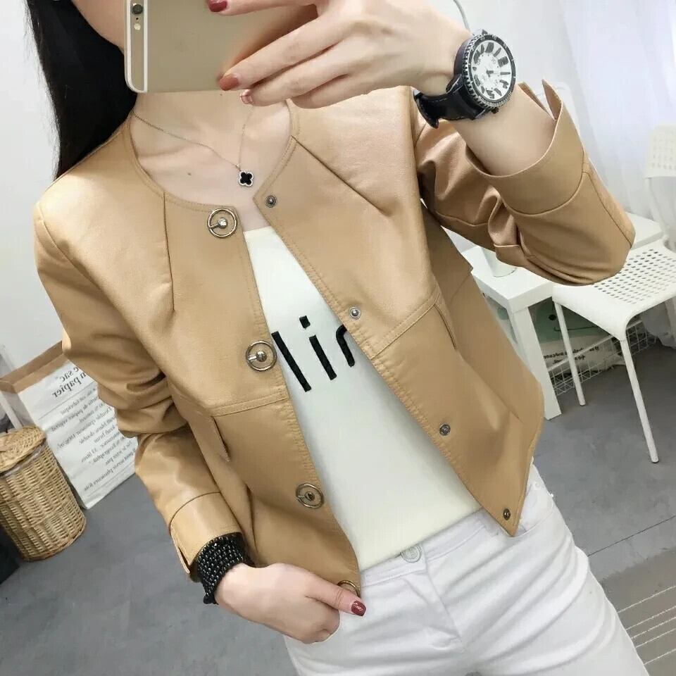 レディース薄型バイクPUレザージャケット春秋Oネックスリムフィットショートコート スプリング 春物 オータム 秋物