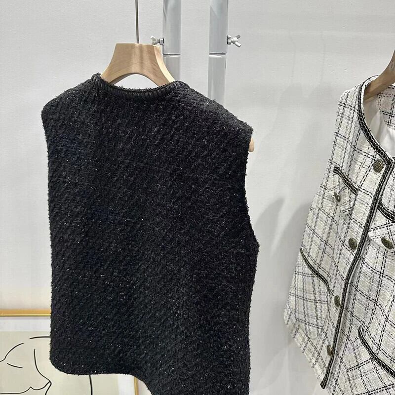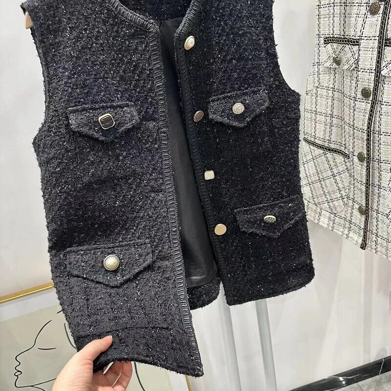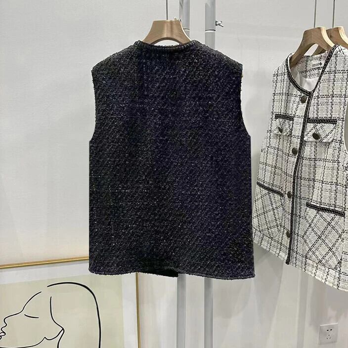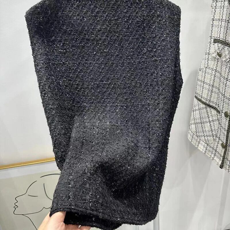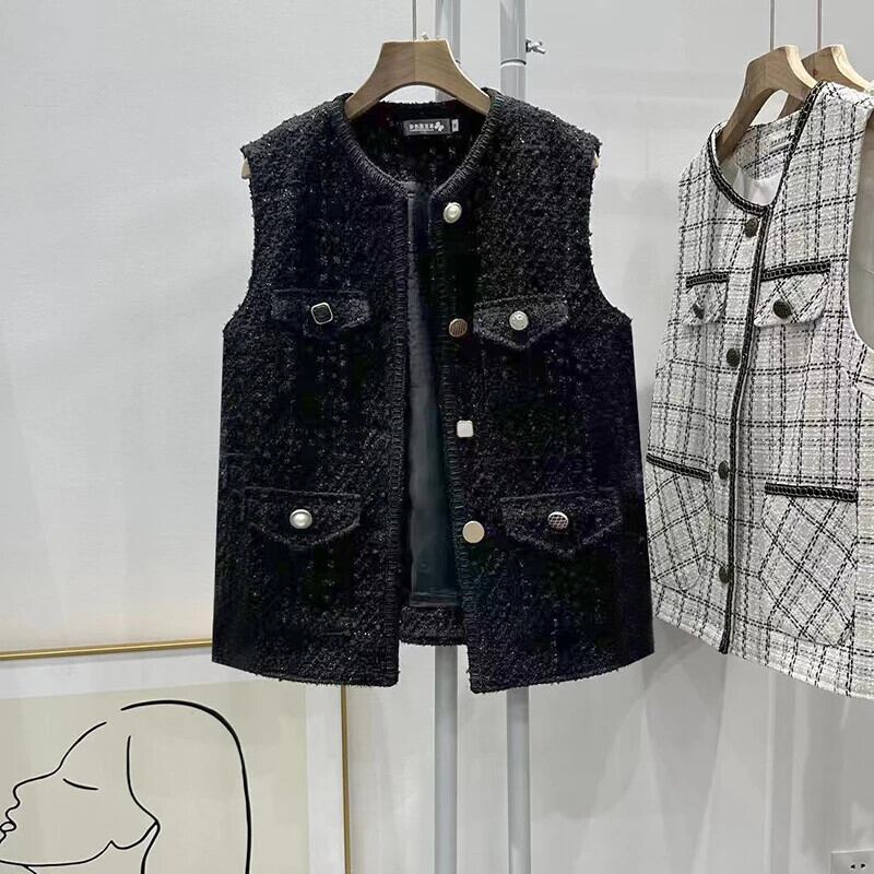 レディース L-4XL 秋冬ブラックツイード香りノースリーブベスト万能コート オータム 秋物 ウィンター 冬物