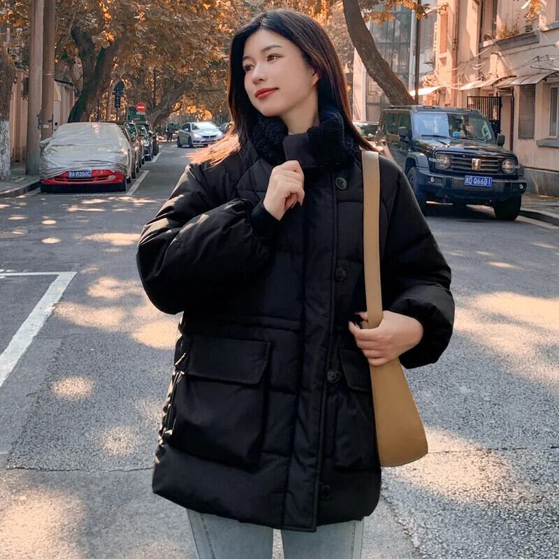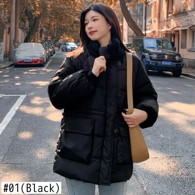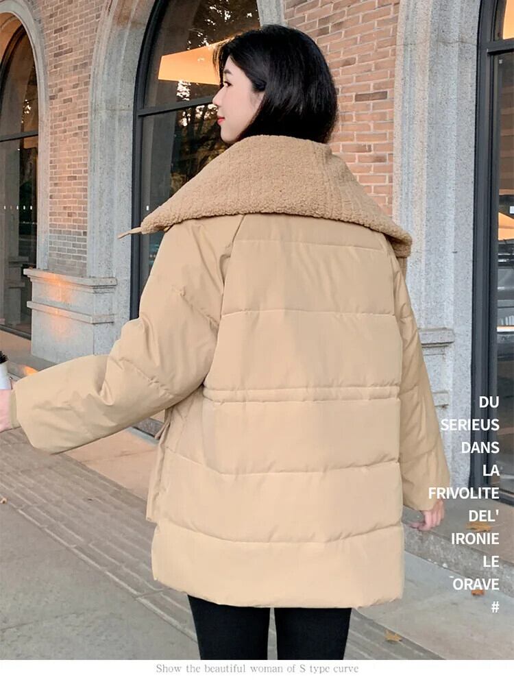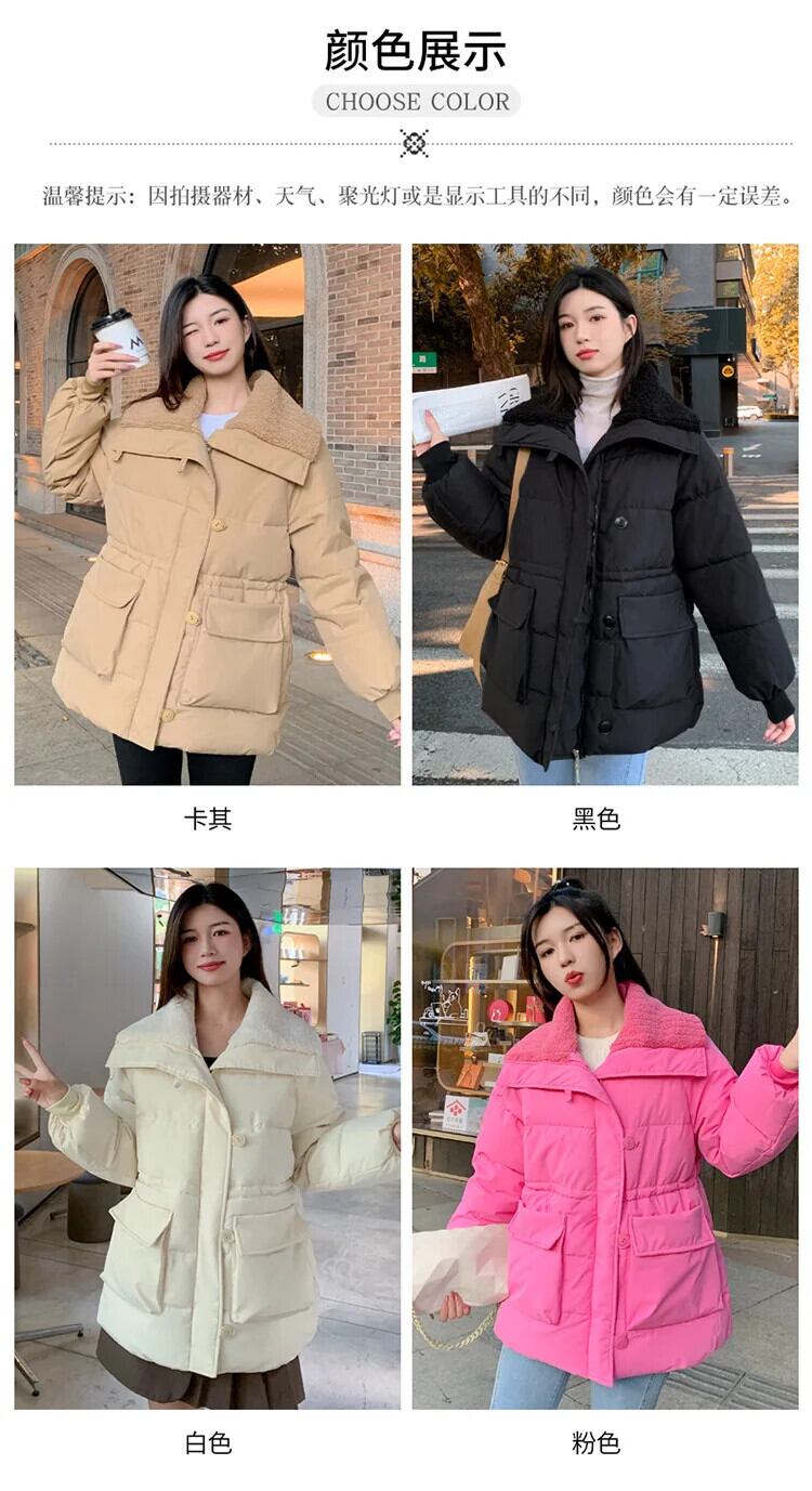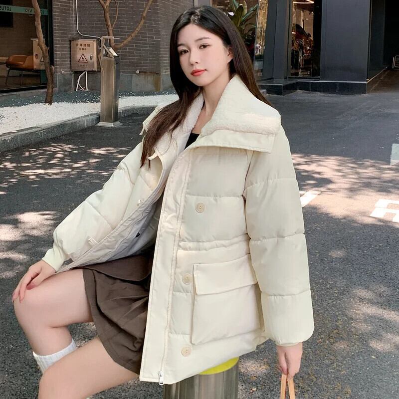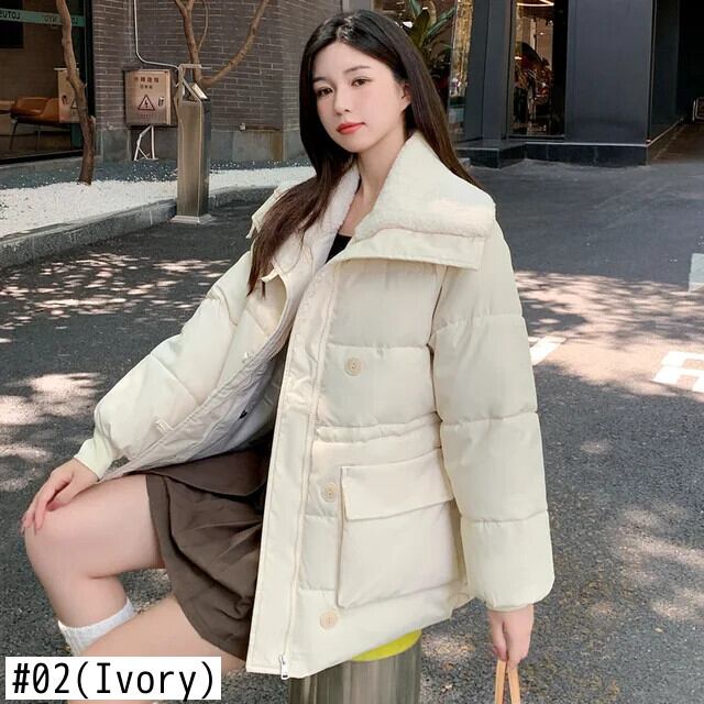 ラムダウンショートコットンジャケット冬ラペル甘く厚く暖かいパーカー 大人ガーリー スウィート キュート カジュアル ウィンター 冬物